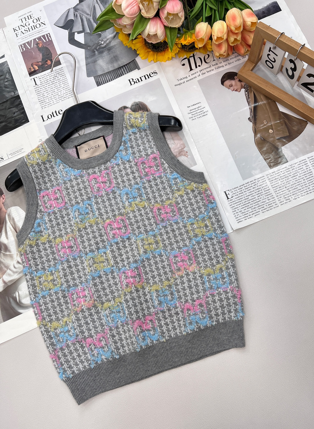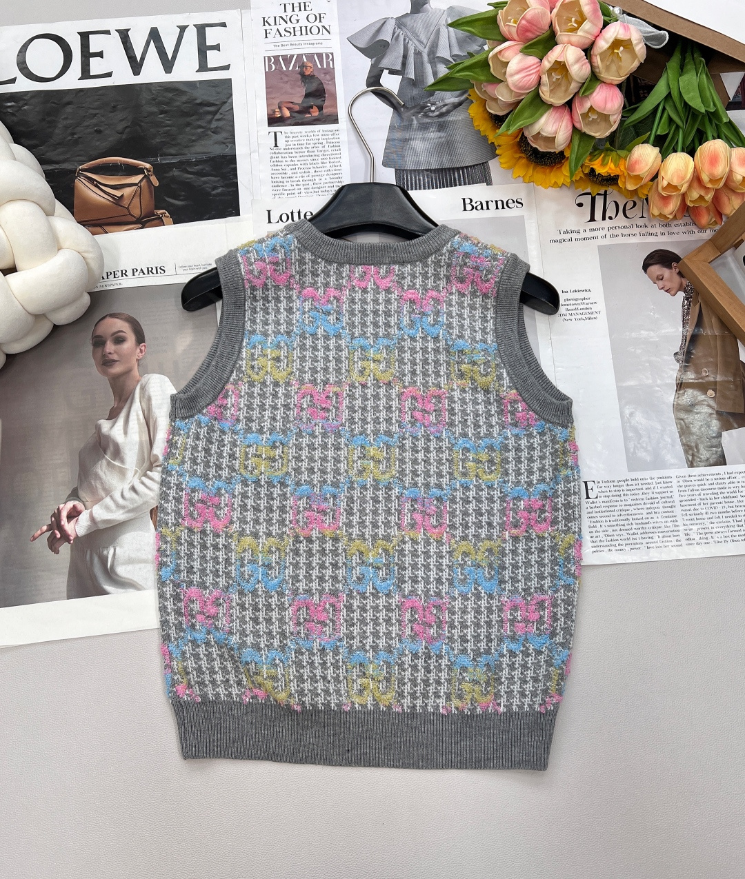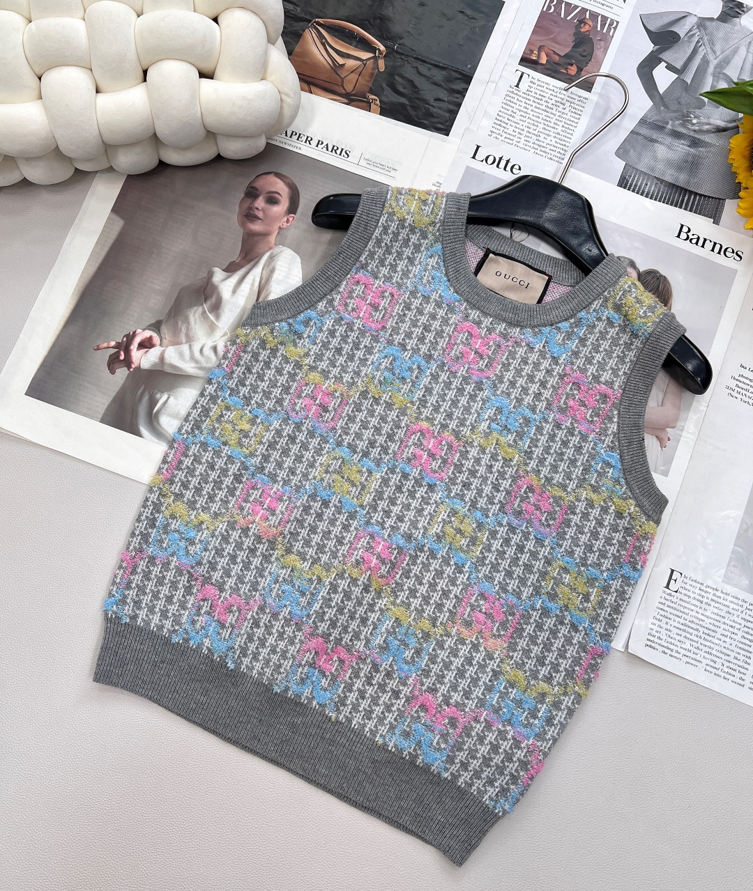 Details: New double - logo jacquard knit vest with vintage charm, soft and comfortable, suitable for sweet and cool style