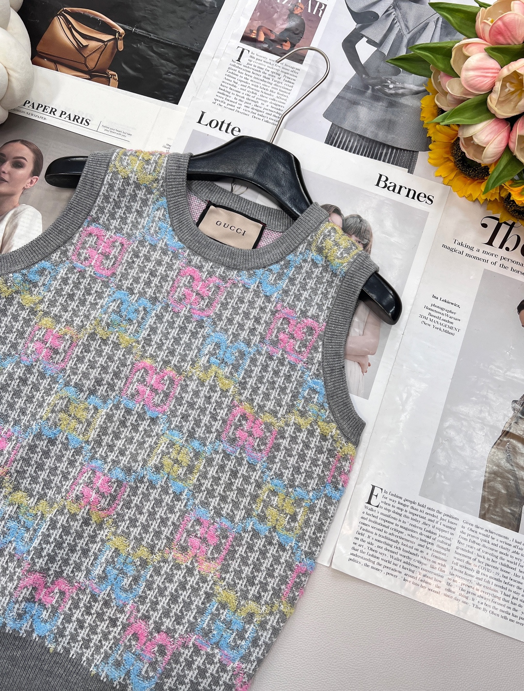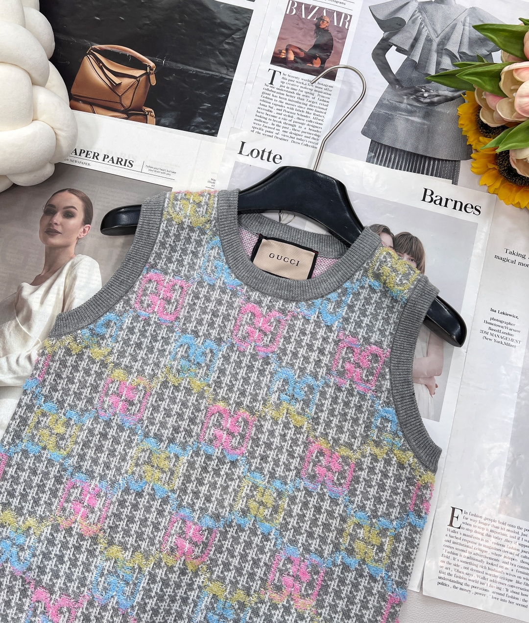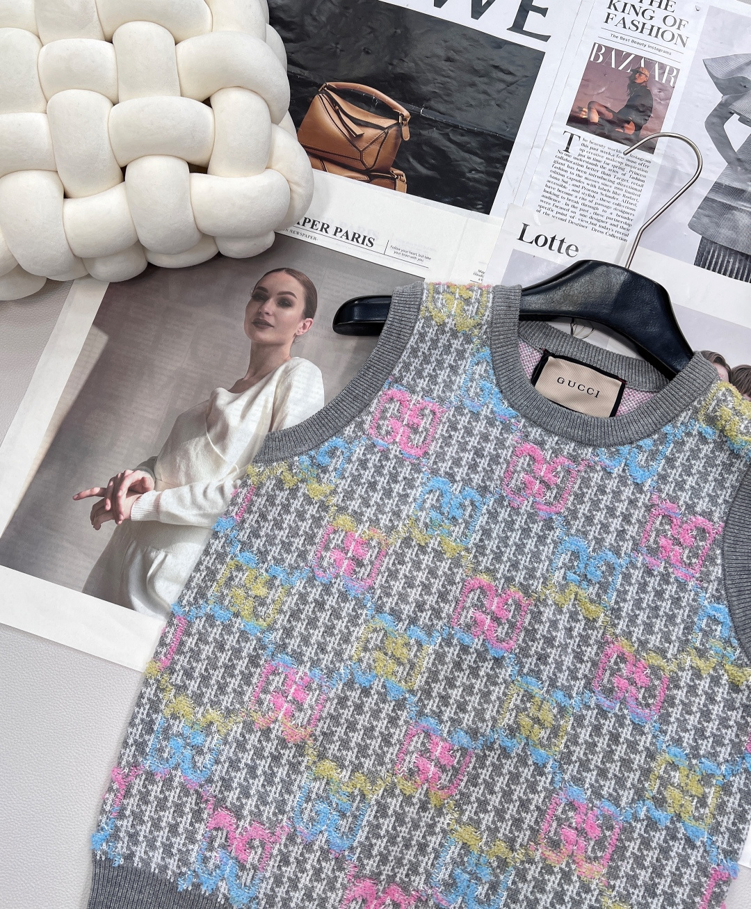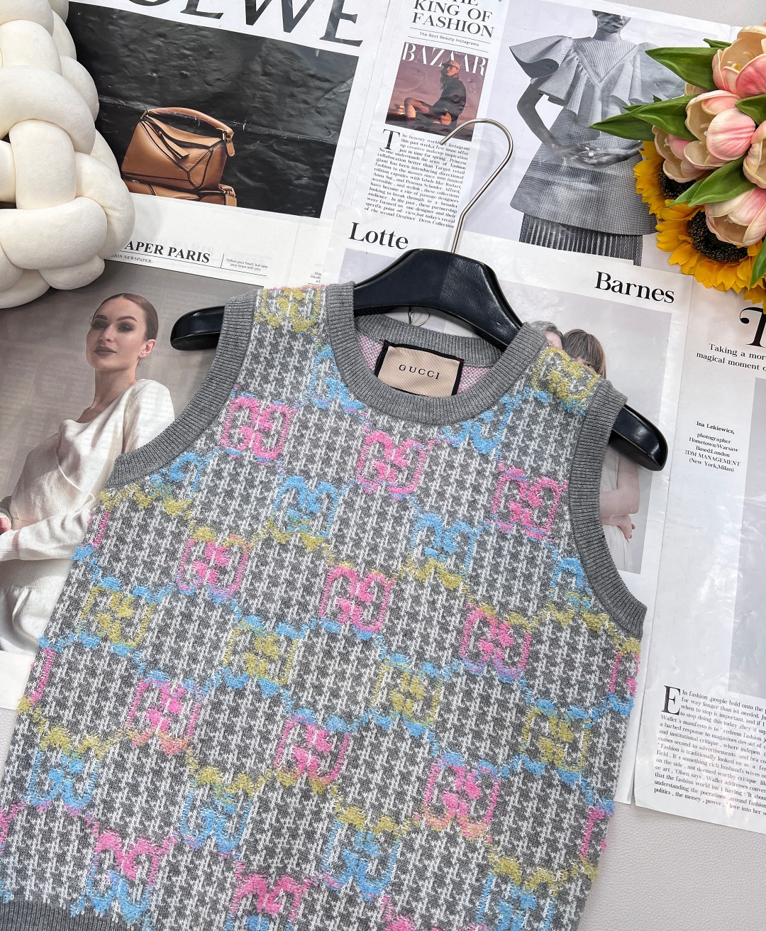 Details: New double - logo jacquard knit vest with vintage charm, soft and comfortable, suitable for sweet and cool style