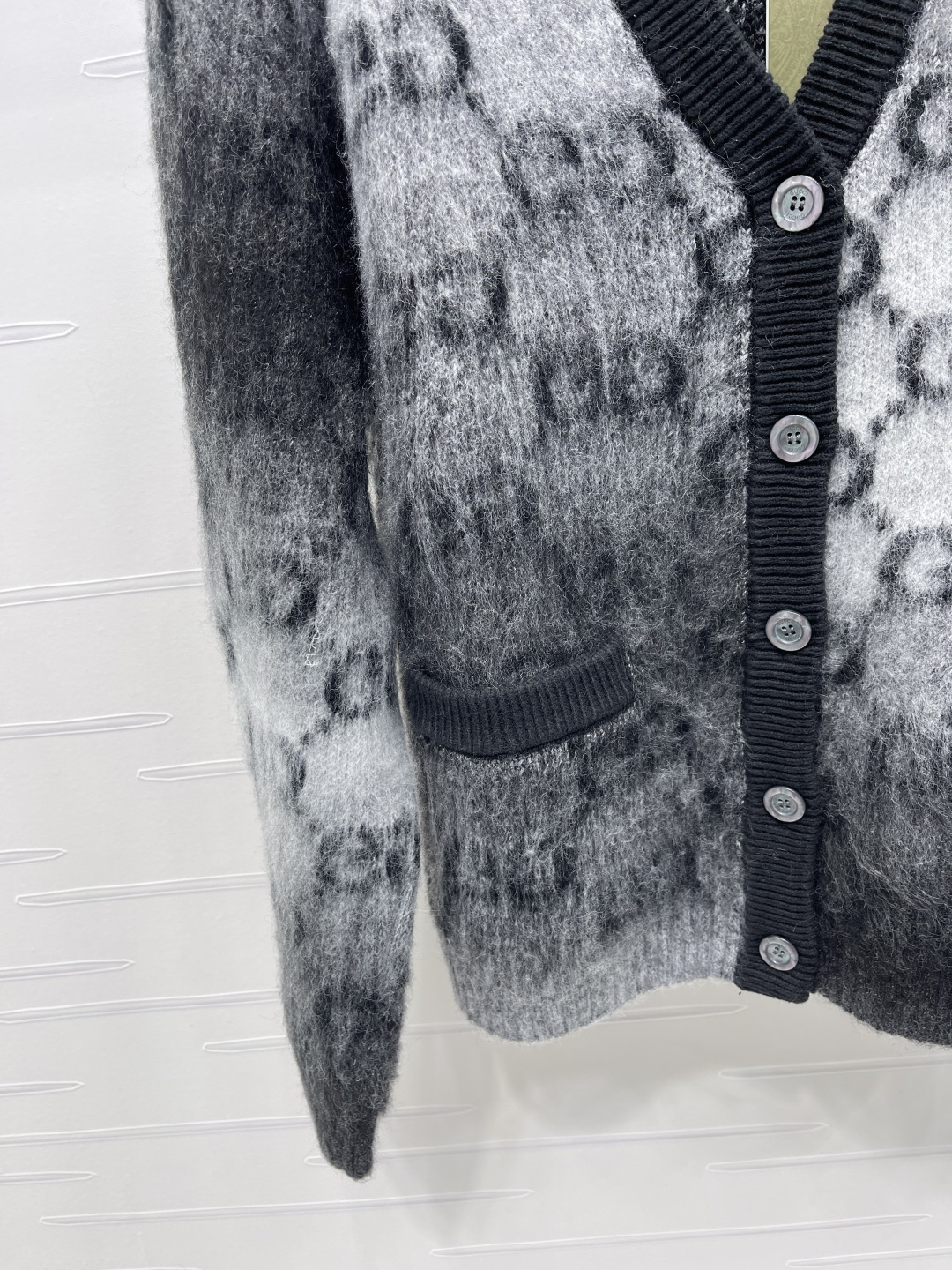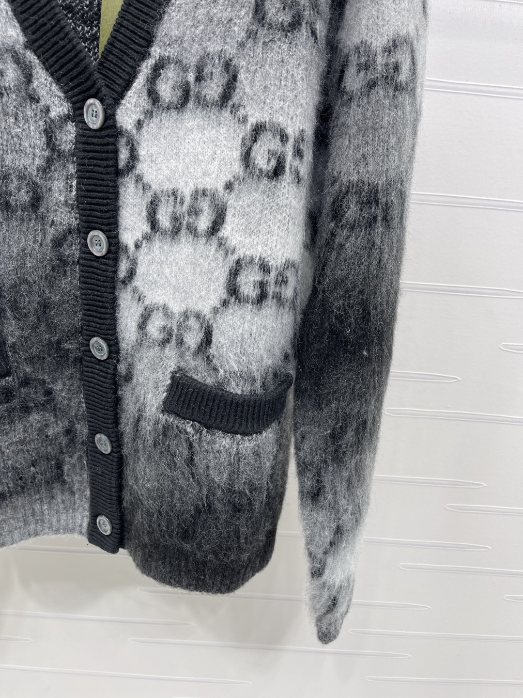 Details: Early Autumn New: Jacquard Contrast Mohair Cardigan, Imported High-Quality Mohair, Soft and Non-Irritating, Artistic Charm, Signature Double G Logo, V-Neck Design, Trendy and Timeless.