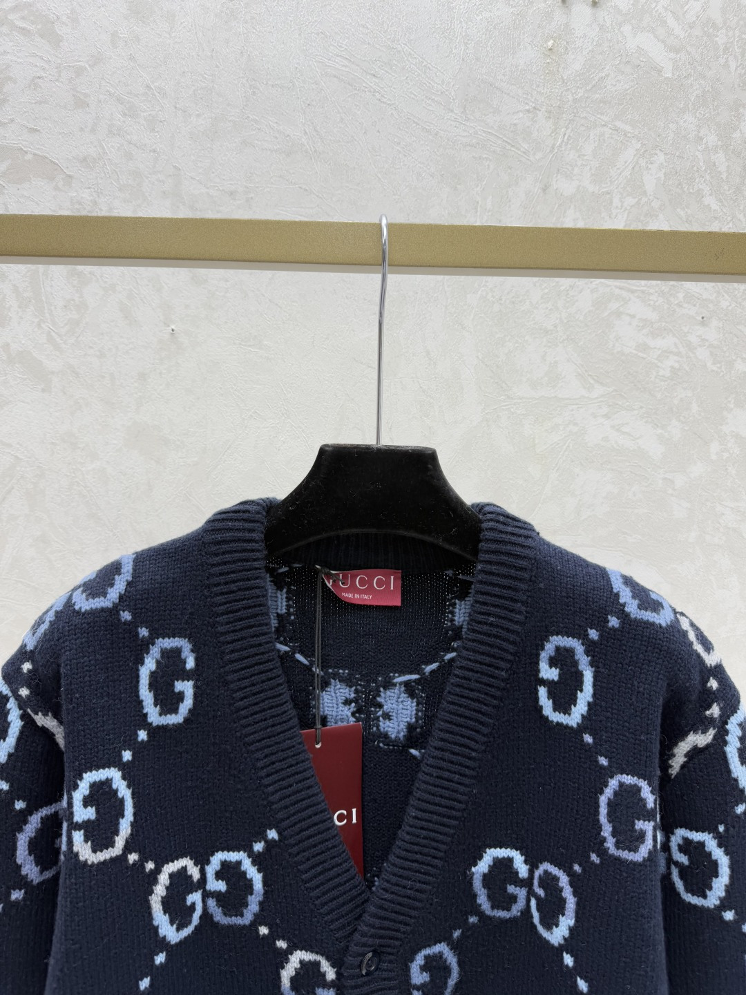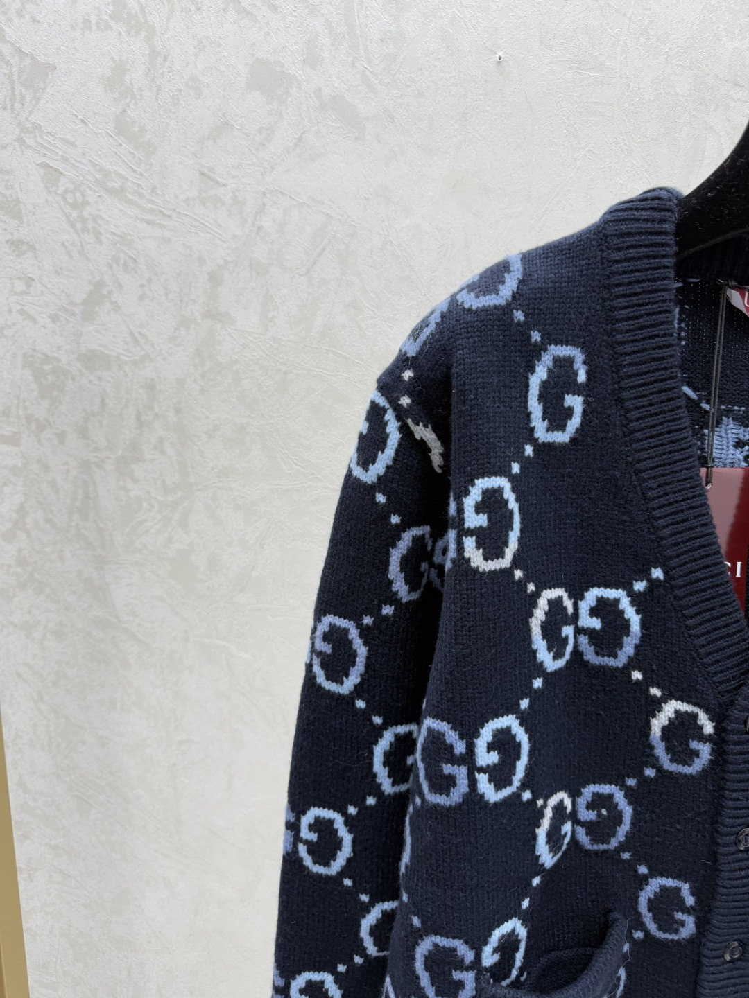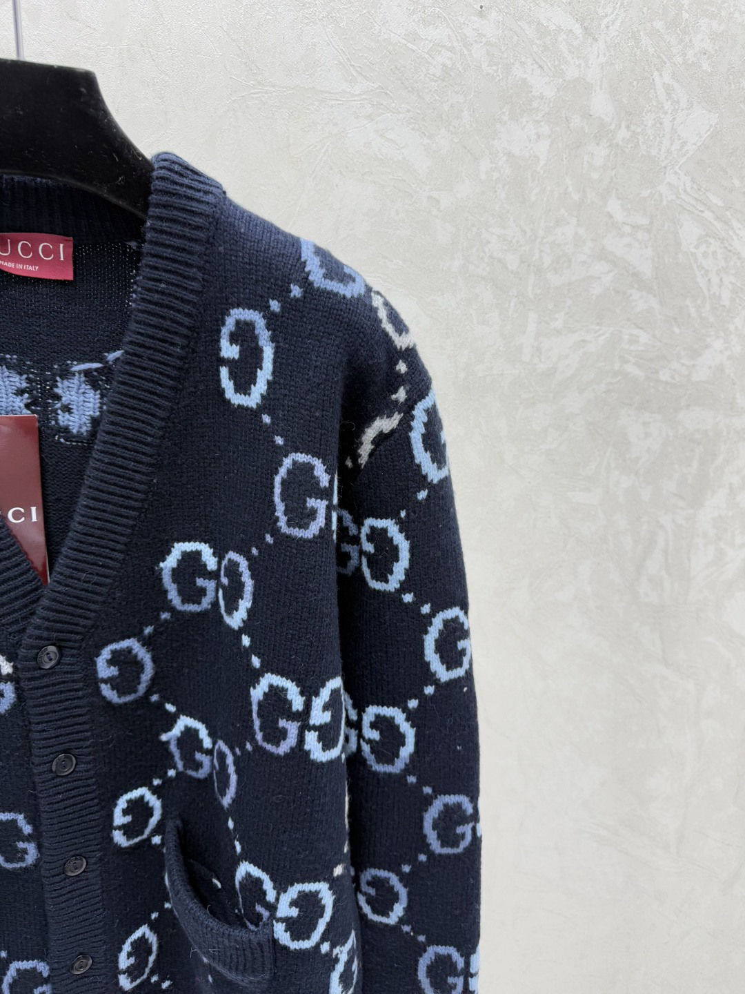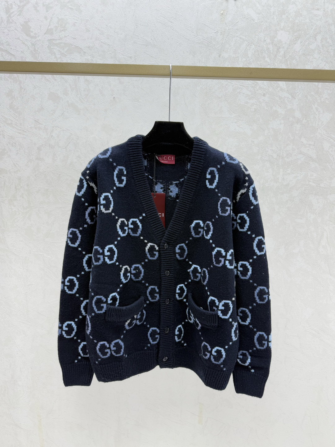 Details: Early autumn new, color-blocked letter V-neck knitted long-sleeve cardigan in royal blue, available in sizes 36, 38, 40.