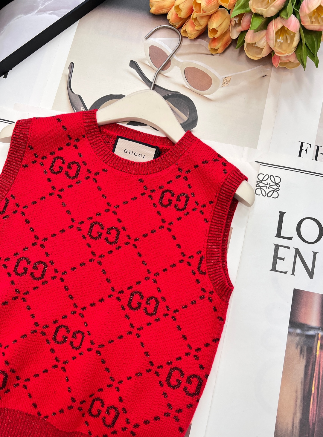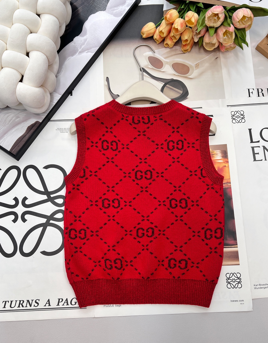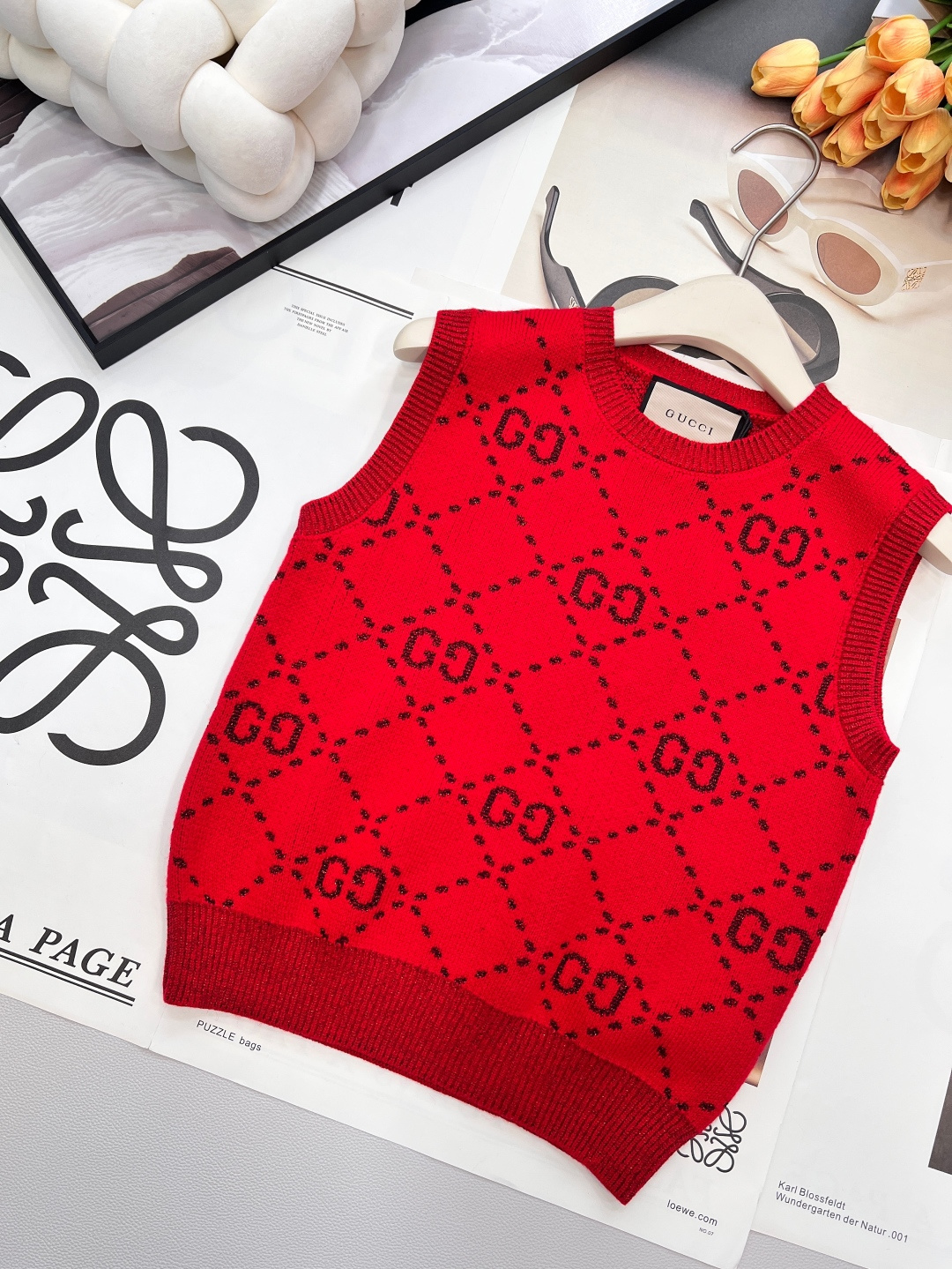 Details: Early spring double-G logo woolen vest, delicate texture, classic style, hides flaws and shows elegance, high-end customization, fine workmanship