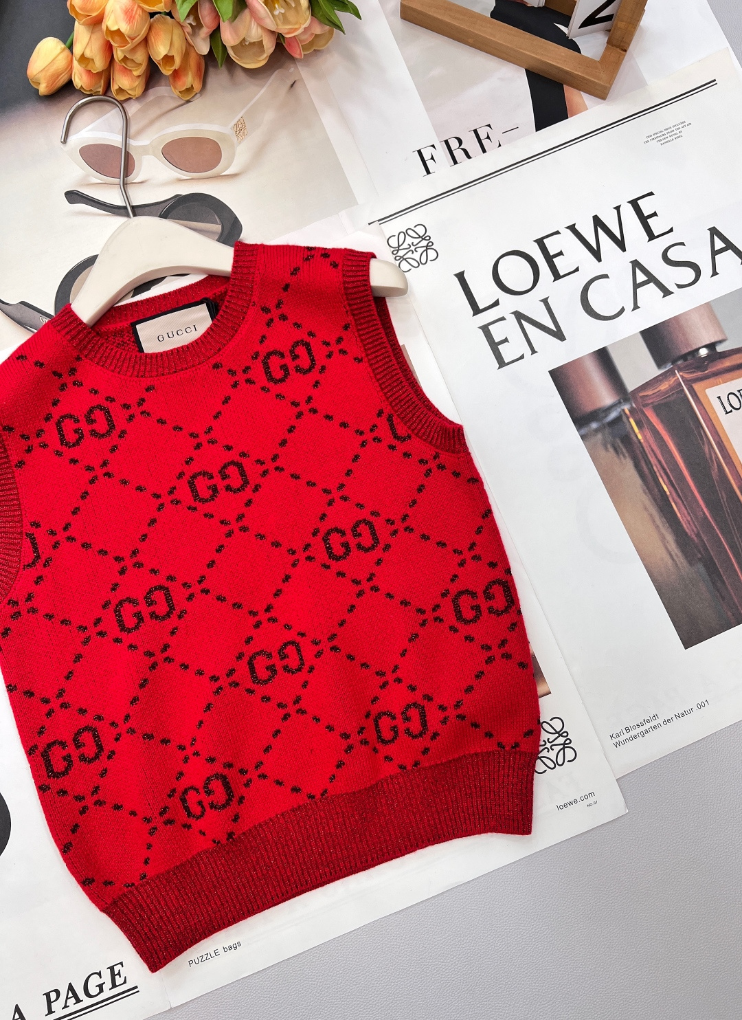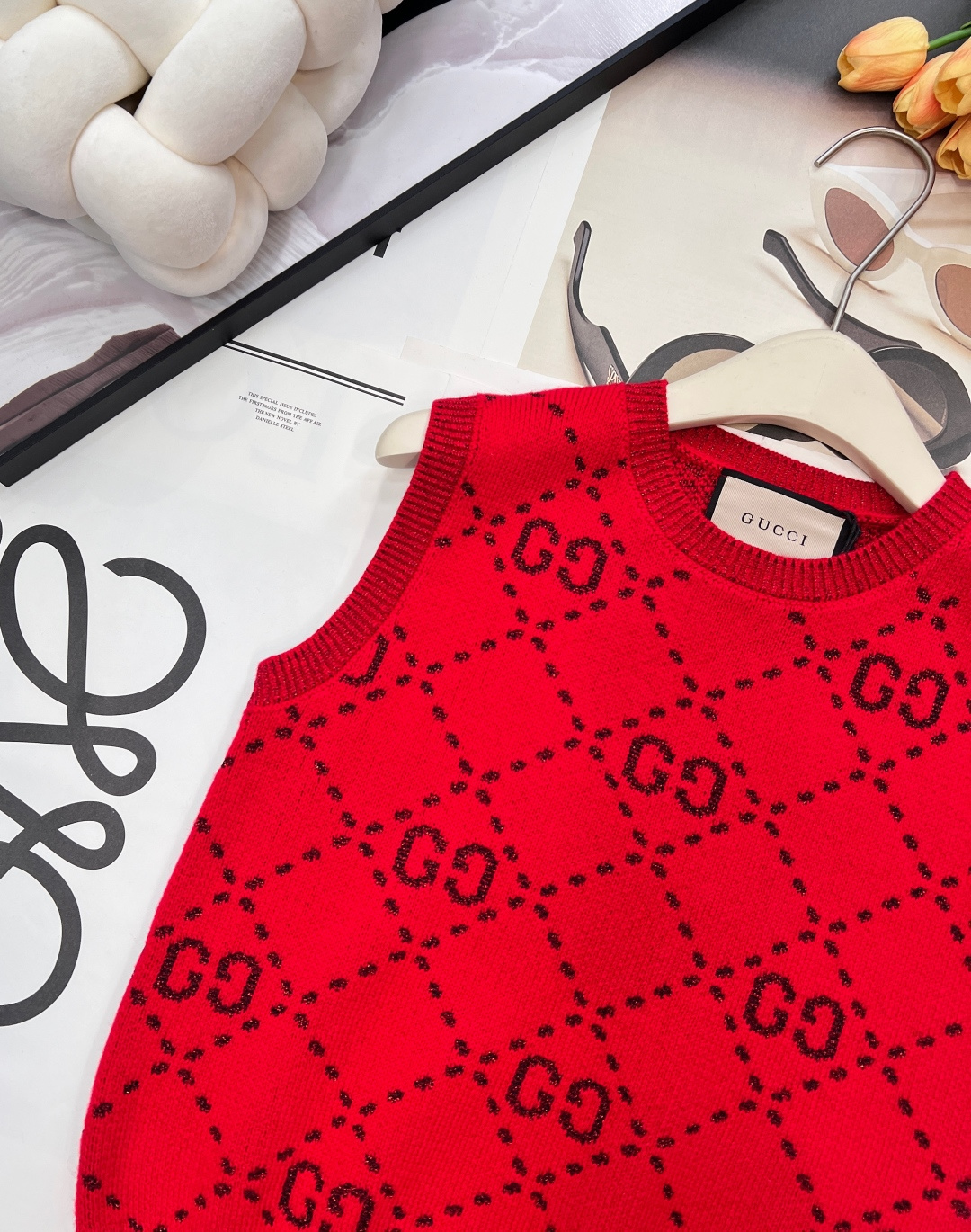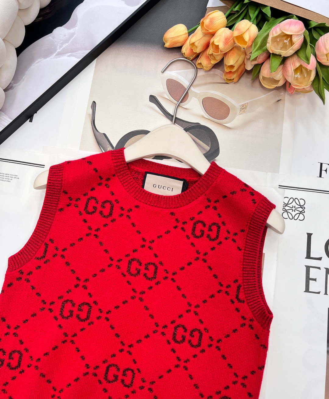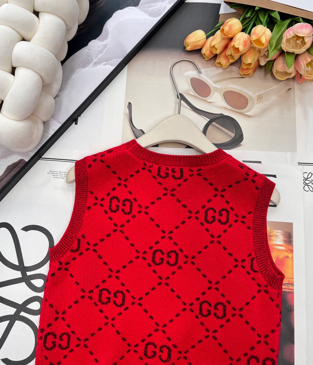 Details: Early spring double-G logo woolen vest, delicate texture, classic style, hides flaws and shows elegance, high-end customization, fine workmanship