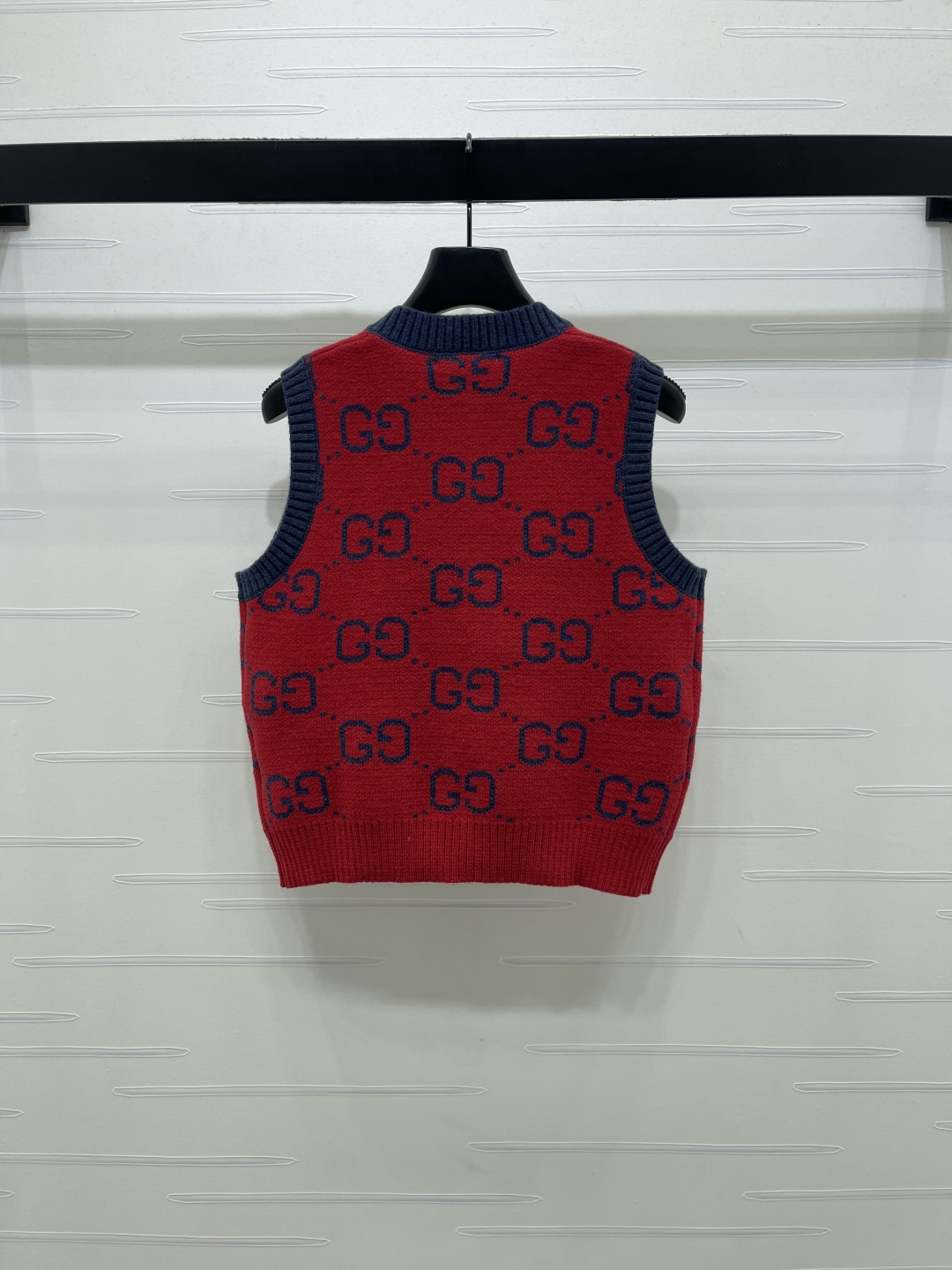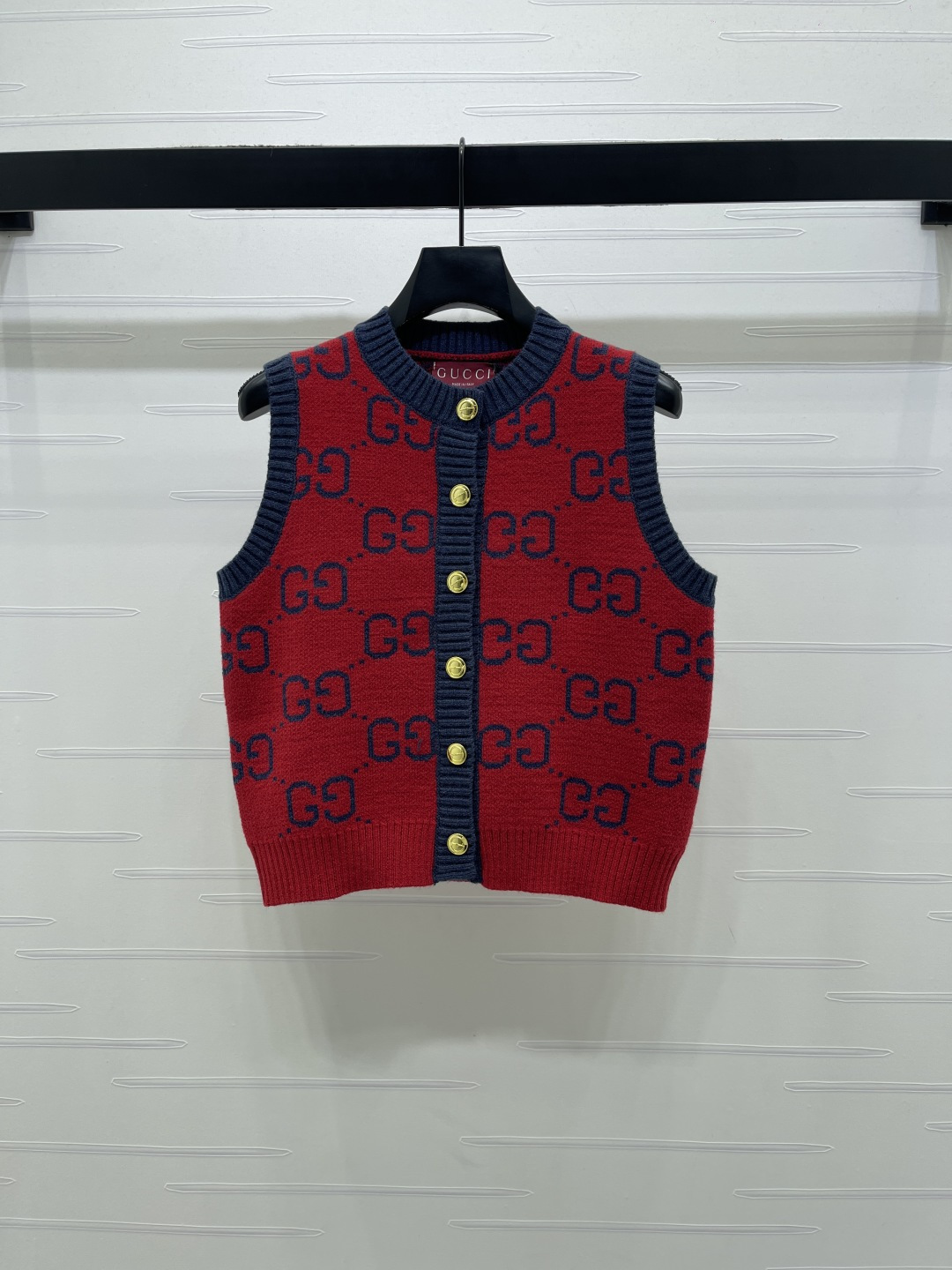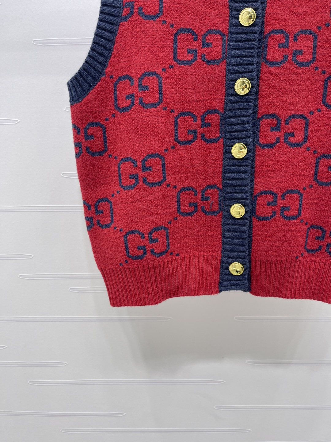 Details: Early Spring Double G Jacquard Round-Neck Knitted Vest Cardigan, Red Color, Relaxed fit.