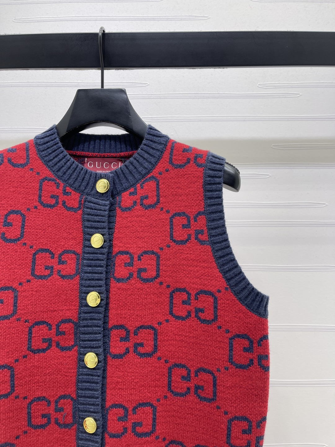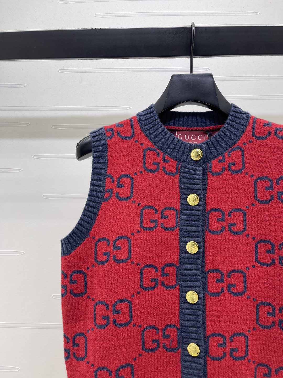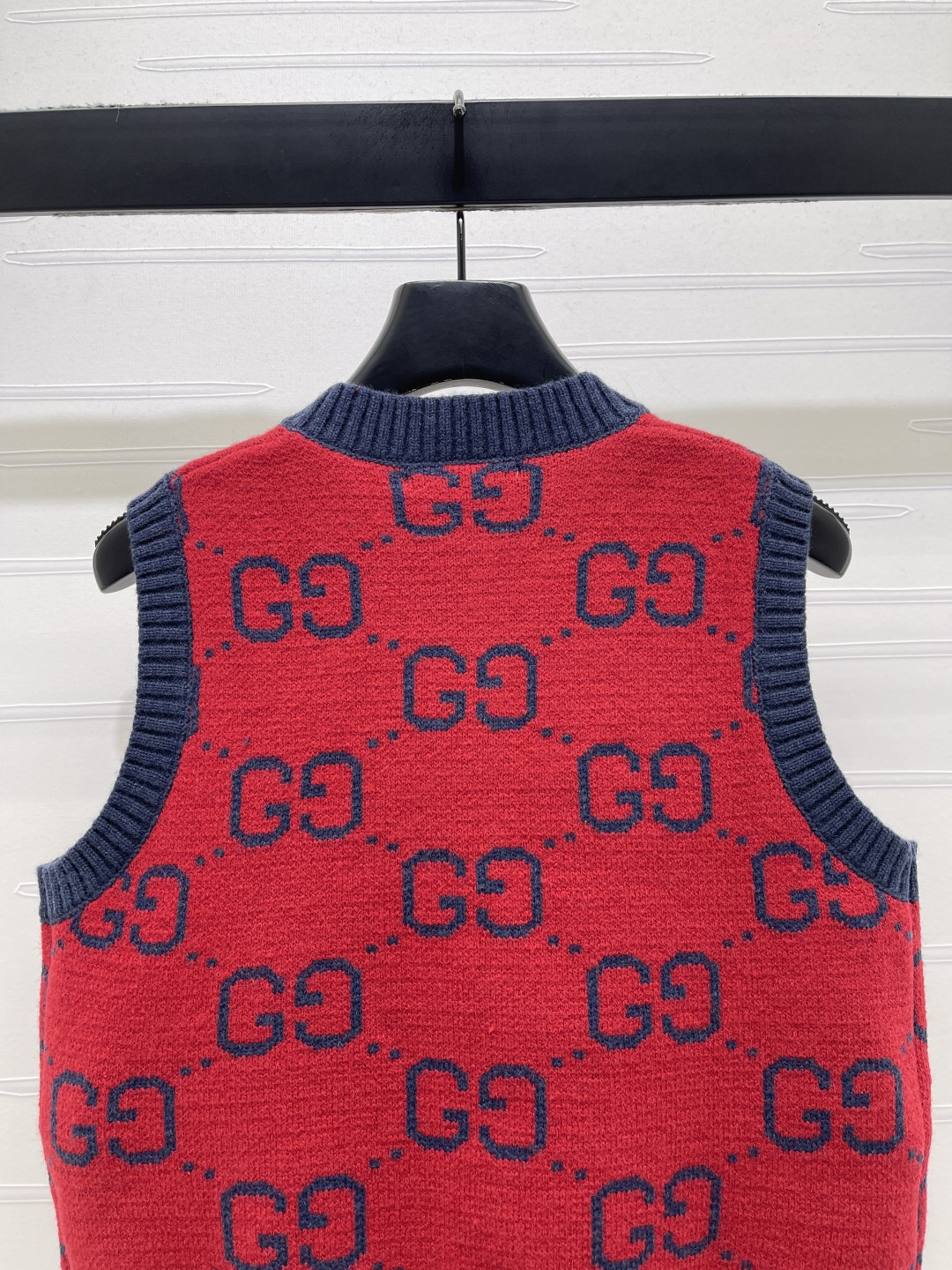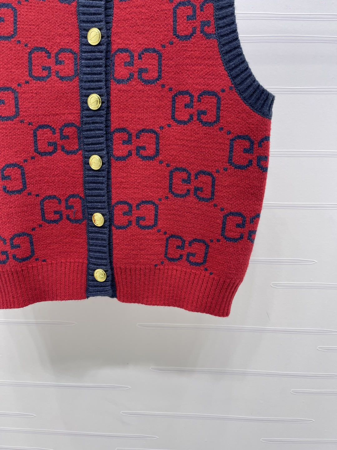 Details: Early Spring Double G Jacquard Round-Neck Knitted Vest Cardigan, Red Color, Relaxed fit.