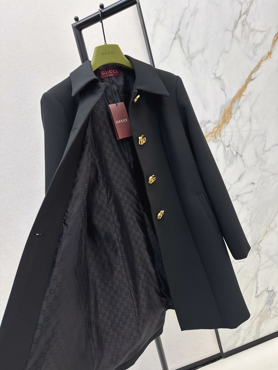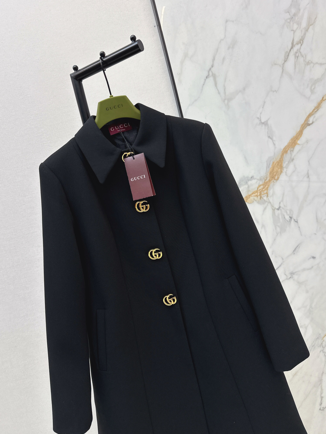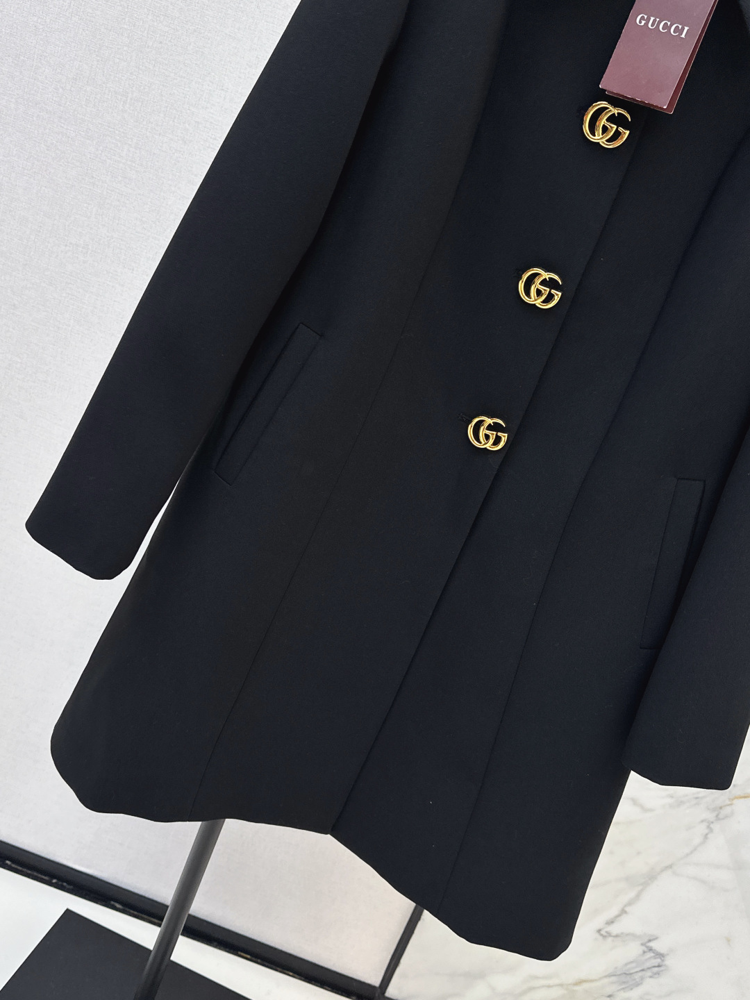 Details: Spring mid - length collar jacket with hardware buttons. Good for neckline. High - end customization and fine workmanship