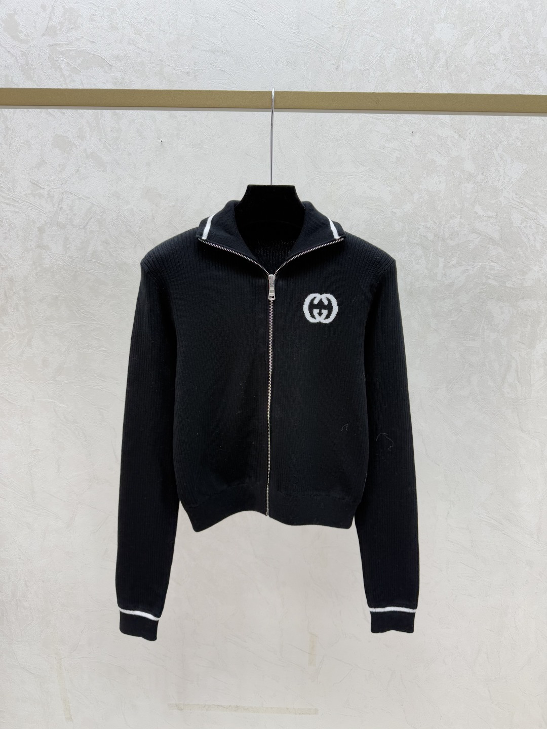 Details: Early autumn new collared knitted long-sleeved cardigans in black, sizes 36-40, High-end customization, Fine workmanship