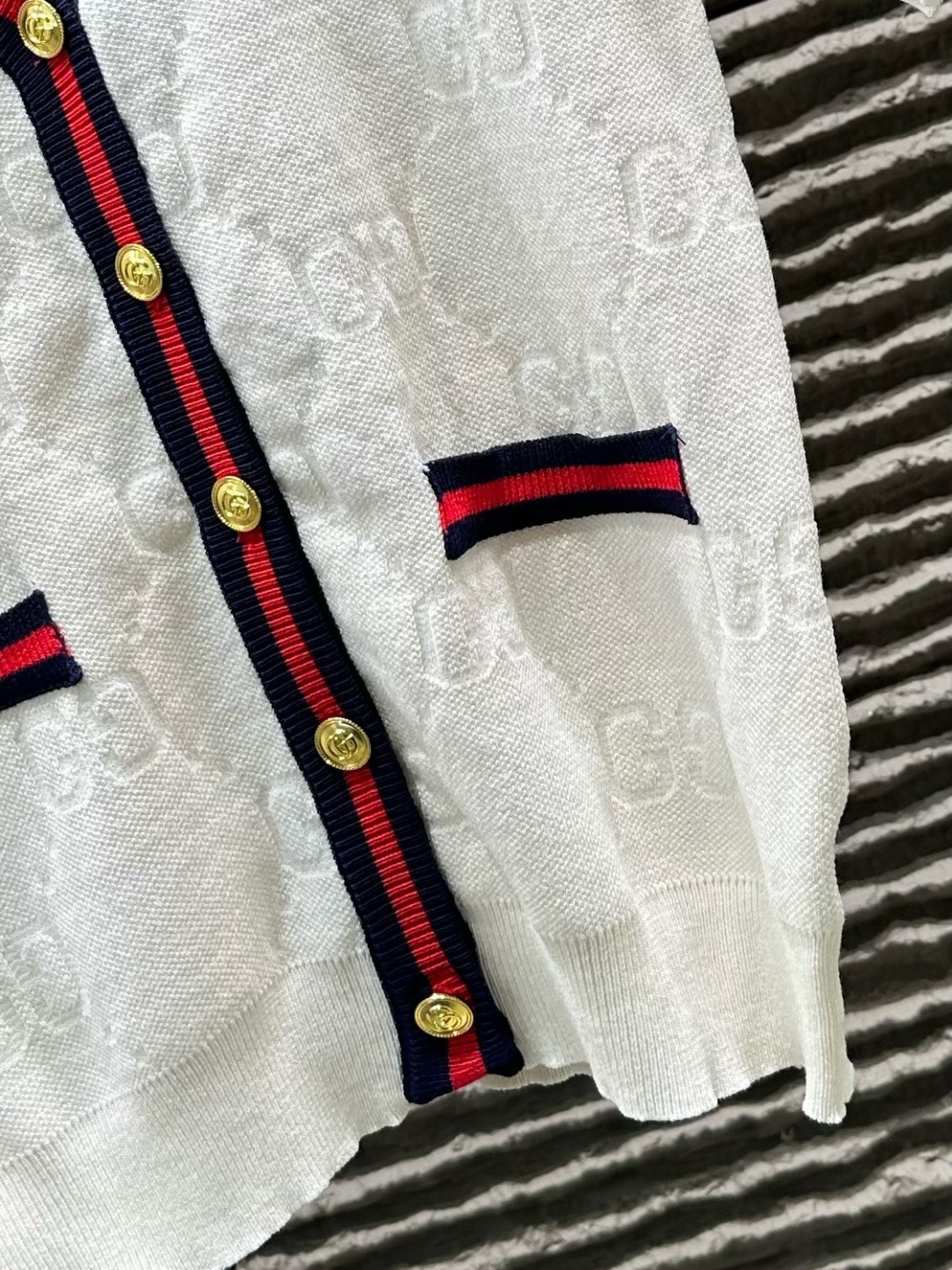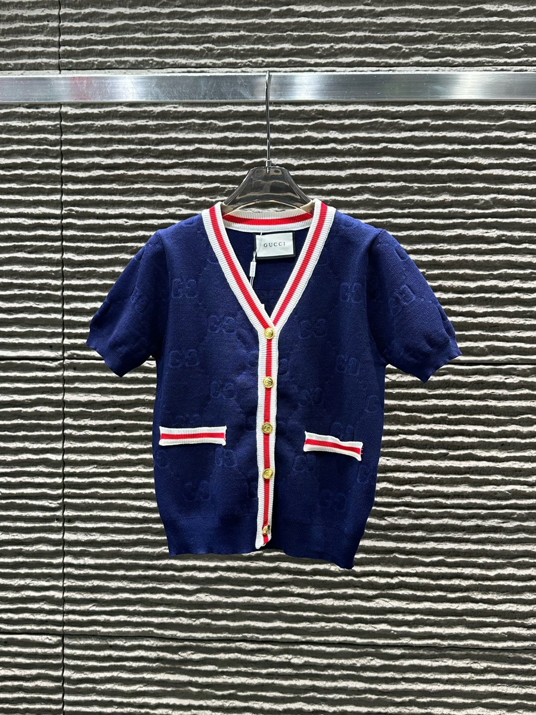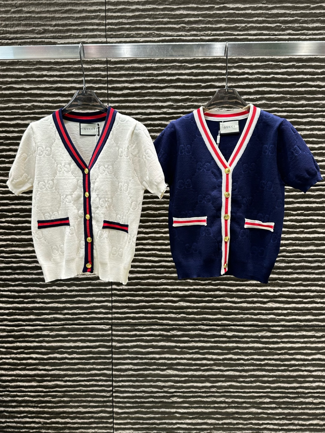 Details: Jacquard letter V-neck cardigan short-sleeved top.