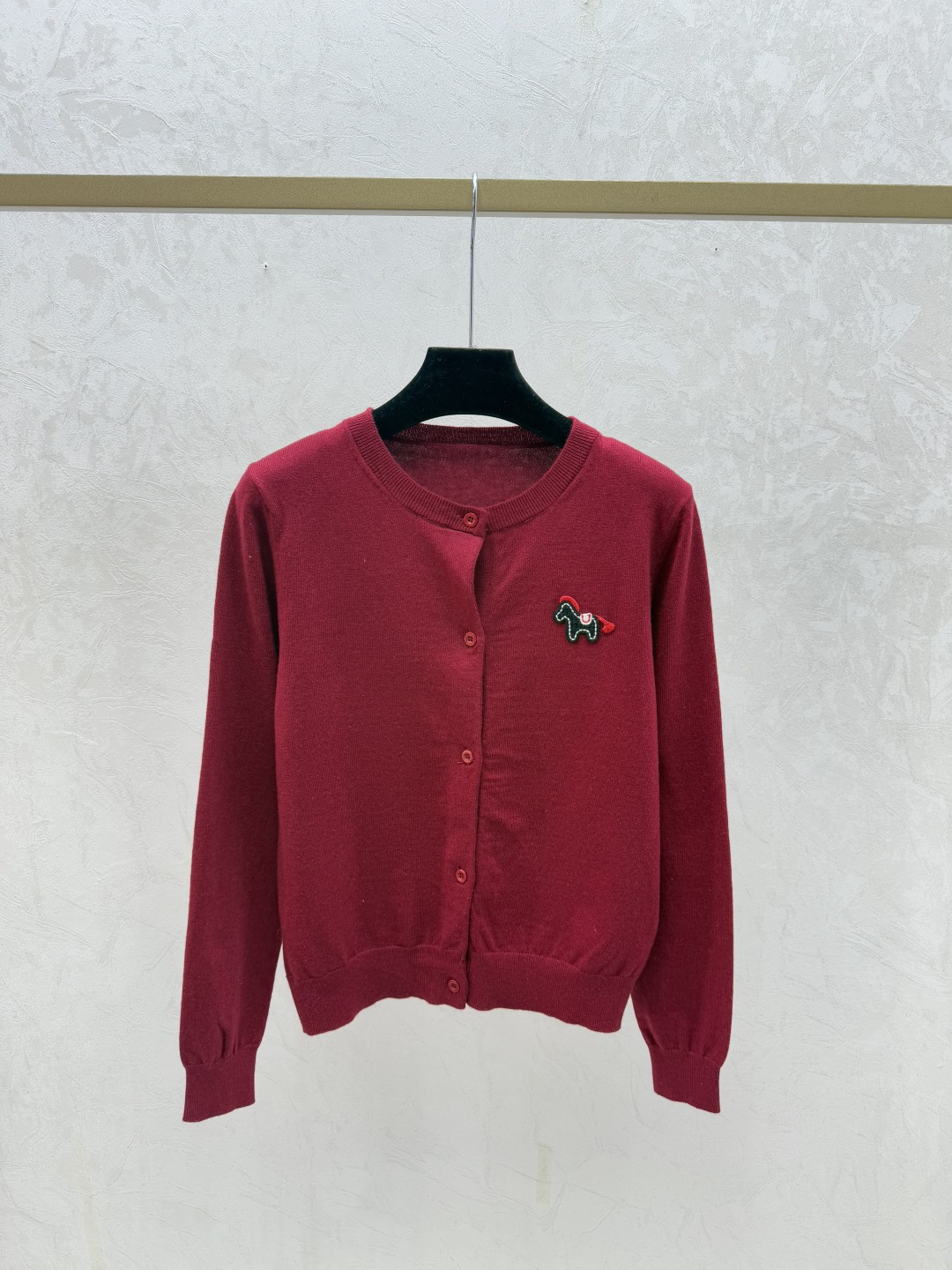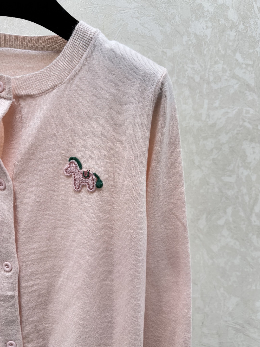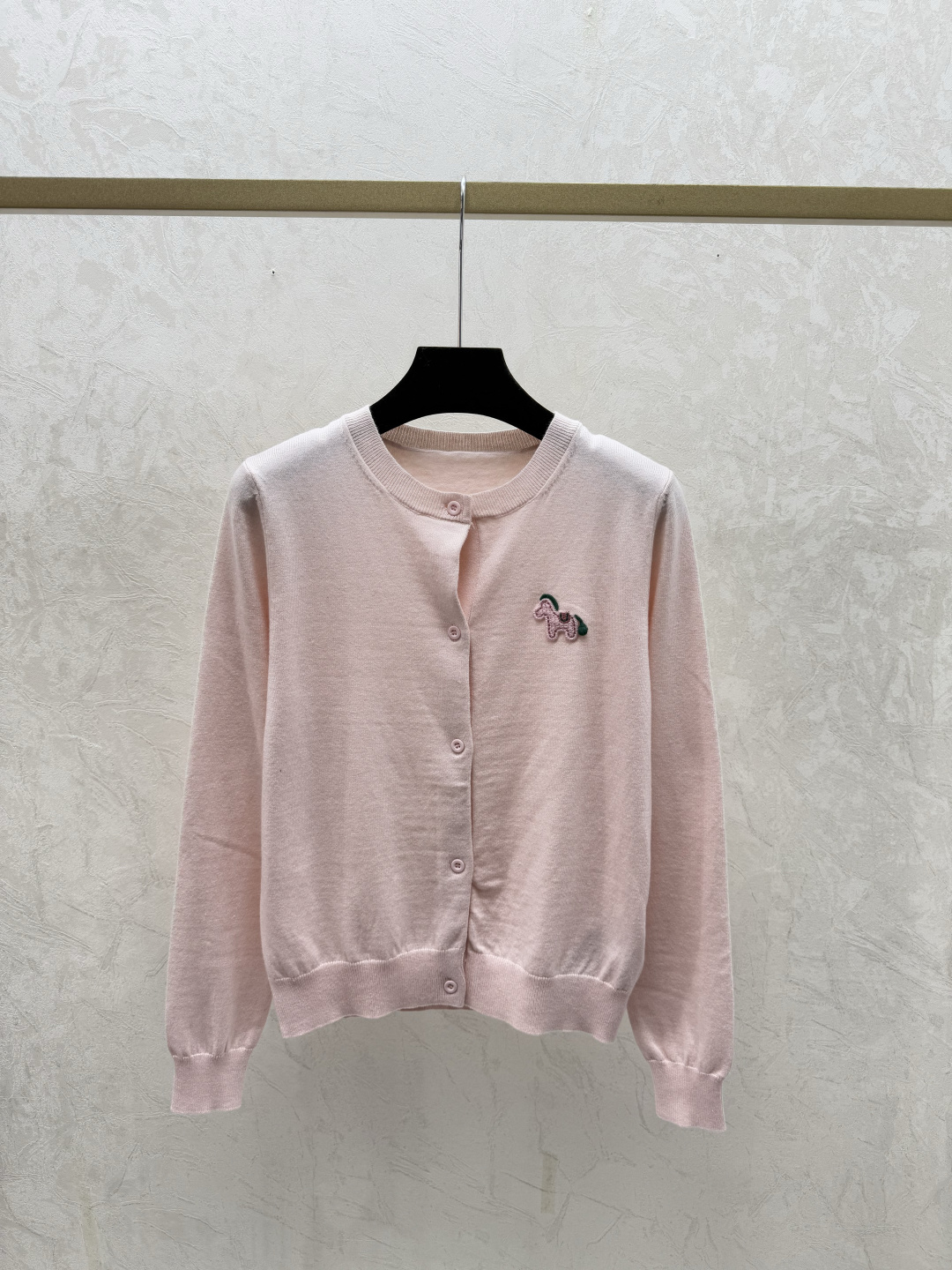 Details: Early autumn solid color pony round neck knitted long - sleeve cardigan in pink, apricot, red, sizes 36 - 40. High - end customization, fine workmanship