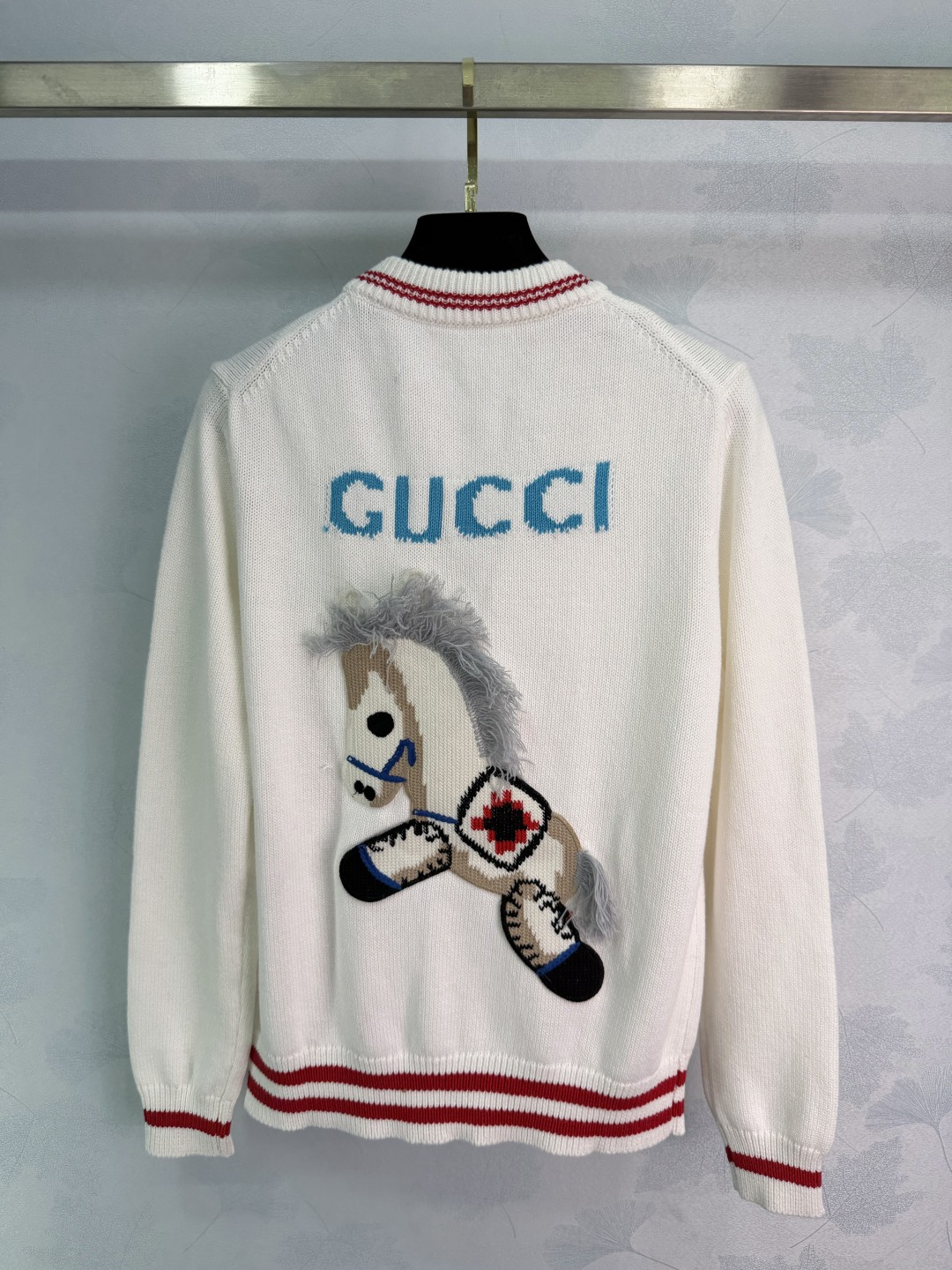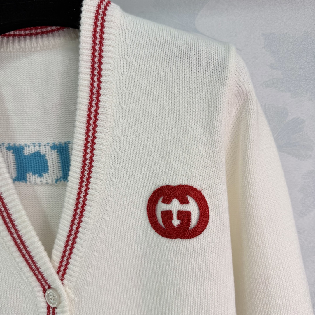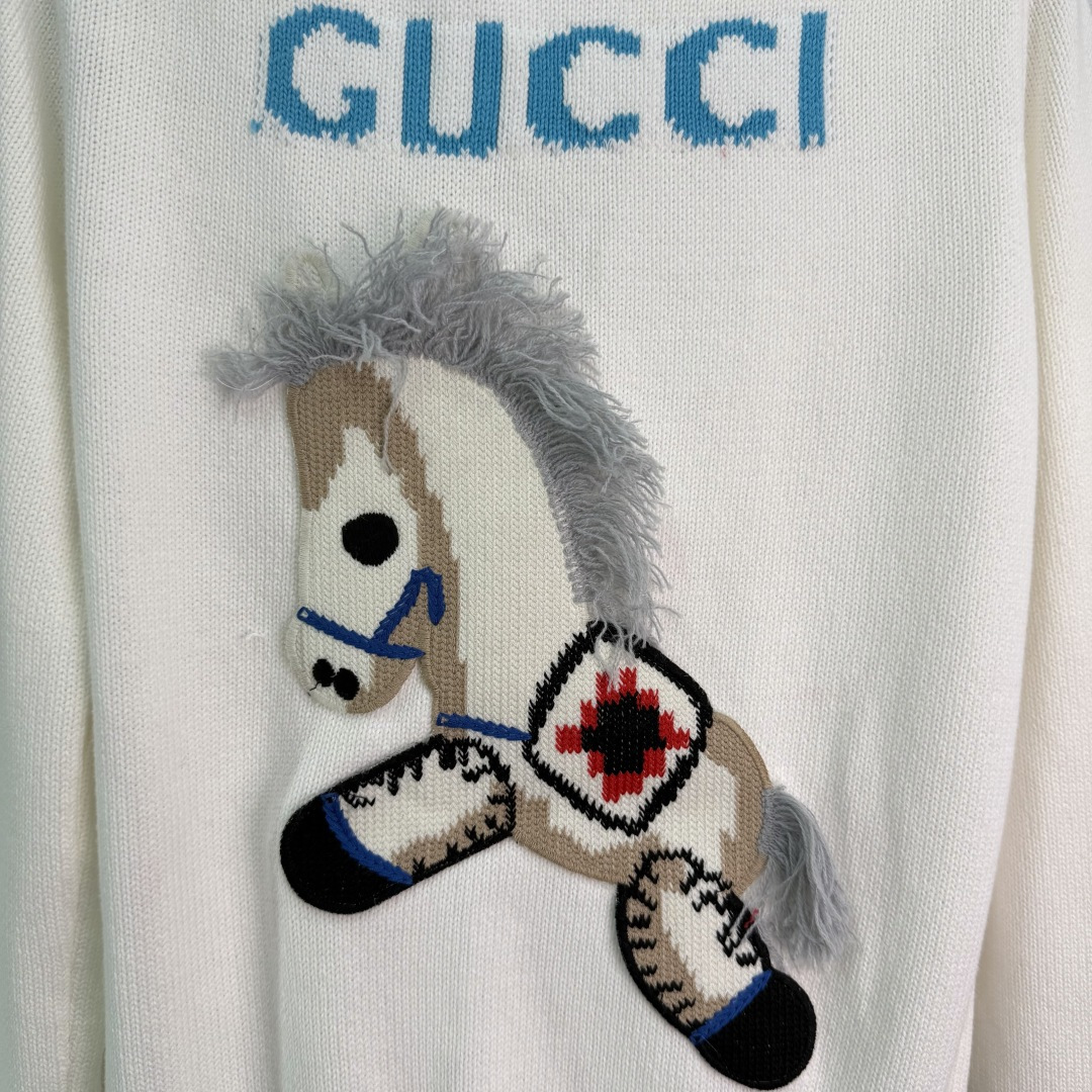 Details: Early spring white V-neck knitted cardigan with horse pattern, retro and sporty, available in 1 color and 3 sizes.