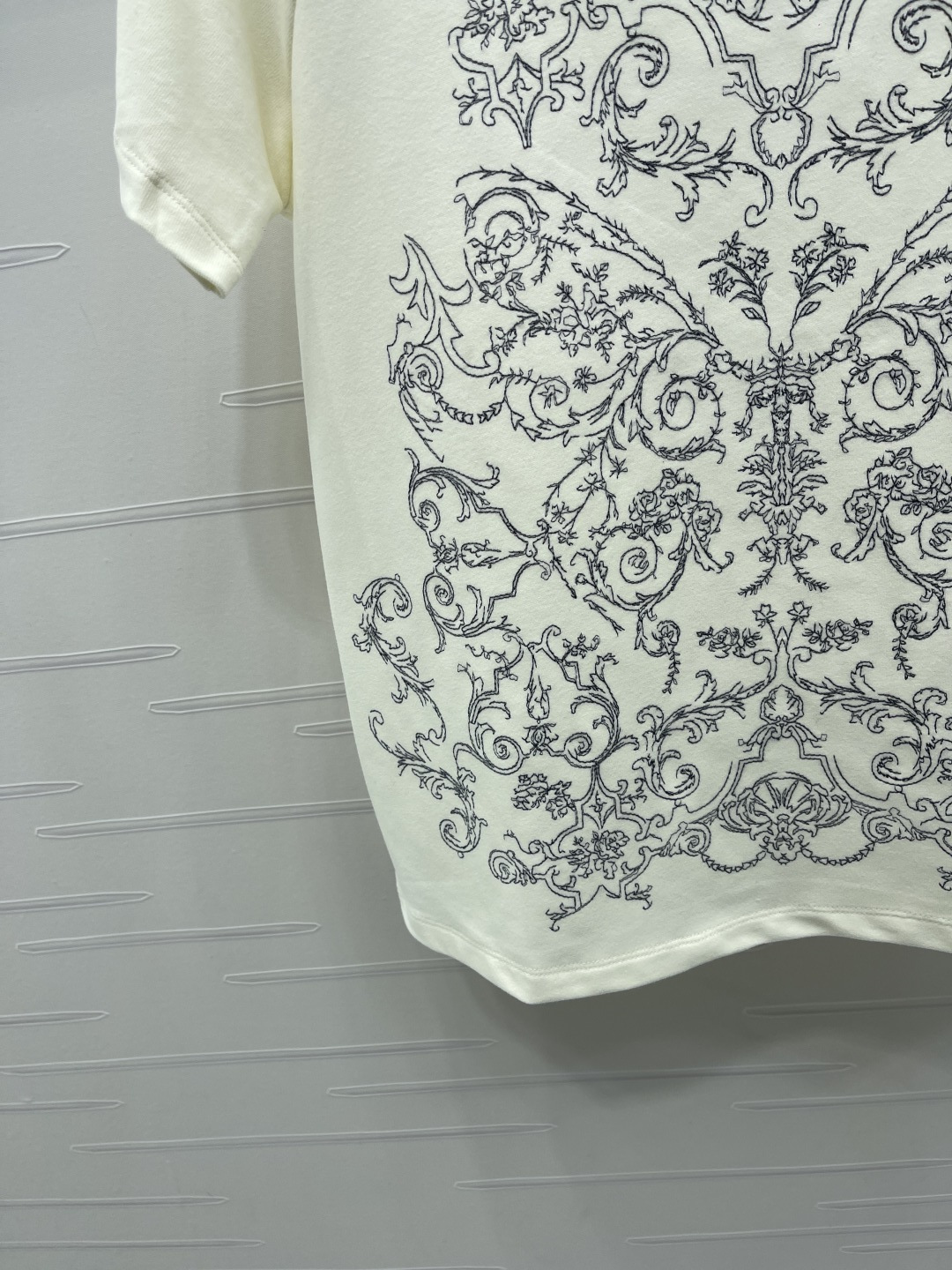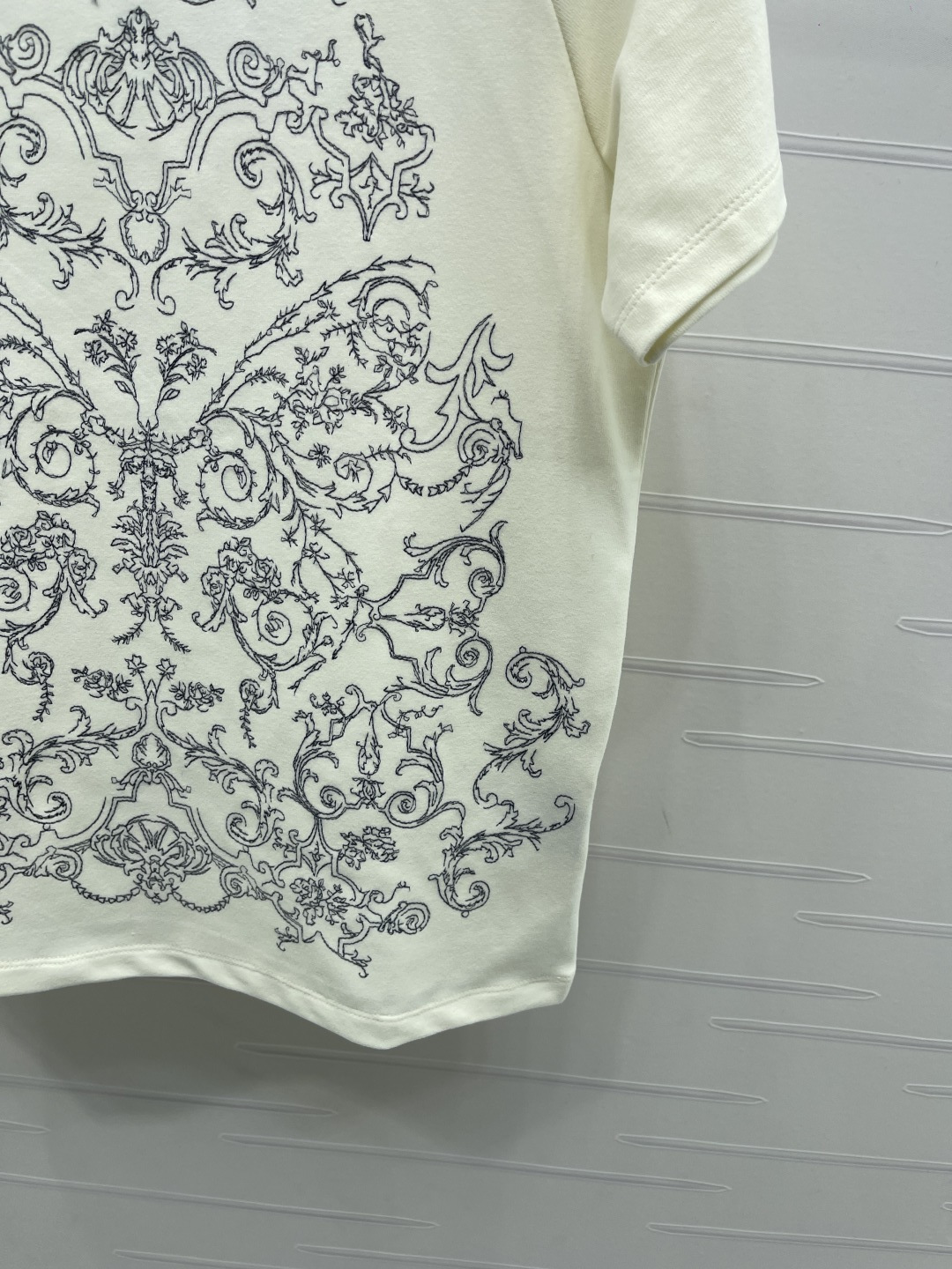 Details: Premium cotton floral T-shirt from early spring collection, classic cut, elegant and versatile for skirts or jeans