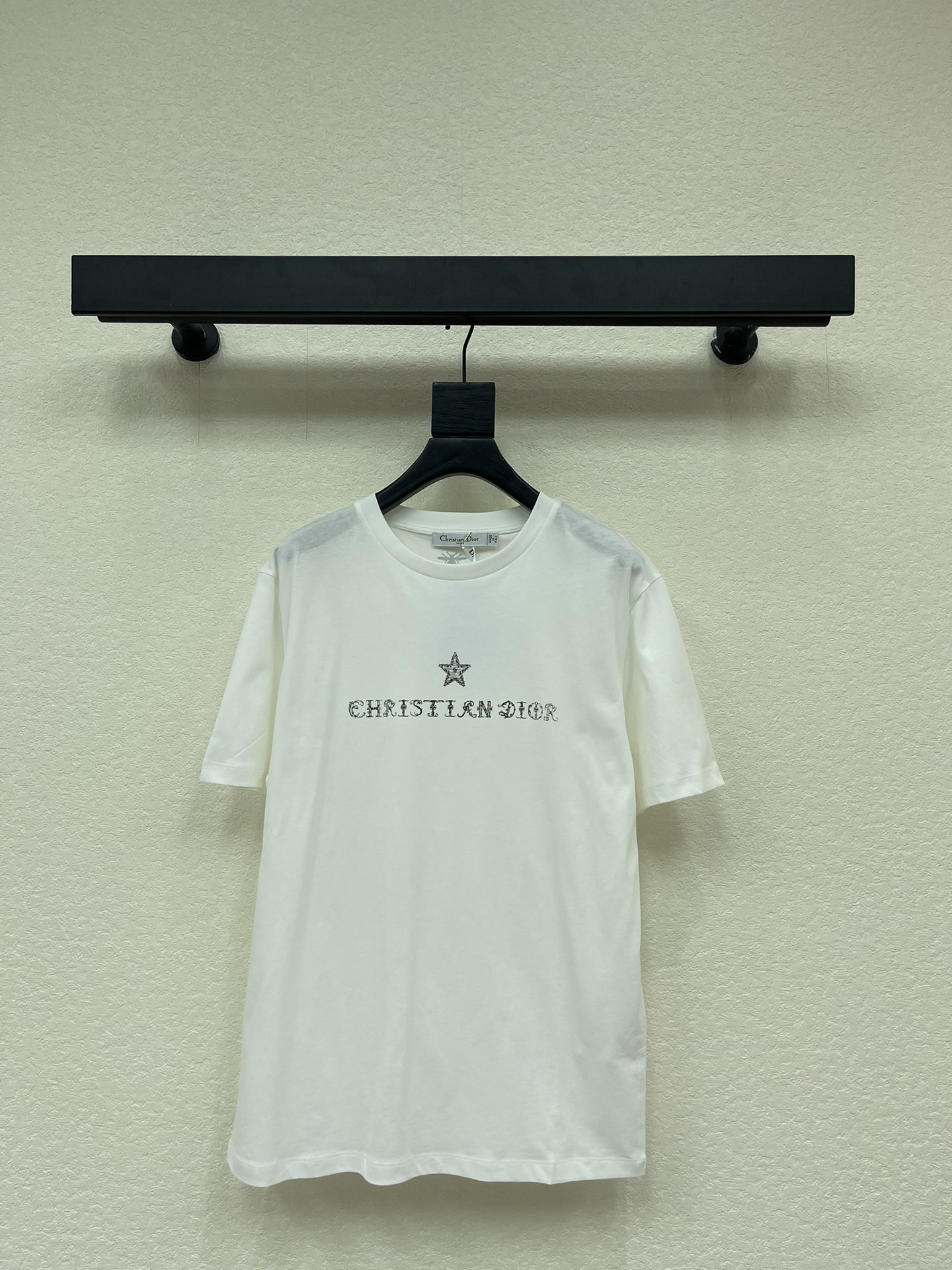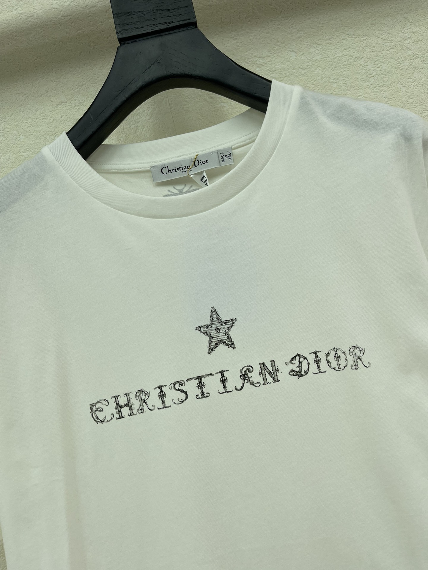 Details: Early spring round neck printed short-sleeved T-shirt with floral letters and vines, coordinated design