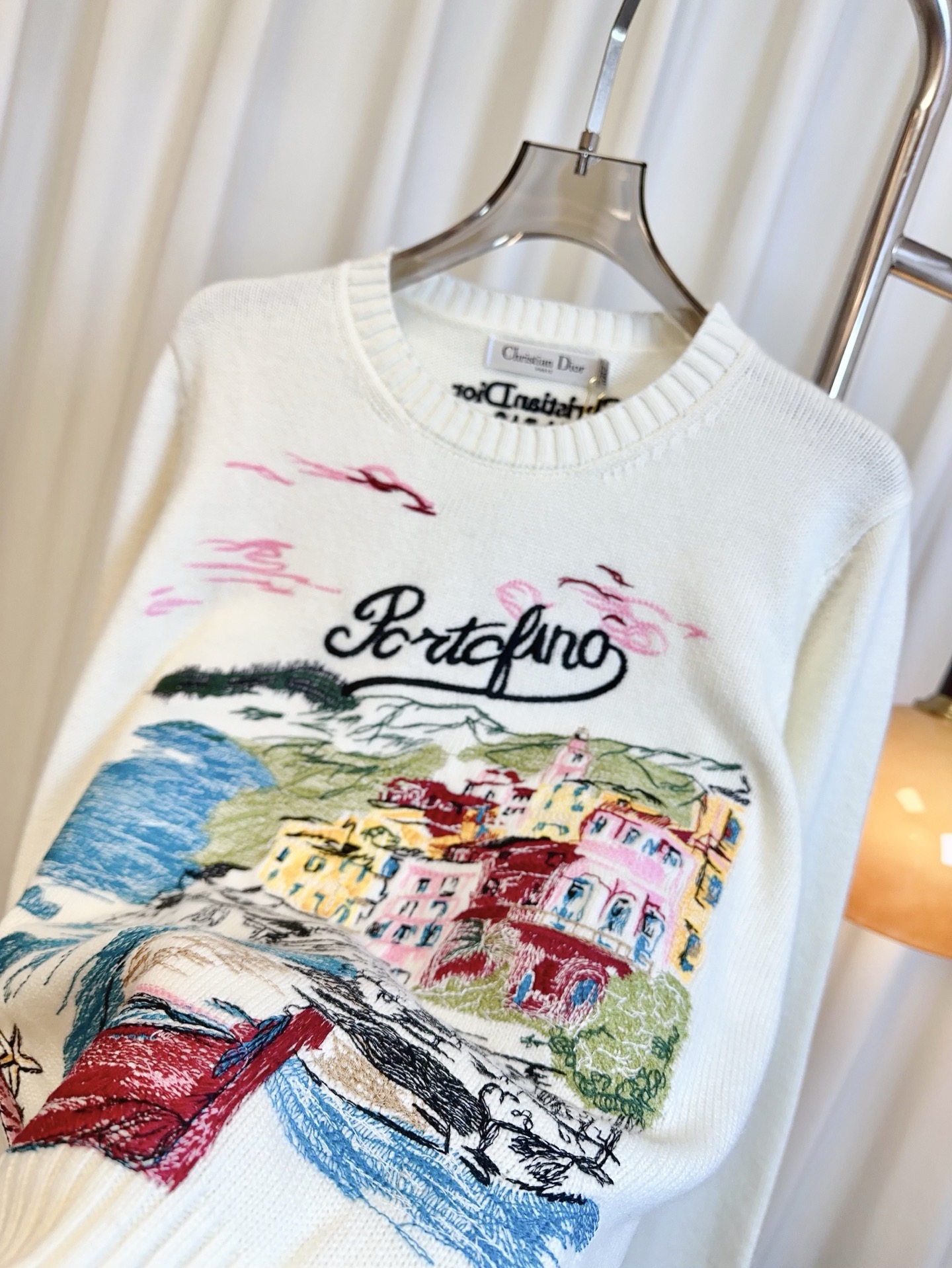 Details: Custom-made cashmere top with colorful embroidery logo, soft, breathable, high-quality craftsmanship