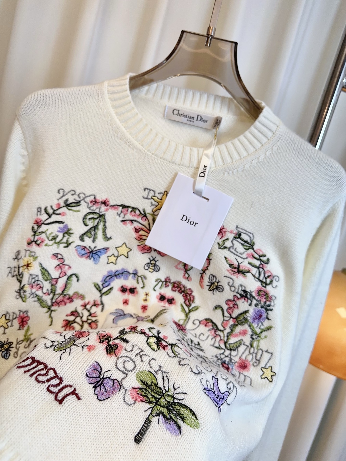 Details: New Love Floral Embroidery Logo Cashmere Long-Sleeved Top, soft and of high quality. Premium custom with fine workmanship