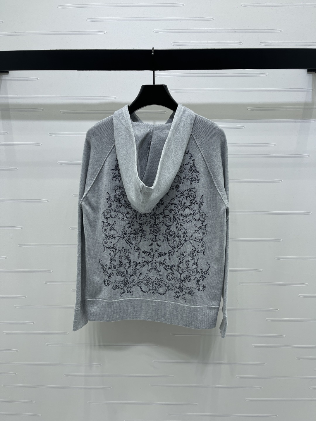Details: Autumn/Winter Hooded Cardigan with Letter Back and Butterfly Embroidery, 3 Colors, 3 Sizes. High-end Custom, Fine Workmanship