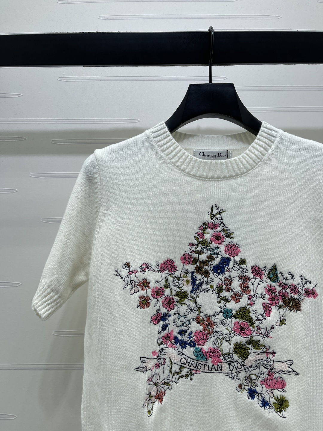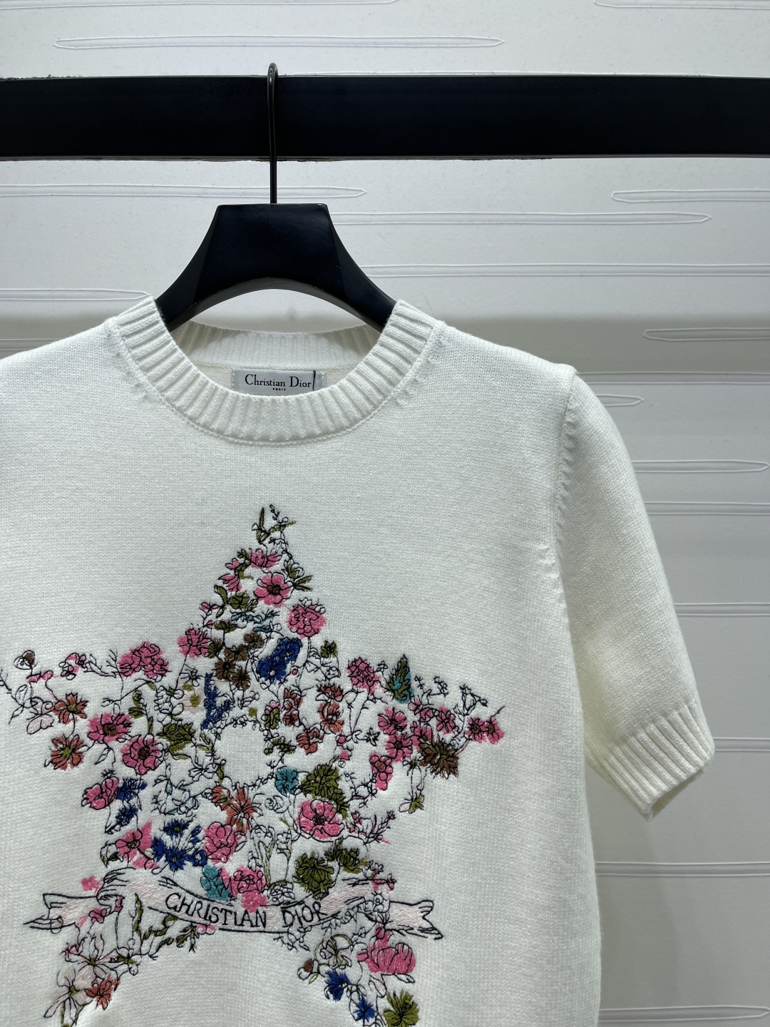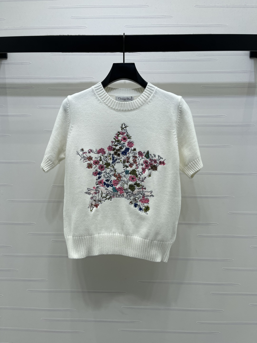 Details: Early Spring Knit Short Sleeve with Star Embroidery, 3 Colors, 3 Sizes. High - end Custom, Fine Workmanship