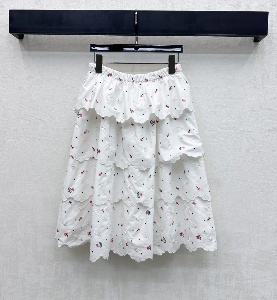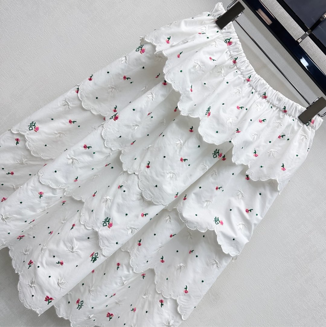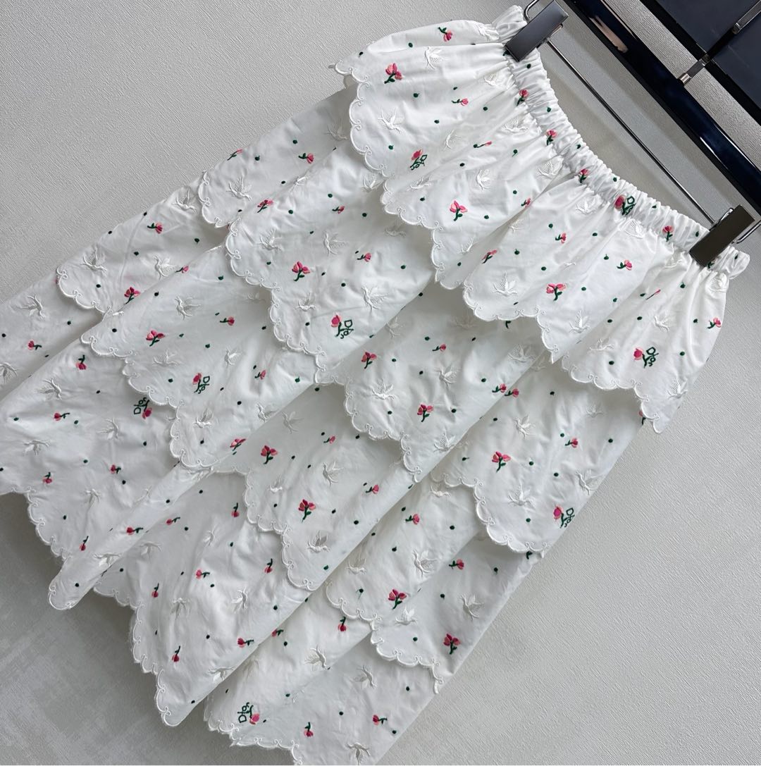 Details: Embroidered Cotton Skirt with Dove and Rose Logo, Graceful and Slimming, High-end Customization, Fine Craftsmanship