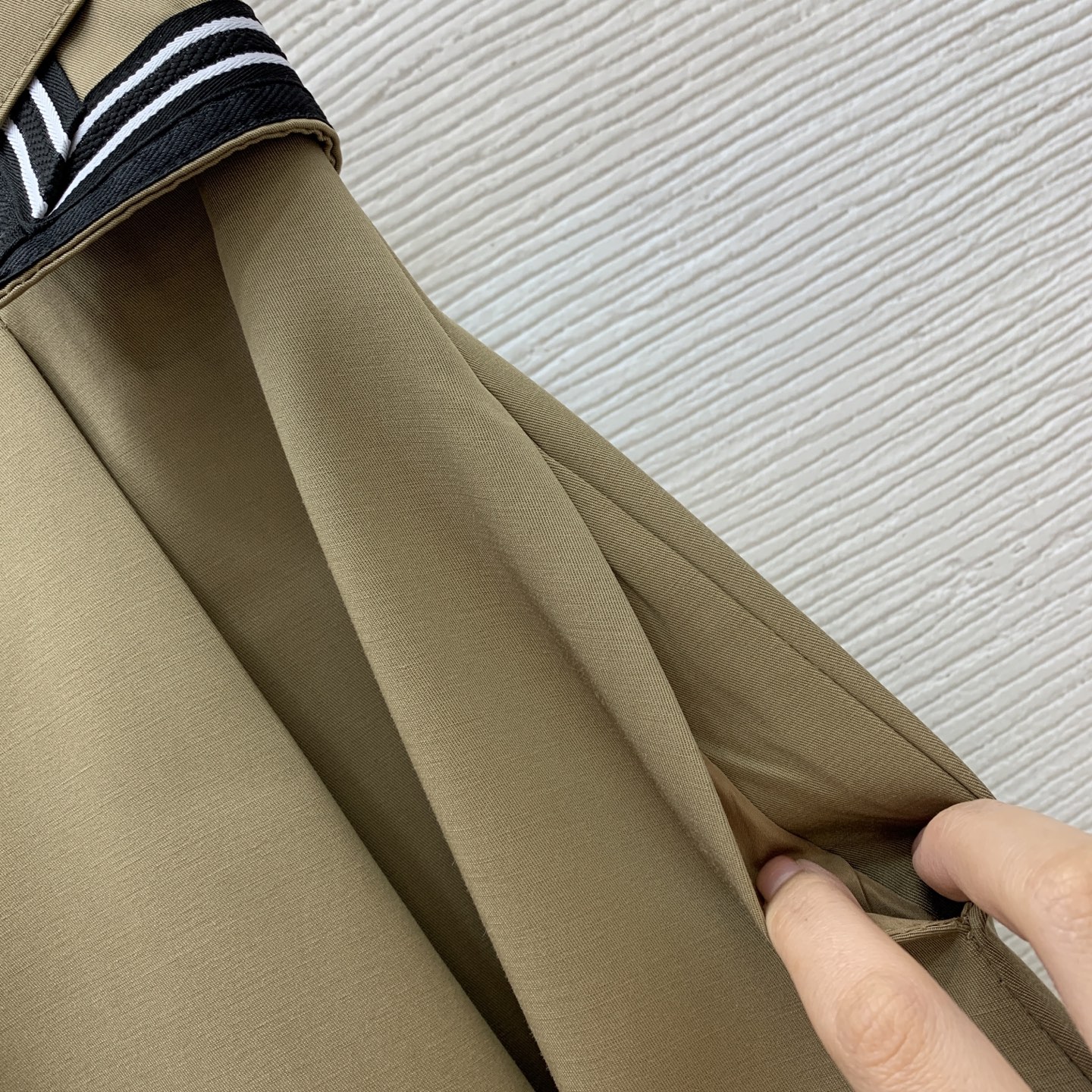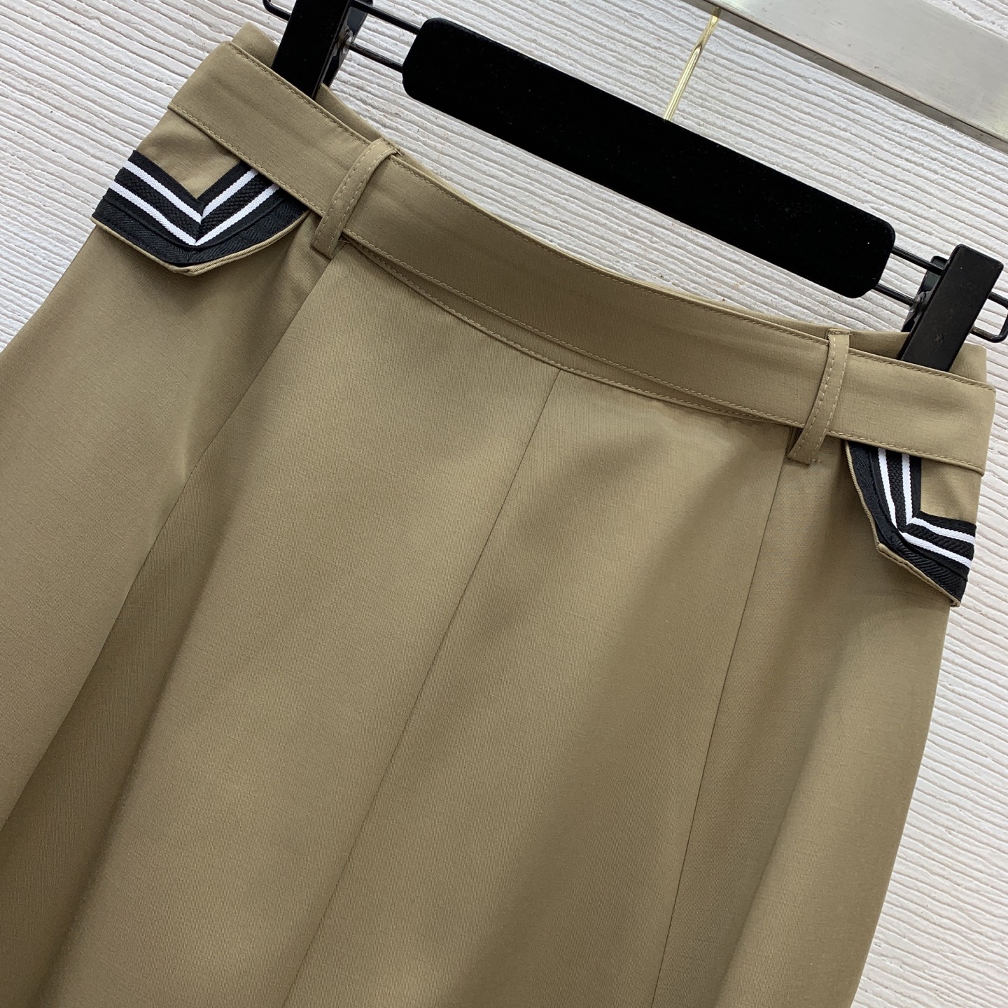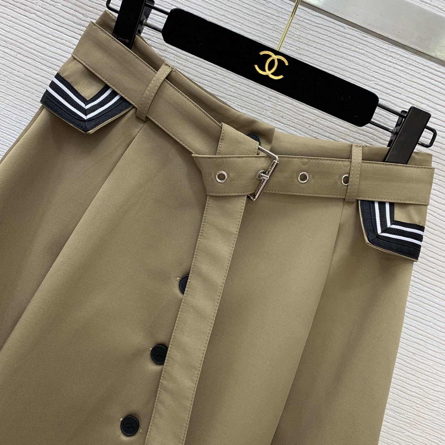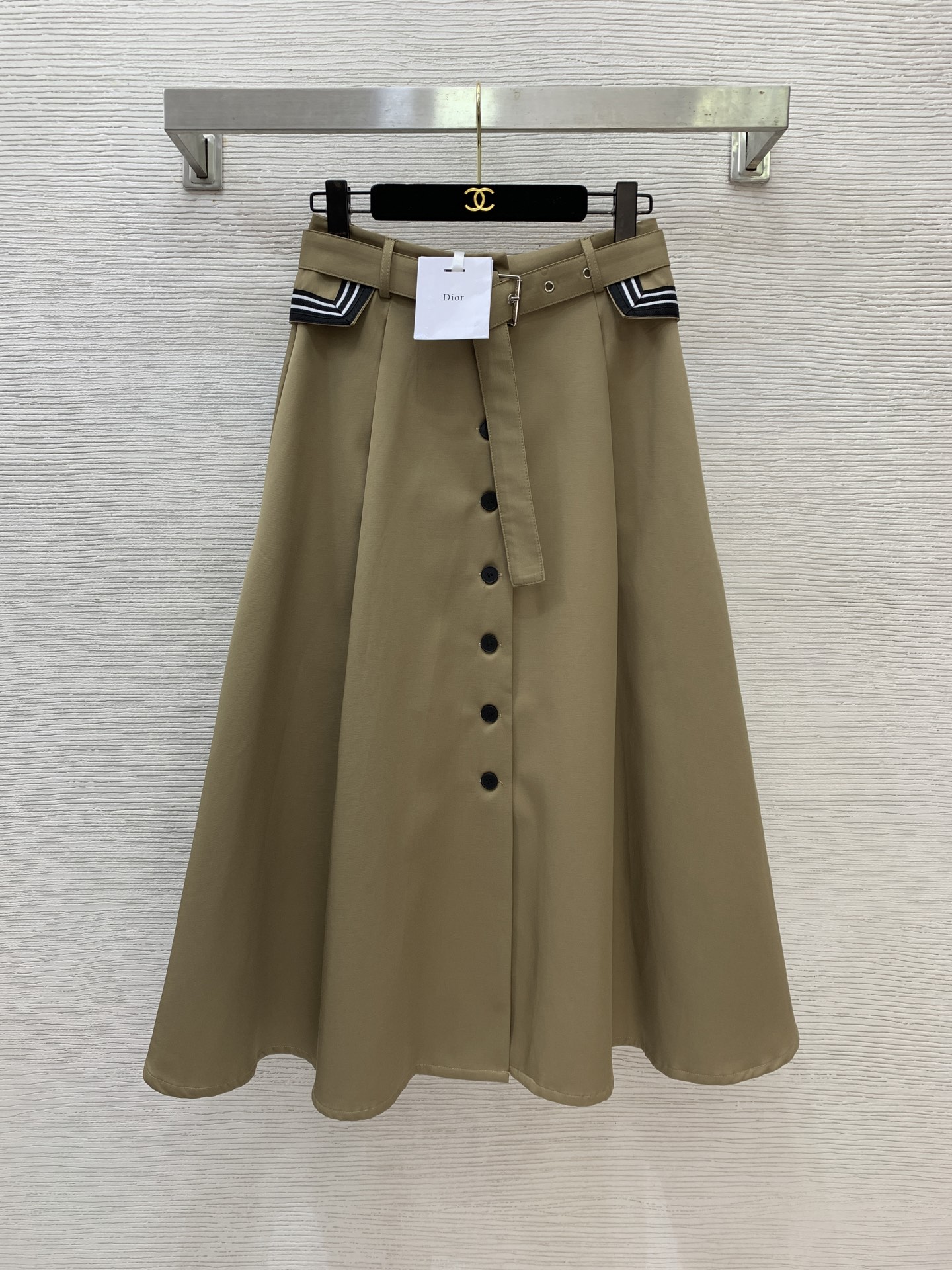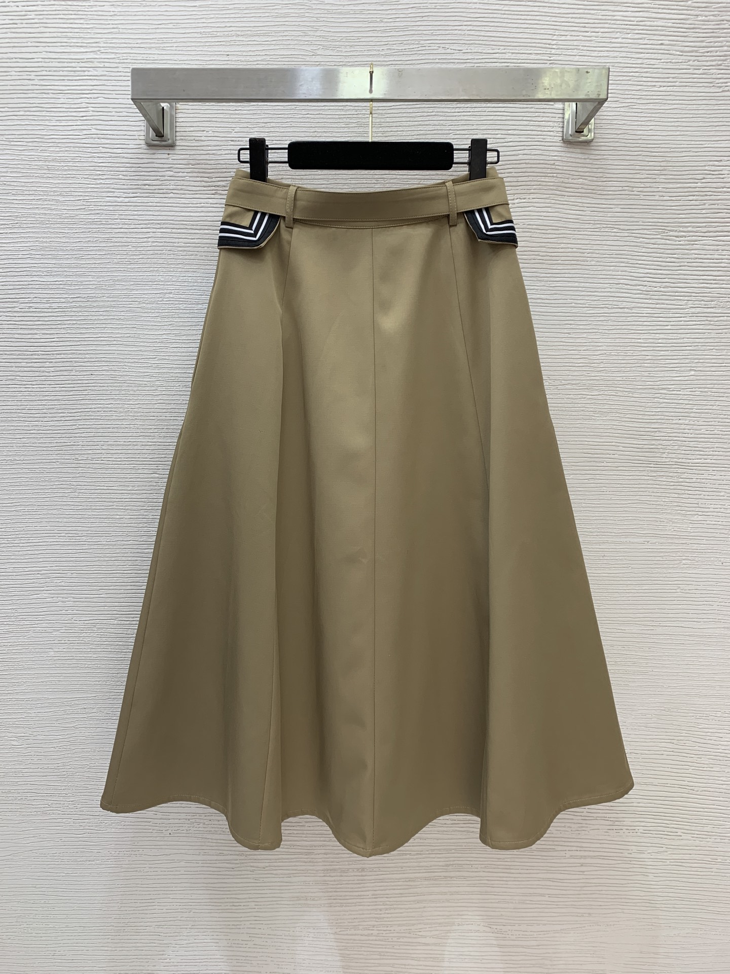 Details: New high - end custom cotton striped flapped long midi skirt, available in khaki and black, size M.