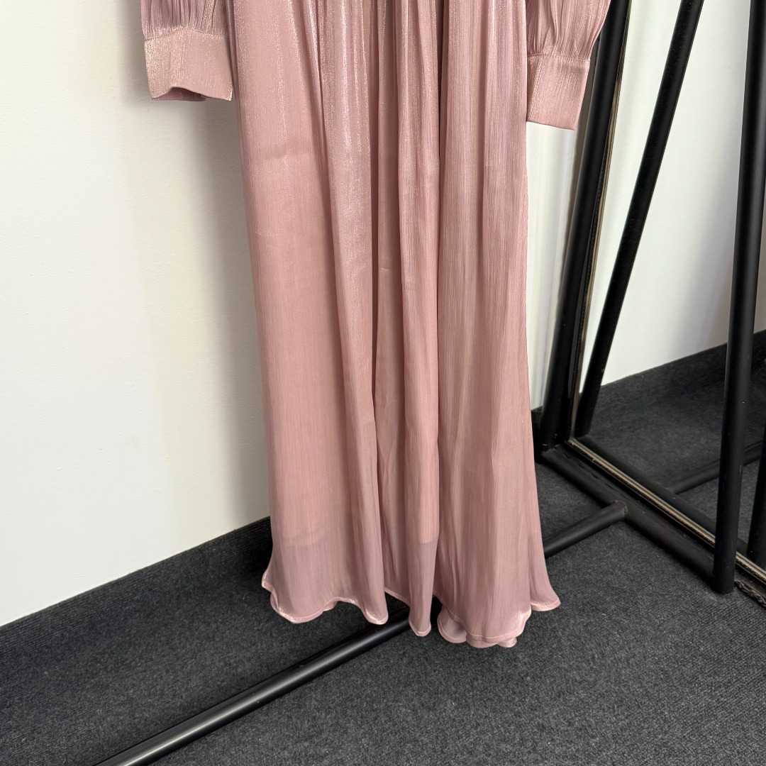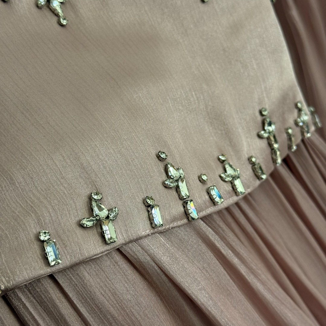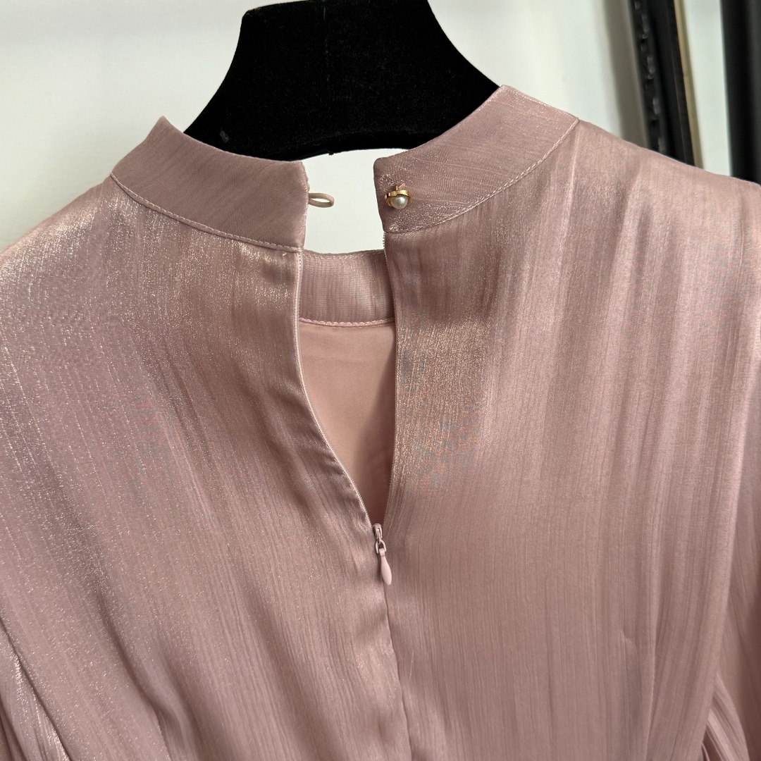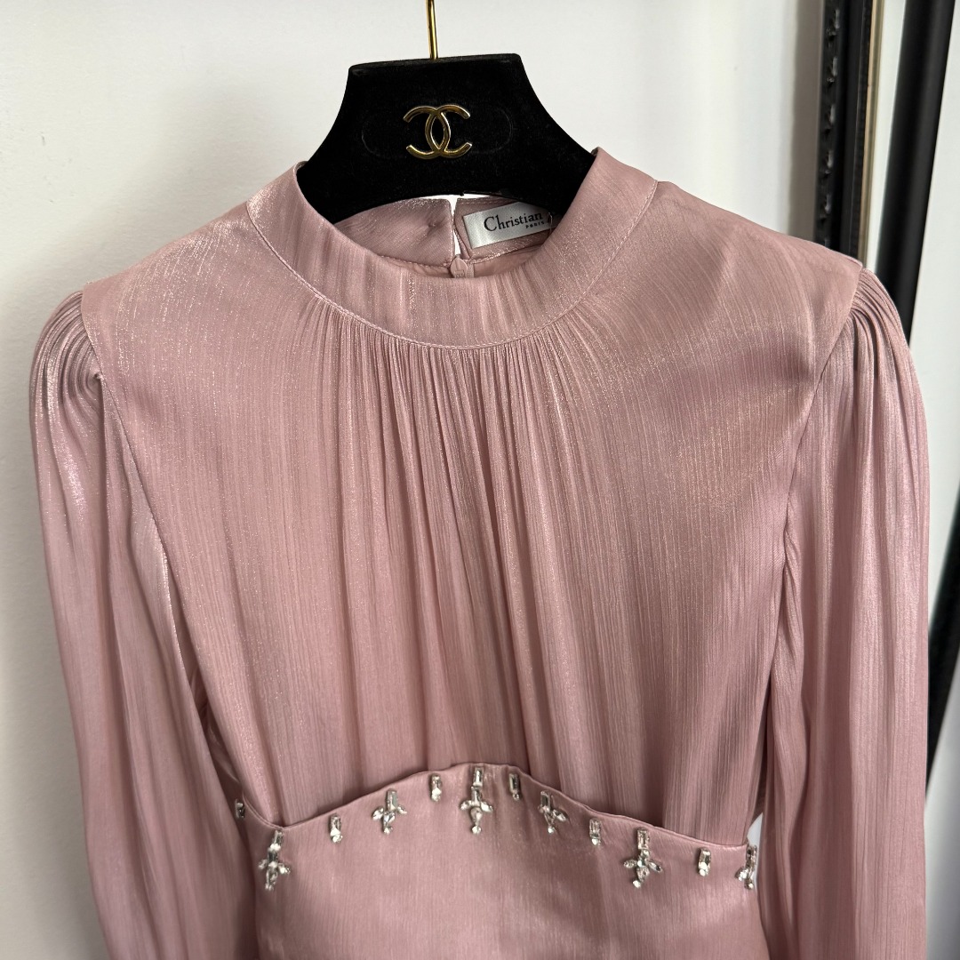 Details: New Pink or Red Studded Waistband Silk-blend Long-sleeved Dress. High-end Custom, Fine Craftsmanship