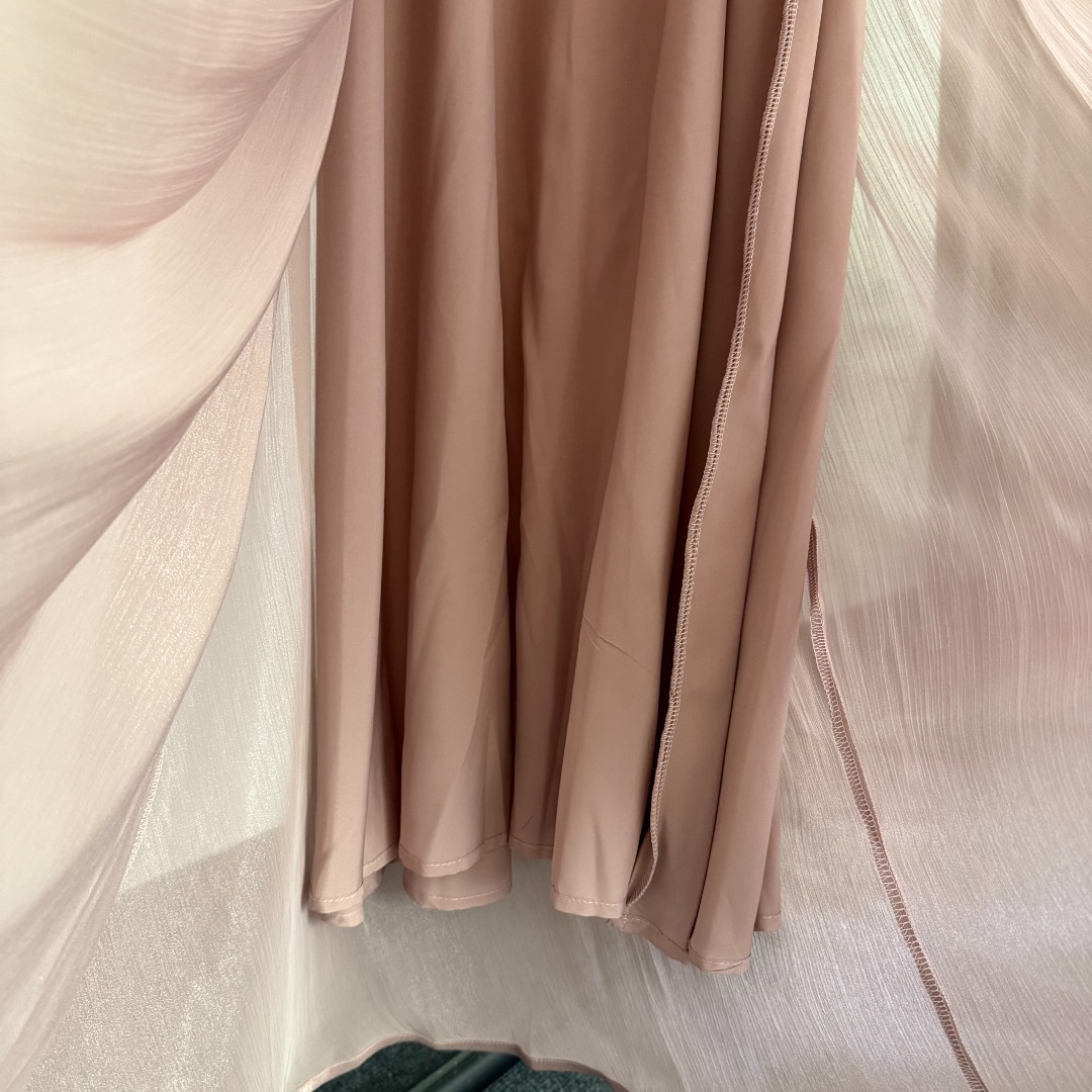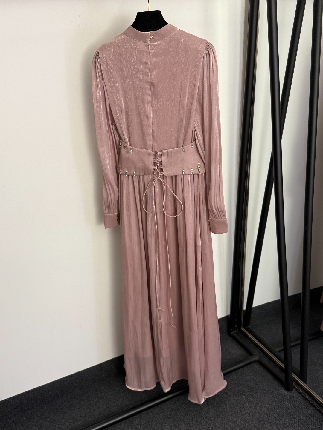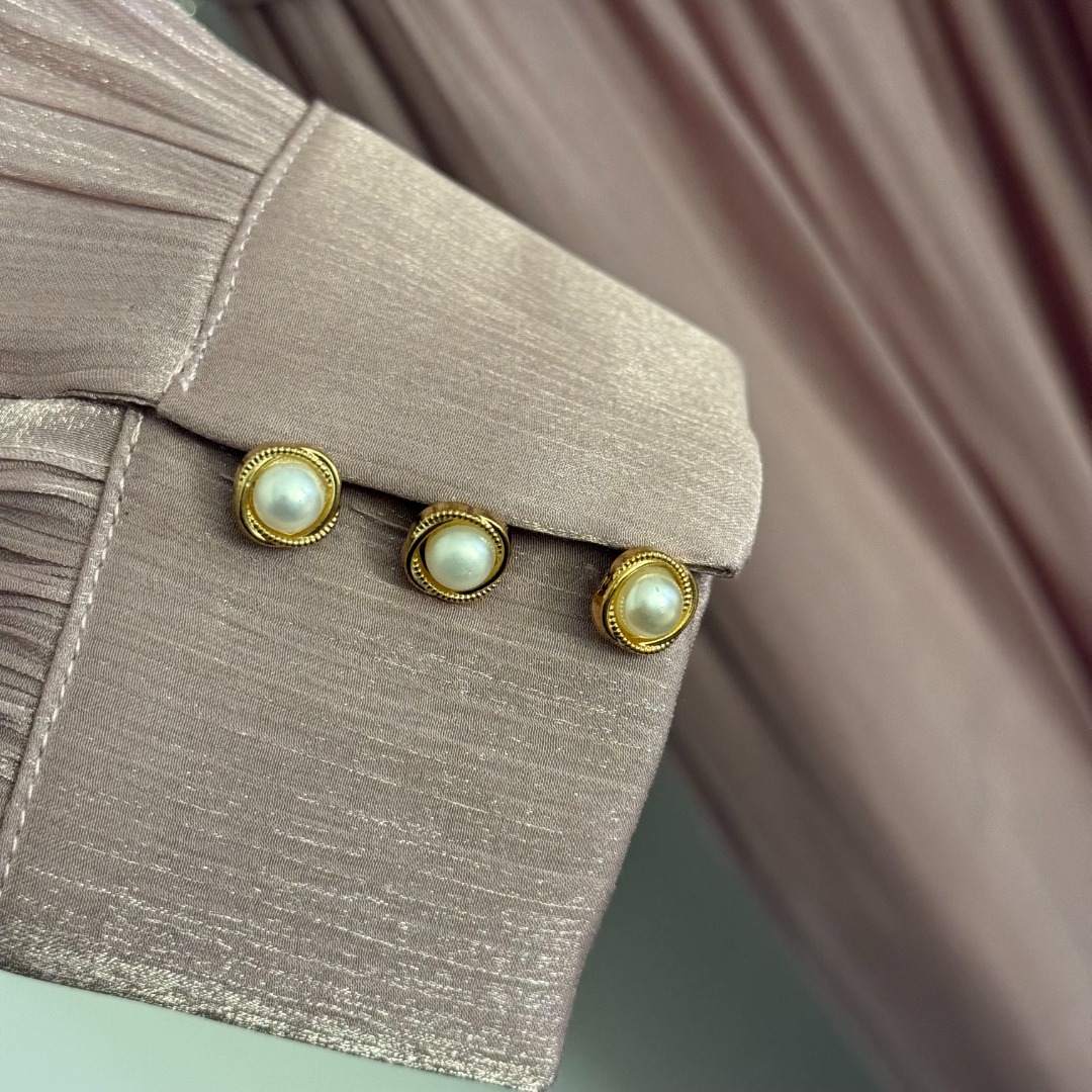 Details: New Pink or Red Studded Waistband Silk-blend Long-sleeved Dress. High-end Custom, Fine Craftsmanship