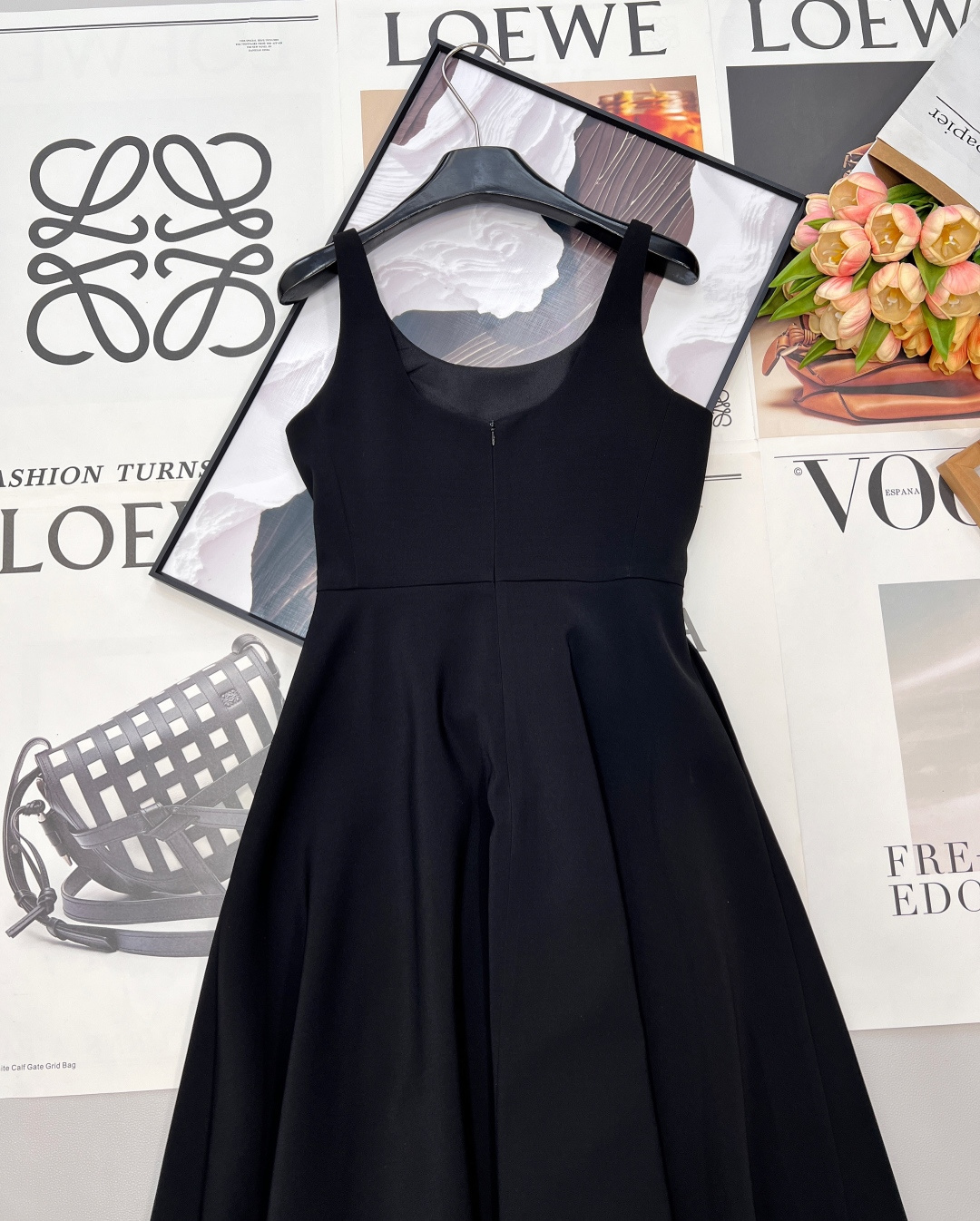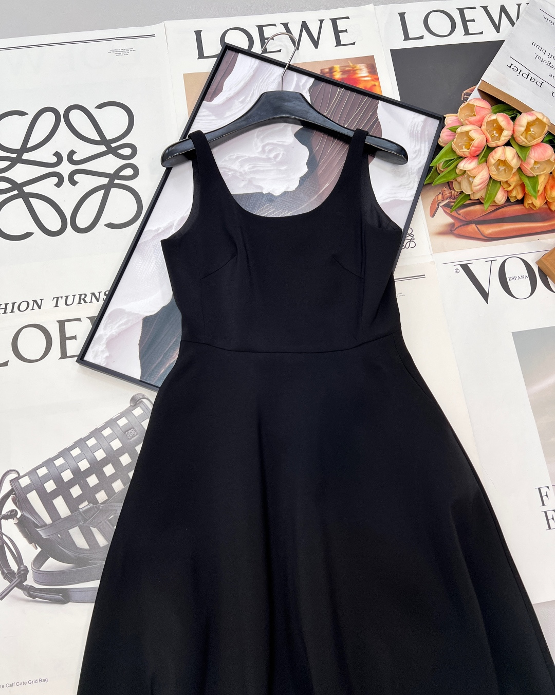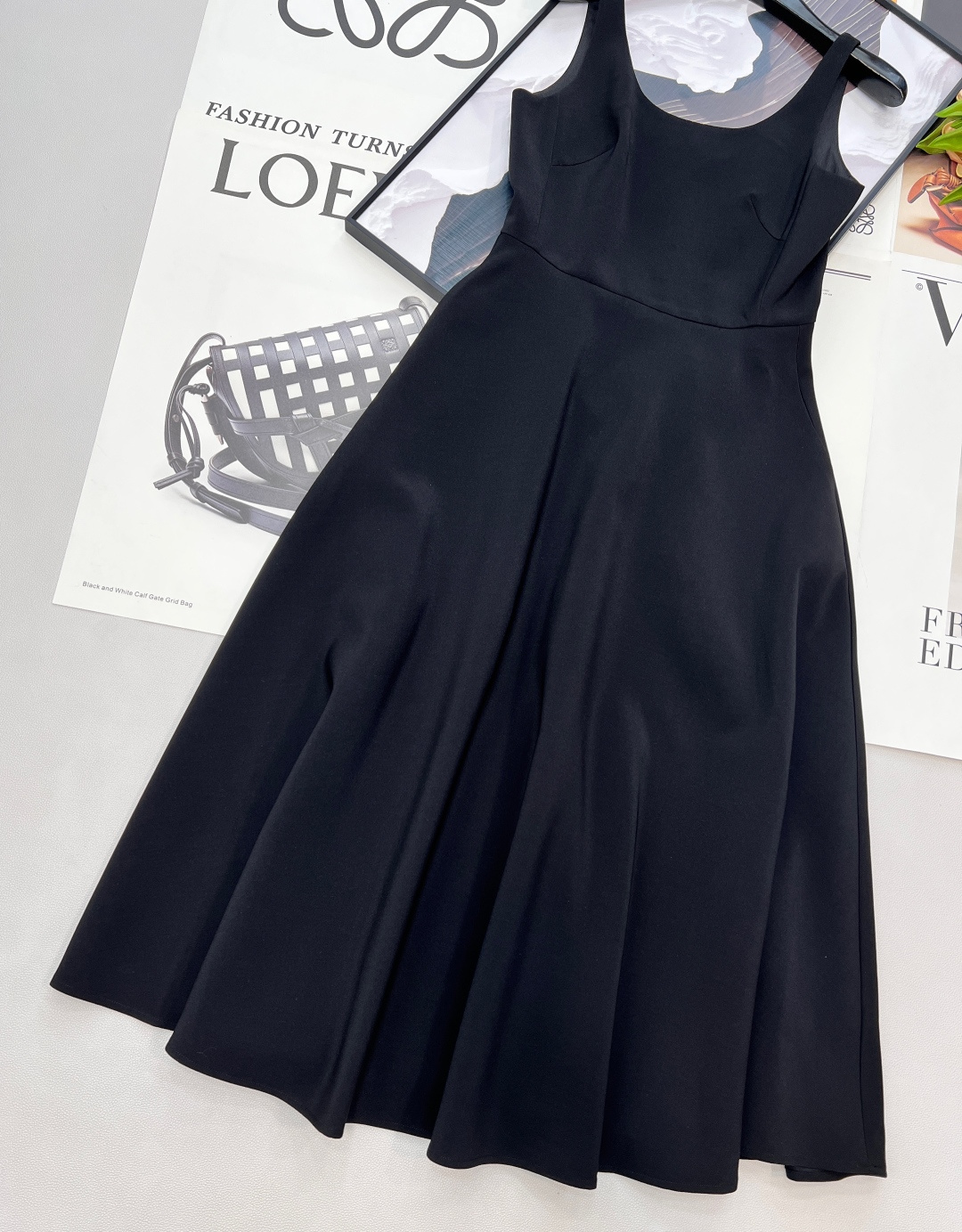 Details: U-neck fitted waistband sleeveless dress with A-line skirt, suitable for various occasions. High-end custom, fine workmanship