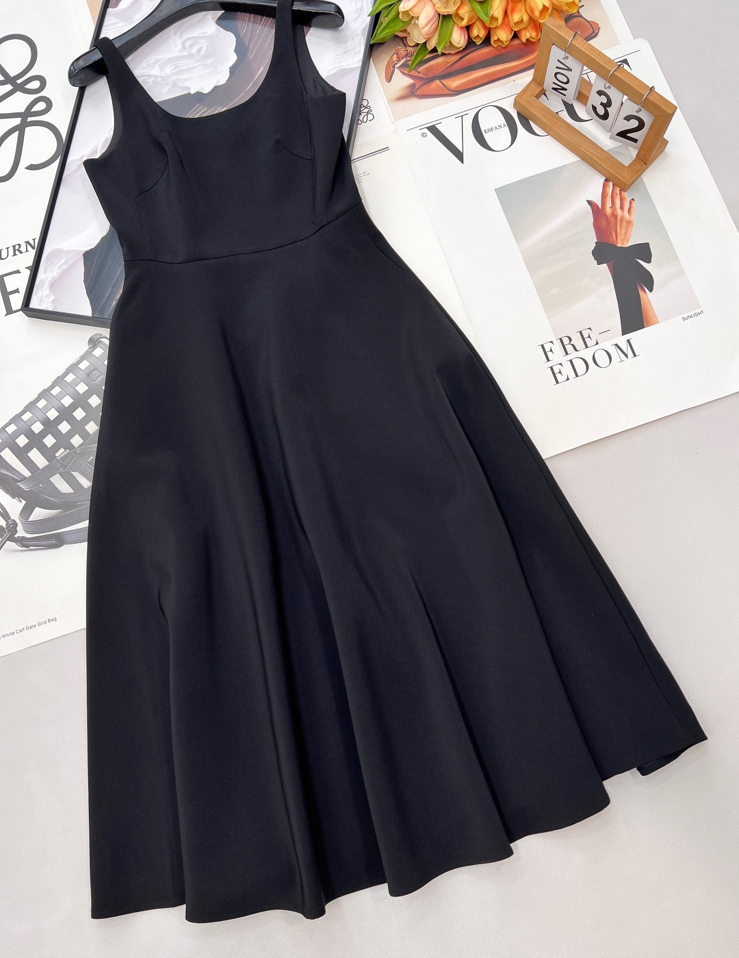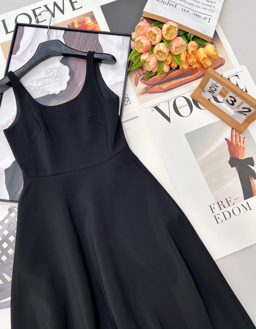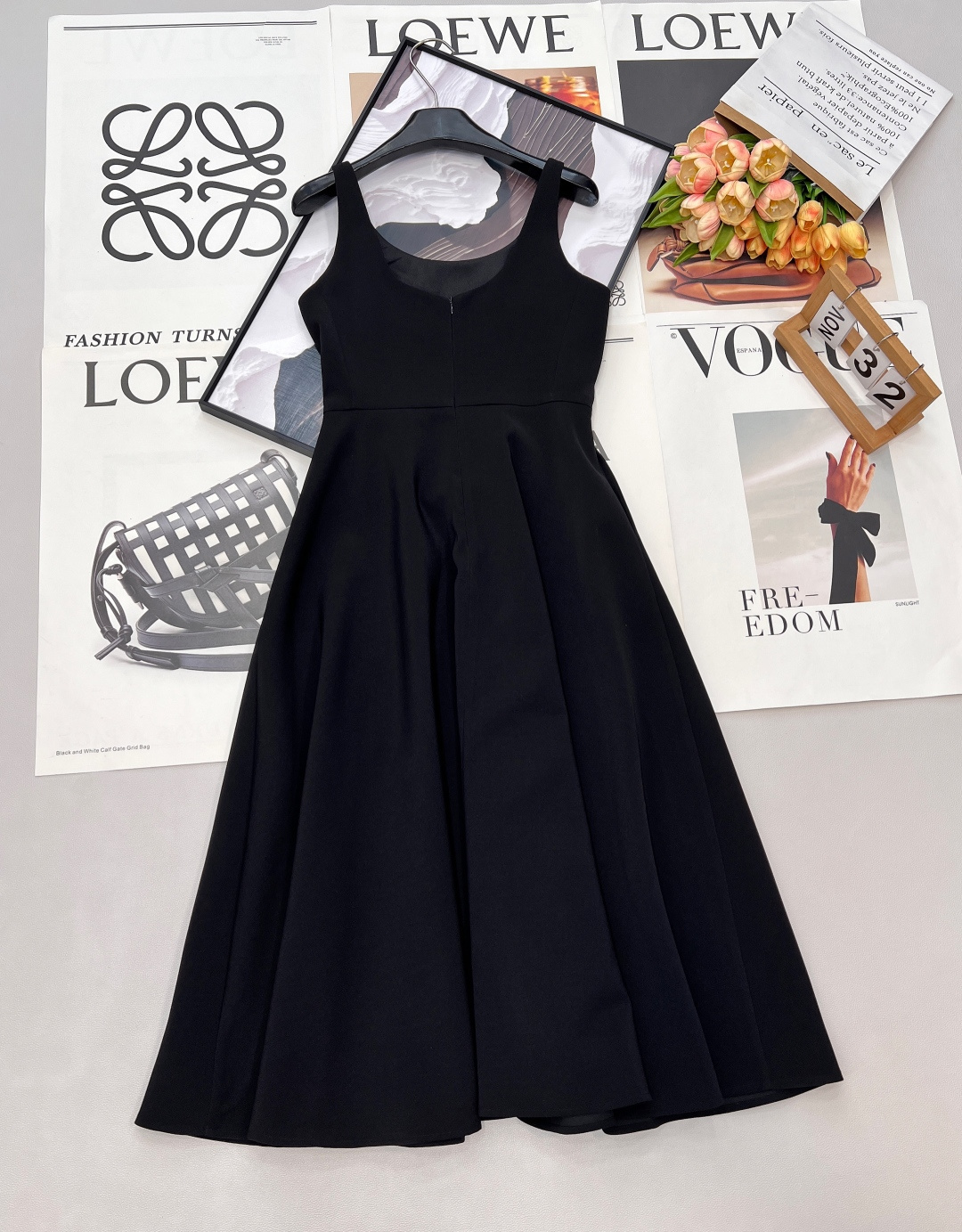 Details: U-neck fitted waistband sleeveless dress with A-line skirt, suitable for various occasions. High-end custom, fine workmanship