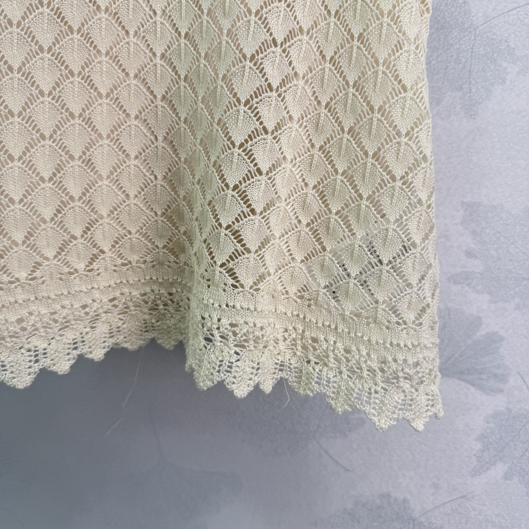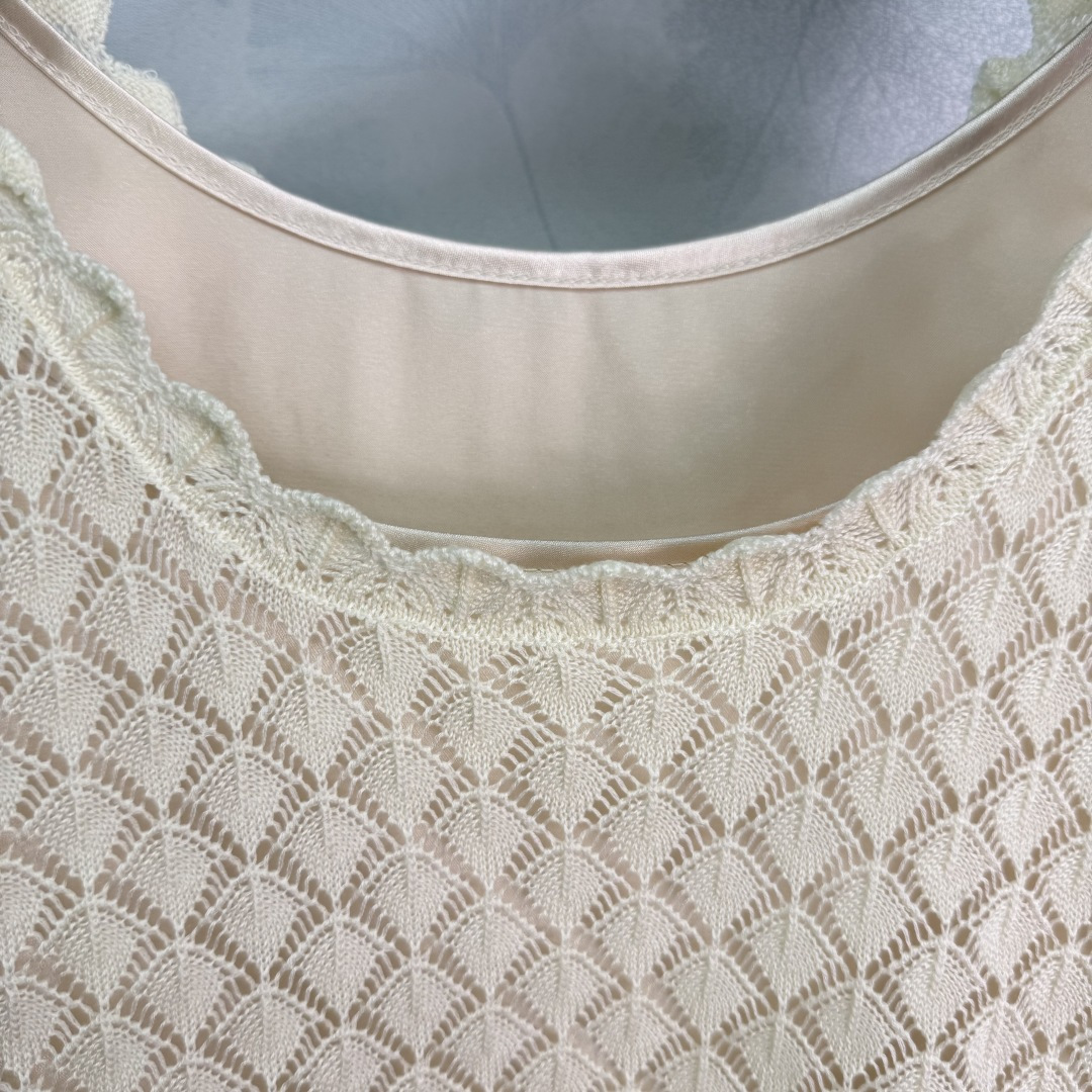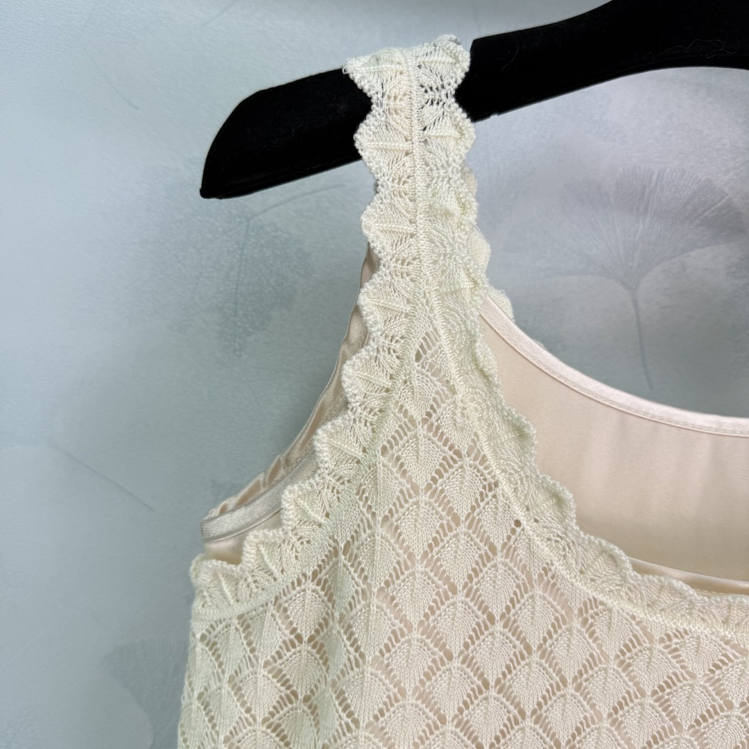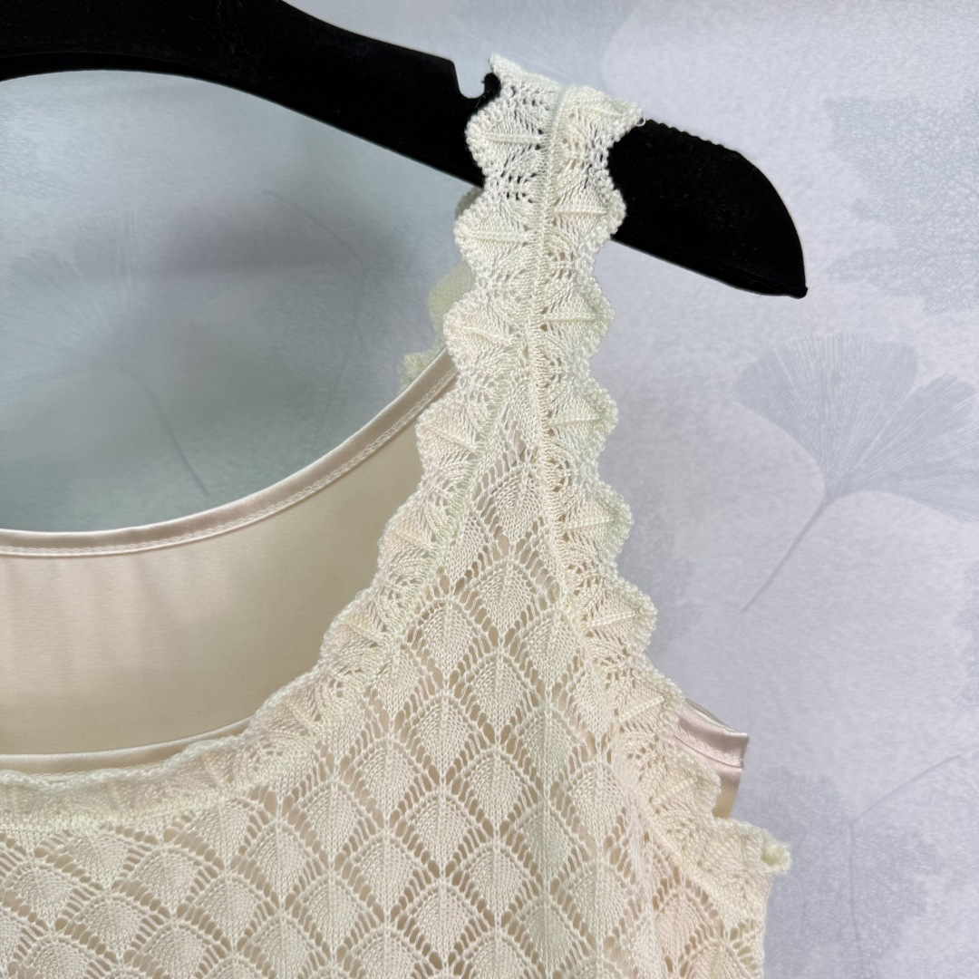 Details: Hollow knitted vest two-piece set, fashionable, suitable for all seasons, with anti-see-through lining. High-end customization, fine workmanship