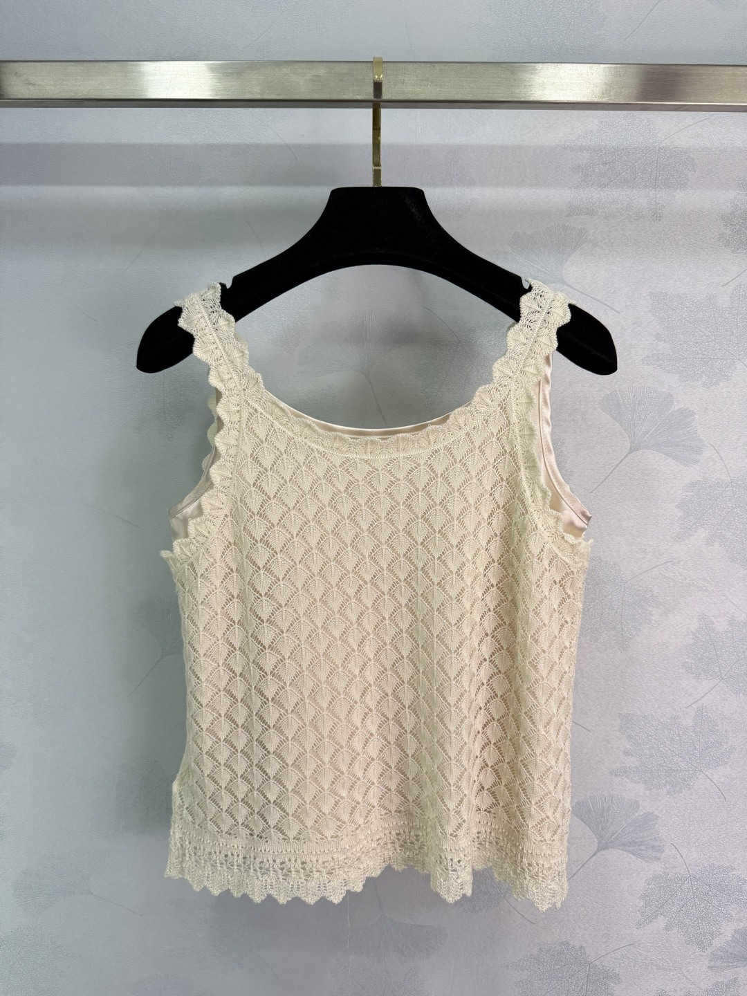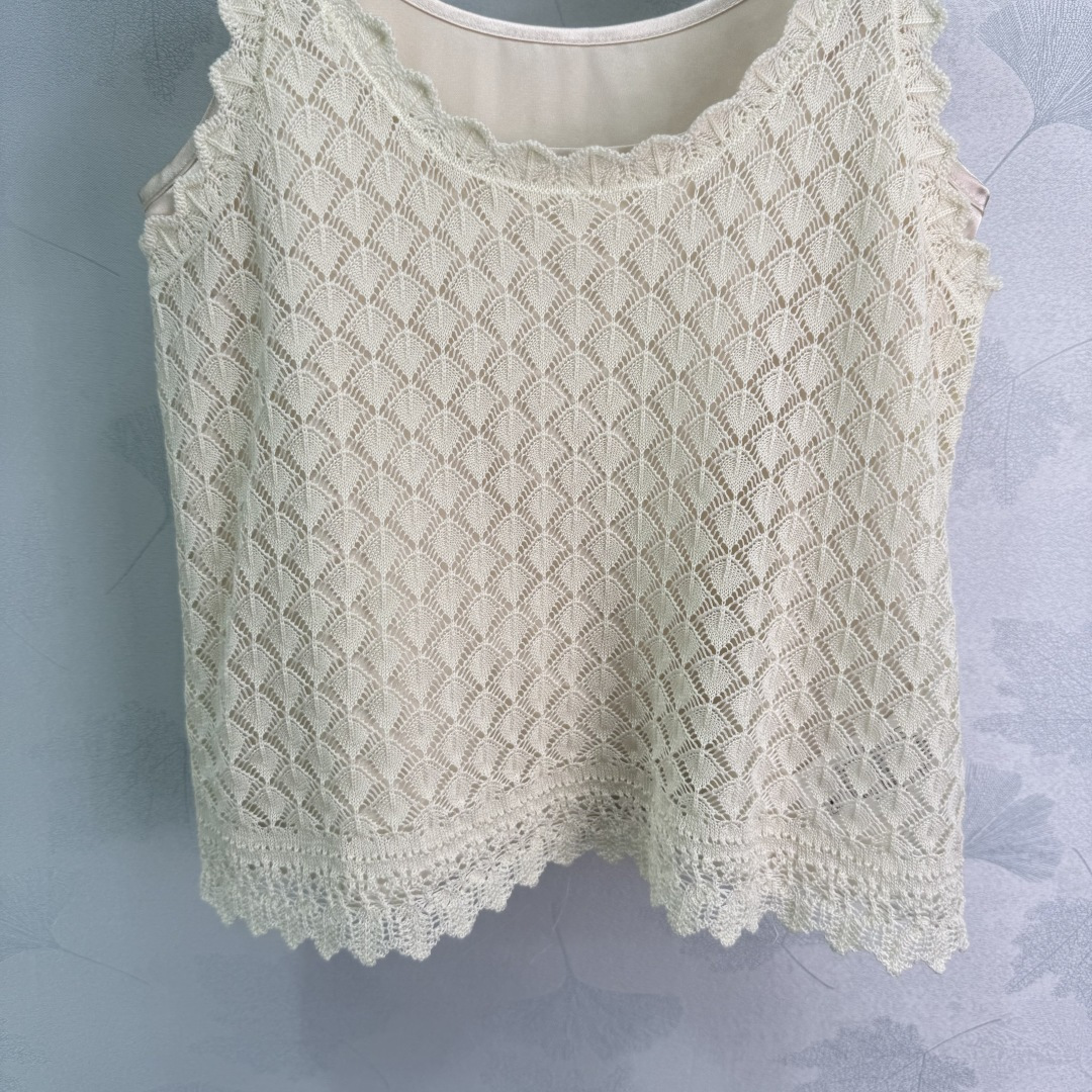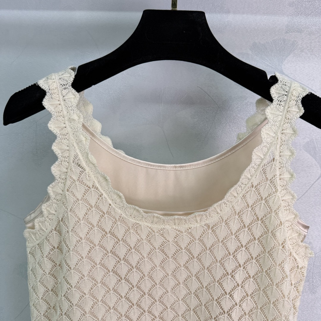 Details: Hollow knitted vest two-piece set, fashionable, suitable for all seasons, with anti-see-through lining. High-end customization, fine workmanship
