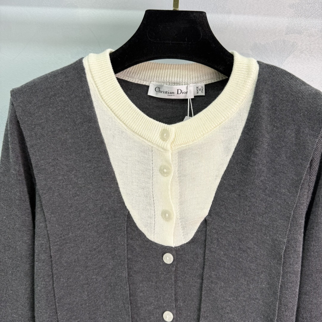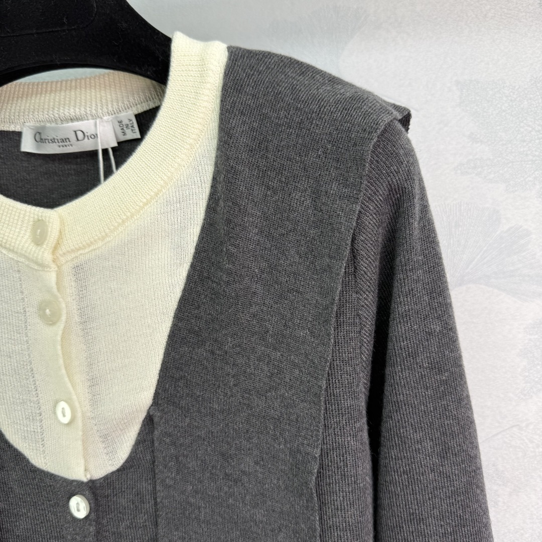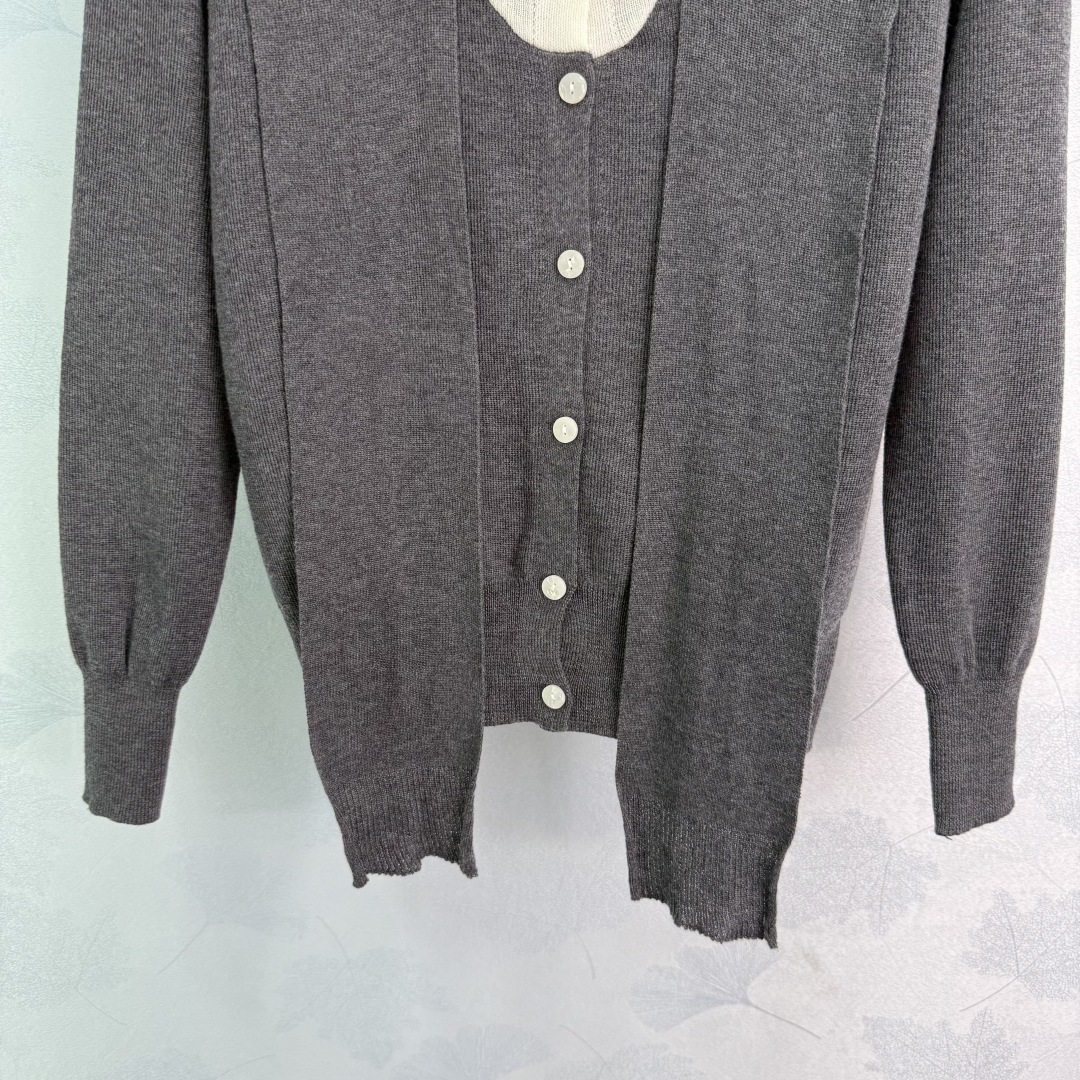 Details: Early autumn s new fake two-piece knit cardigan with white inner layer, ribbon decoration, and versatile style, available in 2 colors.