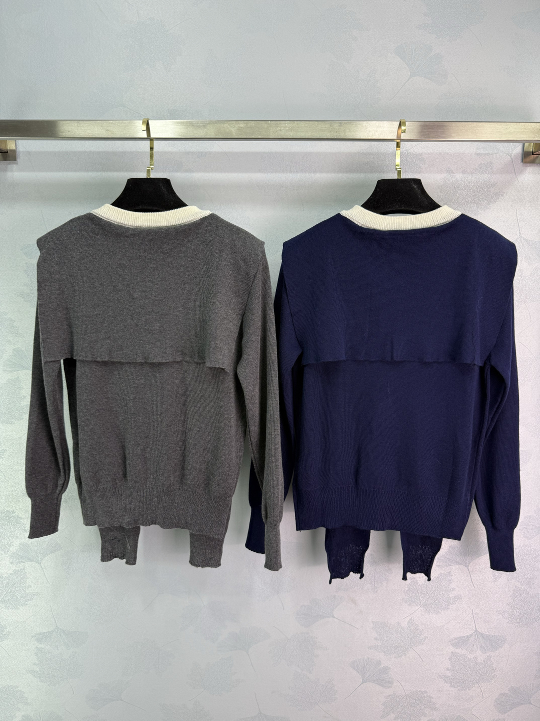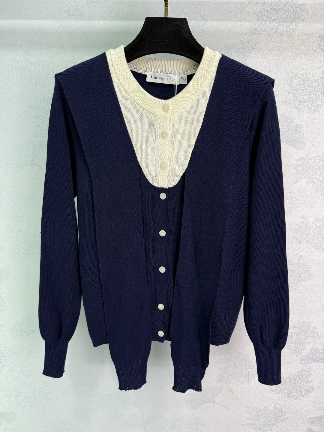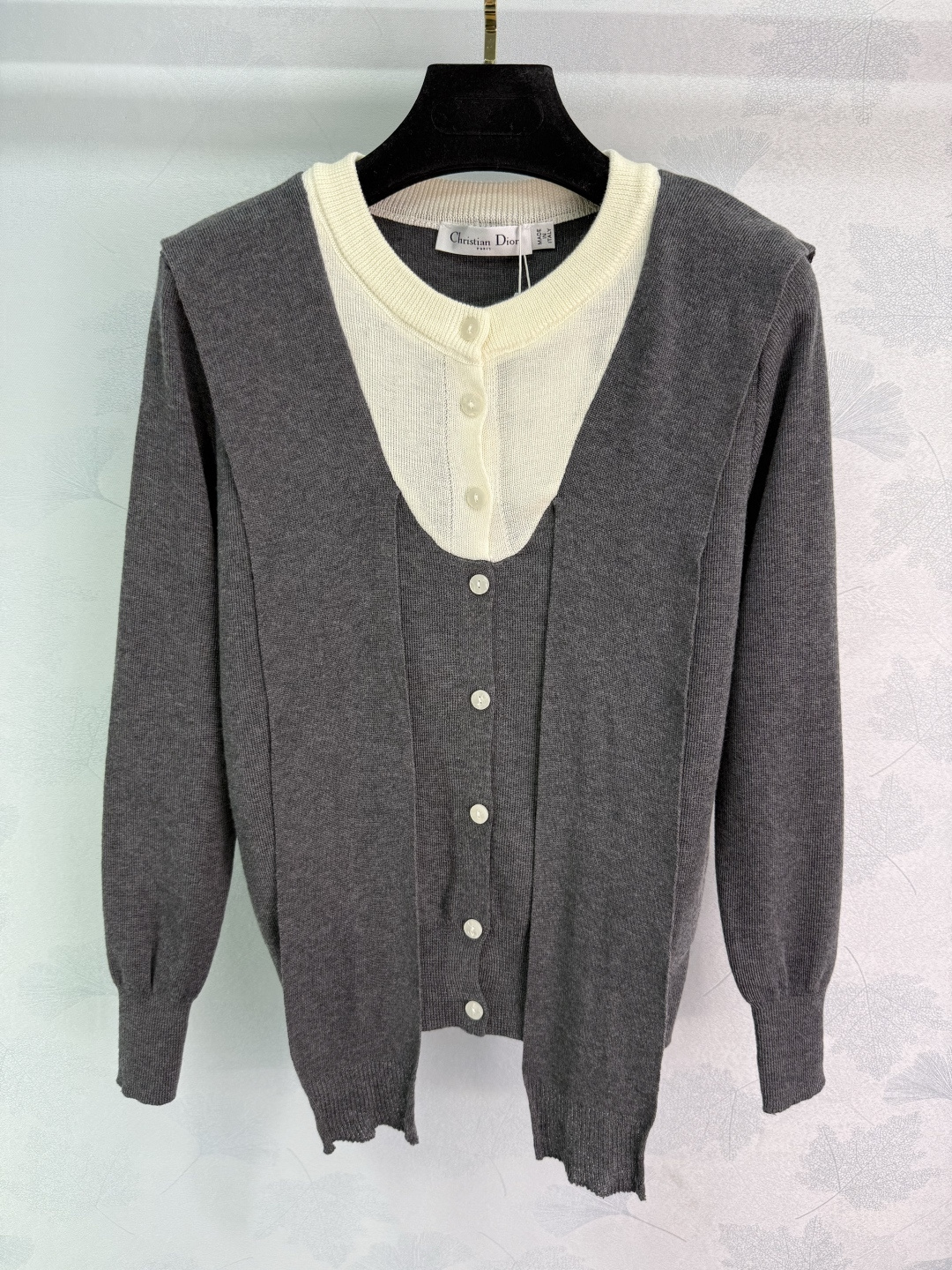 Details: Early autumn s new fake two-piece knit cardigan with white inner layer, ribbon decoration, and versatile style, available in 2 colors.