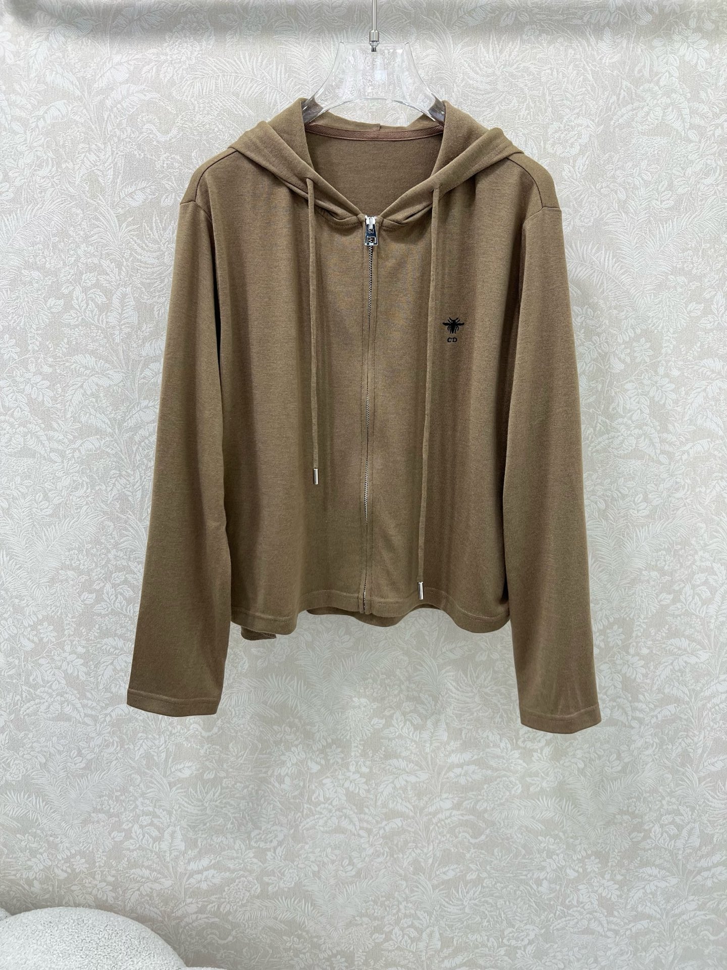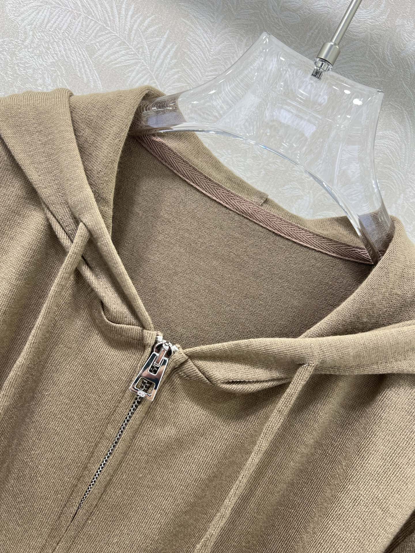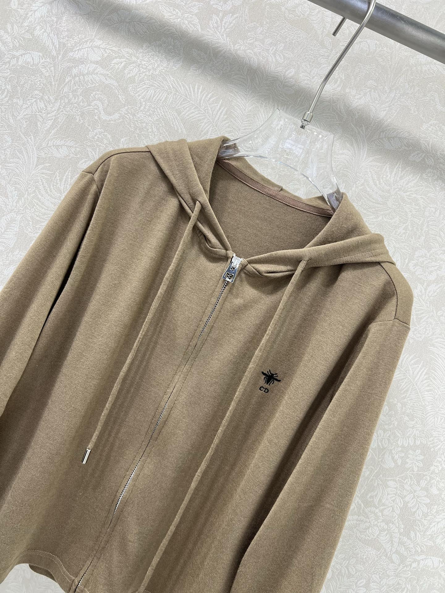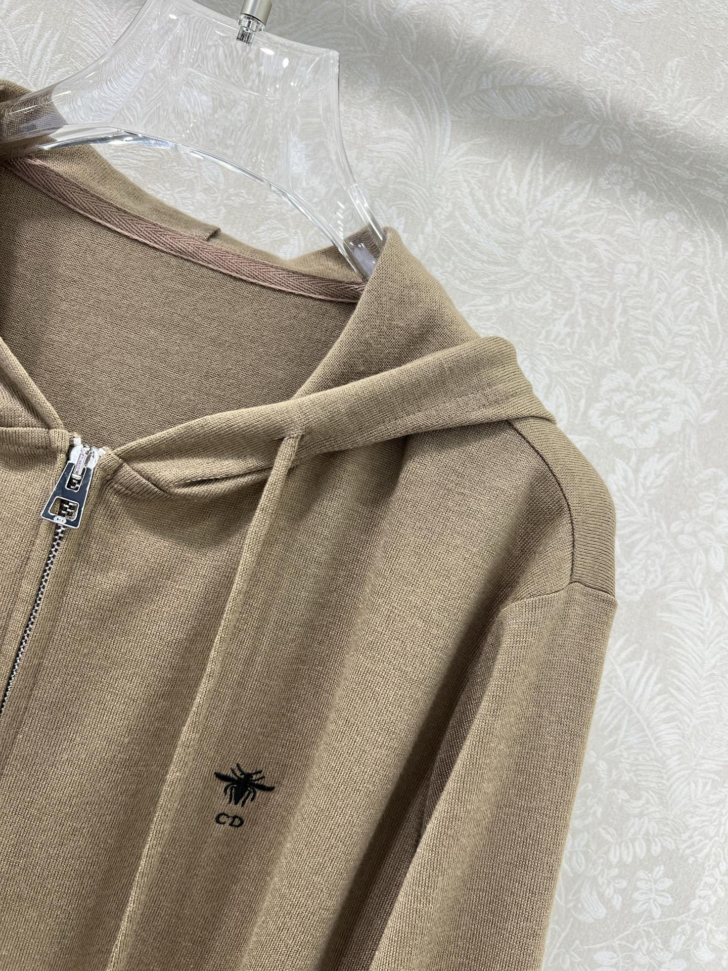 Details: Autumn/Winter New Hooded Knit Jacket with Wool Blend, Soft and Non-Irritating, Bee Embroidery, Relaxed and Versatile, High-end Customization, Exquisite Craftsmanship