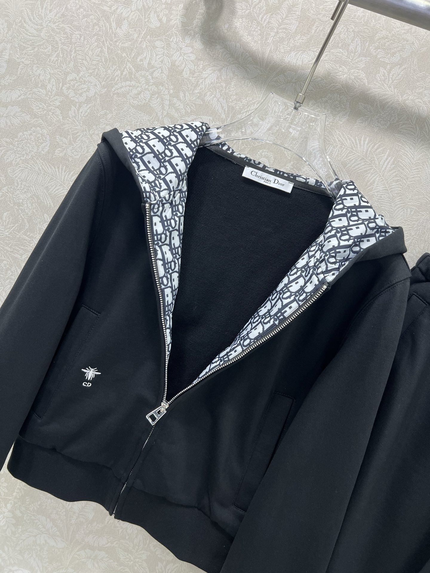 Details: New Sporty Set: Hooded Zip Jacket with Bee Embroidery and Wide-Leg Pants, High-Quality Custom Fabric, Exquisite Craftsmanship