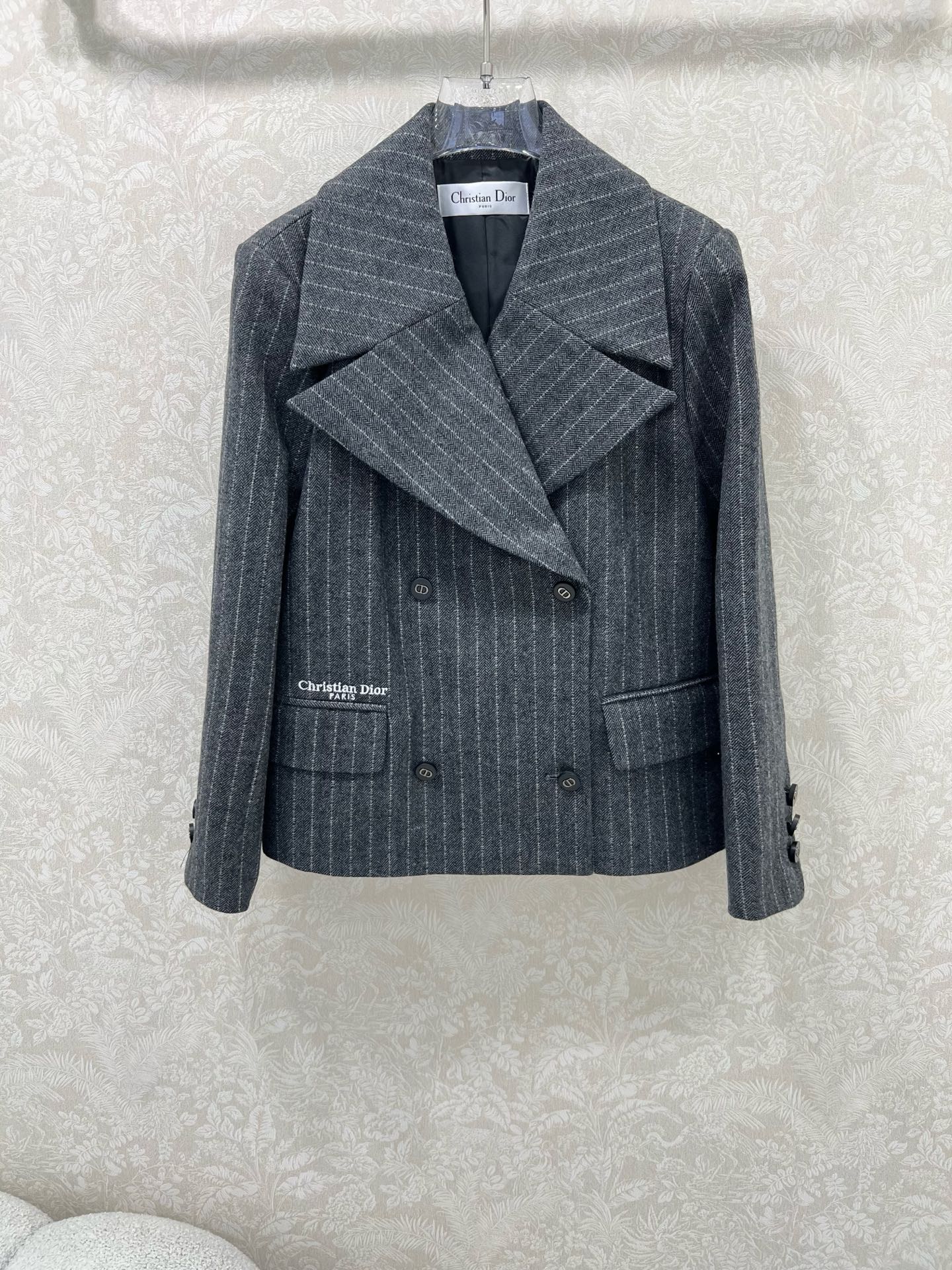 Details: New double-breasted woolen coat with letter logo embroidery, classic and versatile, high-end customization