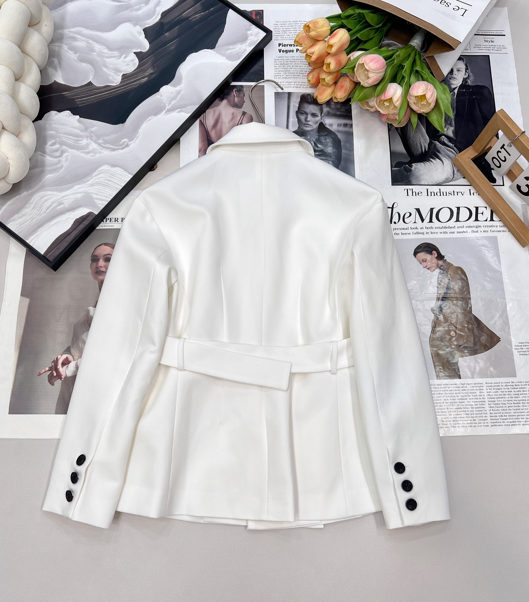 Details: Timeless belted lapel blazer, well-tailored, suitable for daily and work.