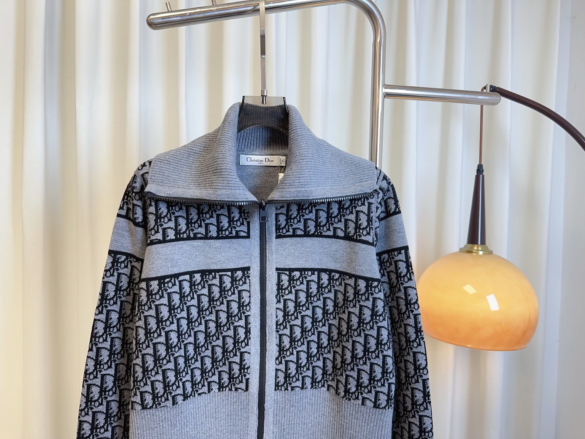 Details: New double - sided jacquard logo wool cardigan, custom thick wool, comfortable, reversible, stylish