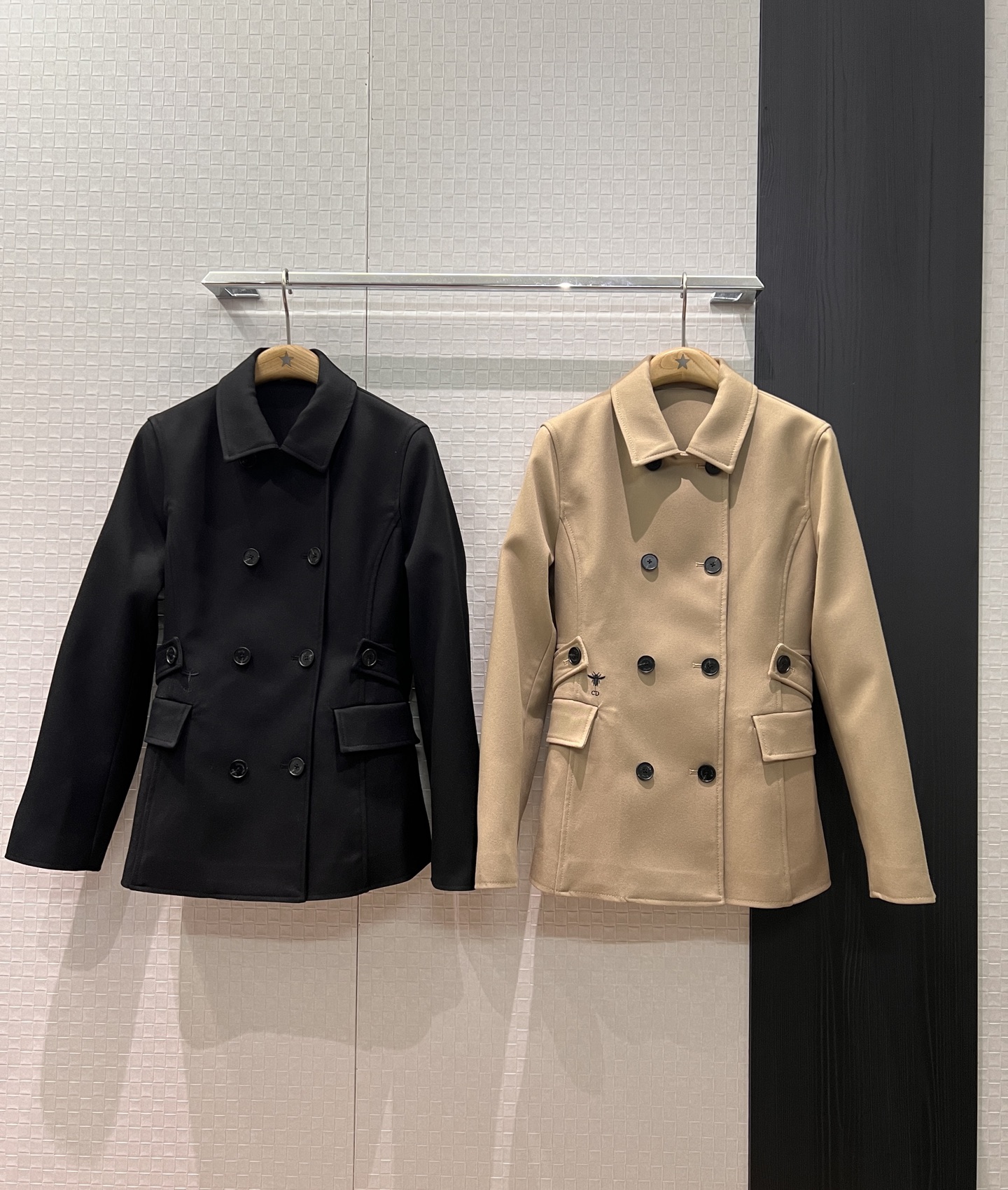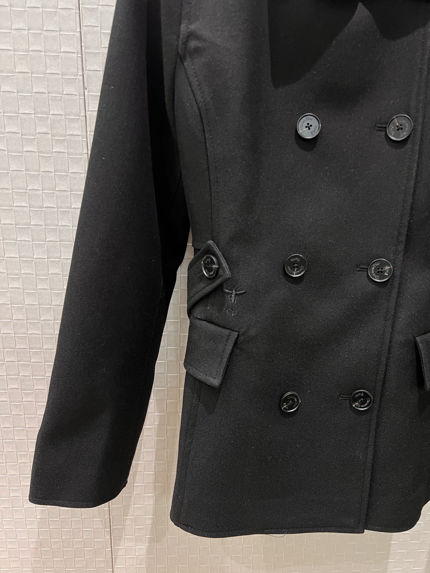 Details: Double-breasted tailored blazer with embroidered bee, slimming and stylish, high-quality customization.