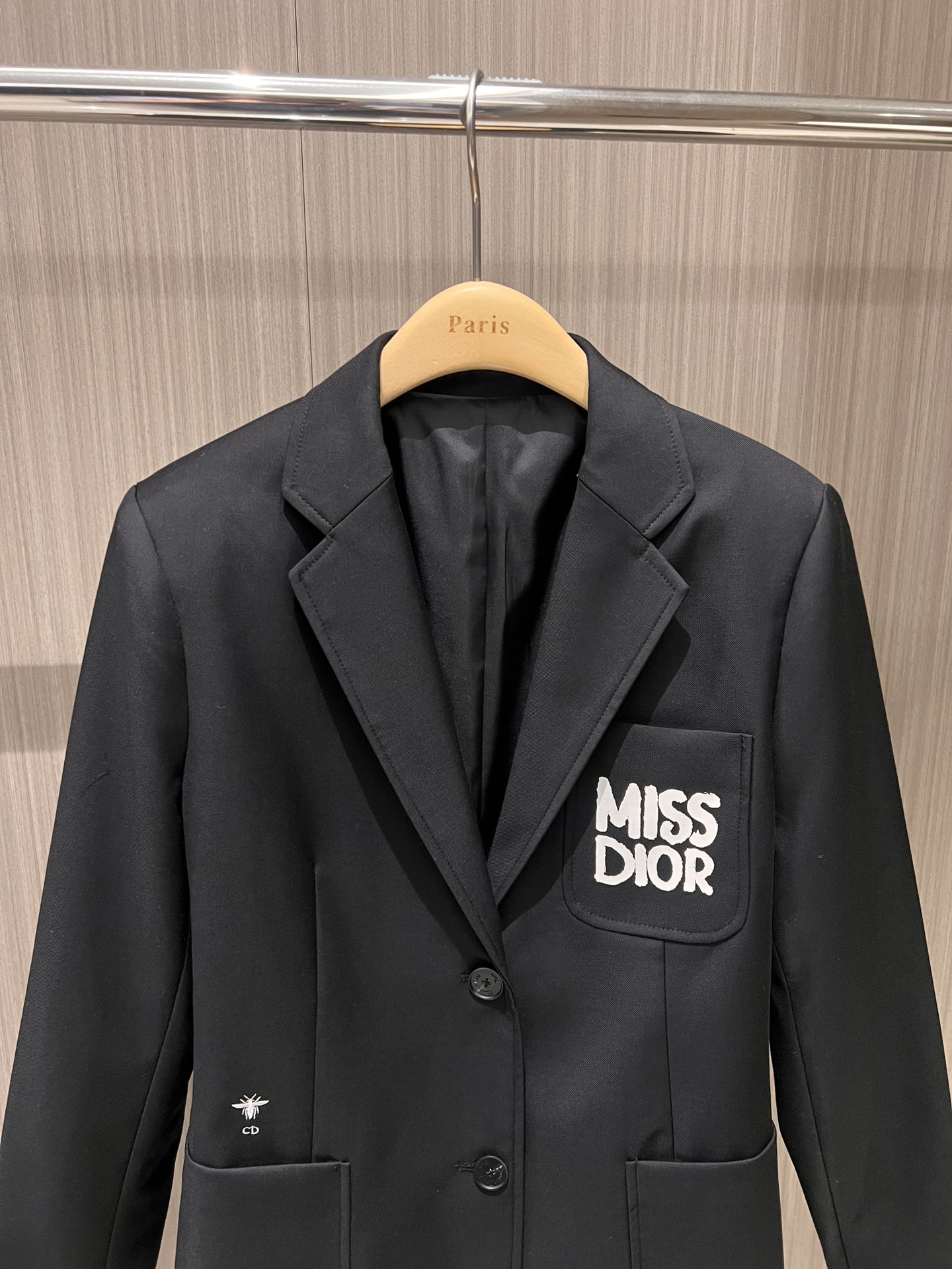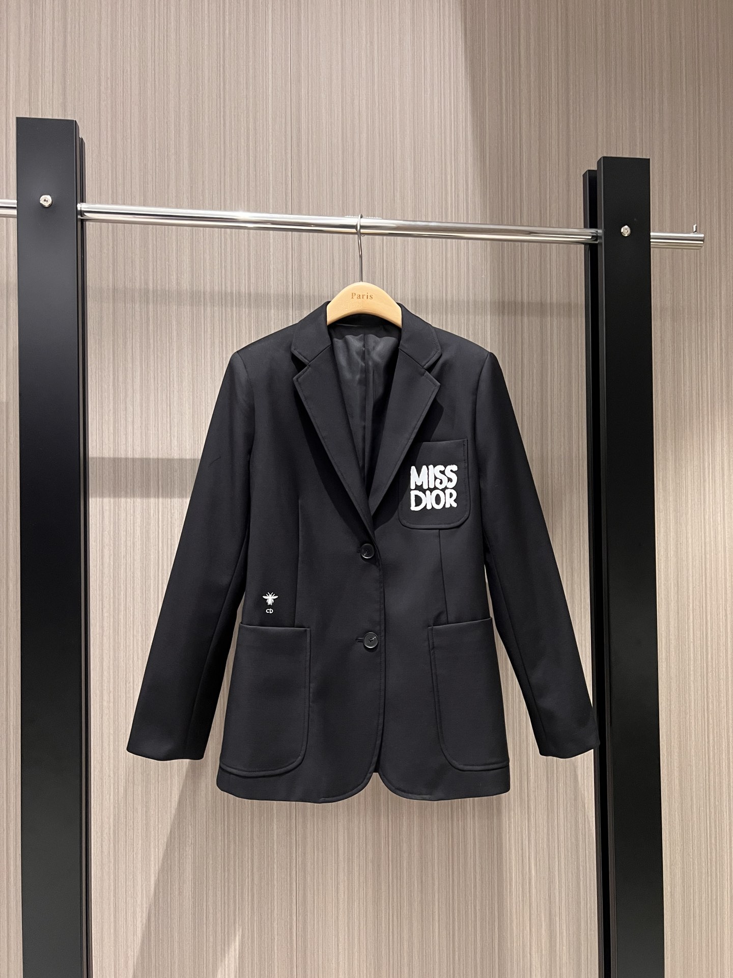 Details: New miss series letter logo pocket suit jacket with bee embroidery, loose and casual