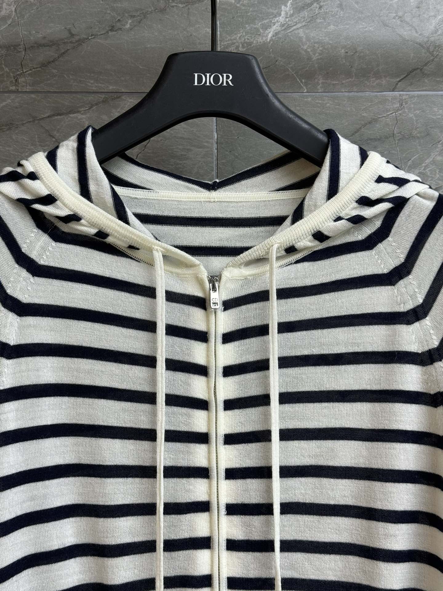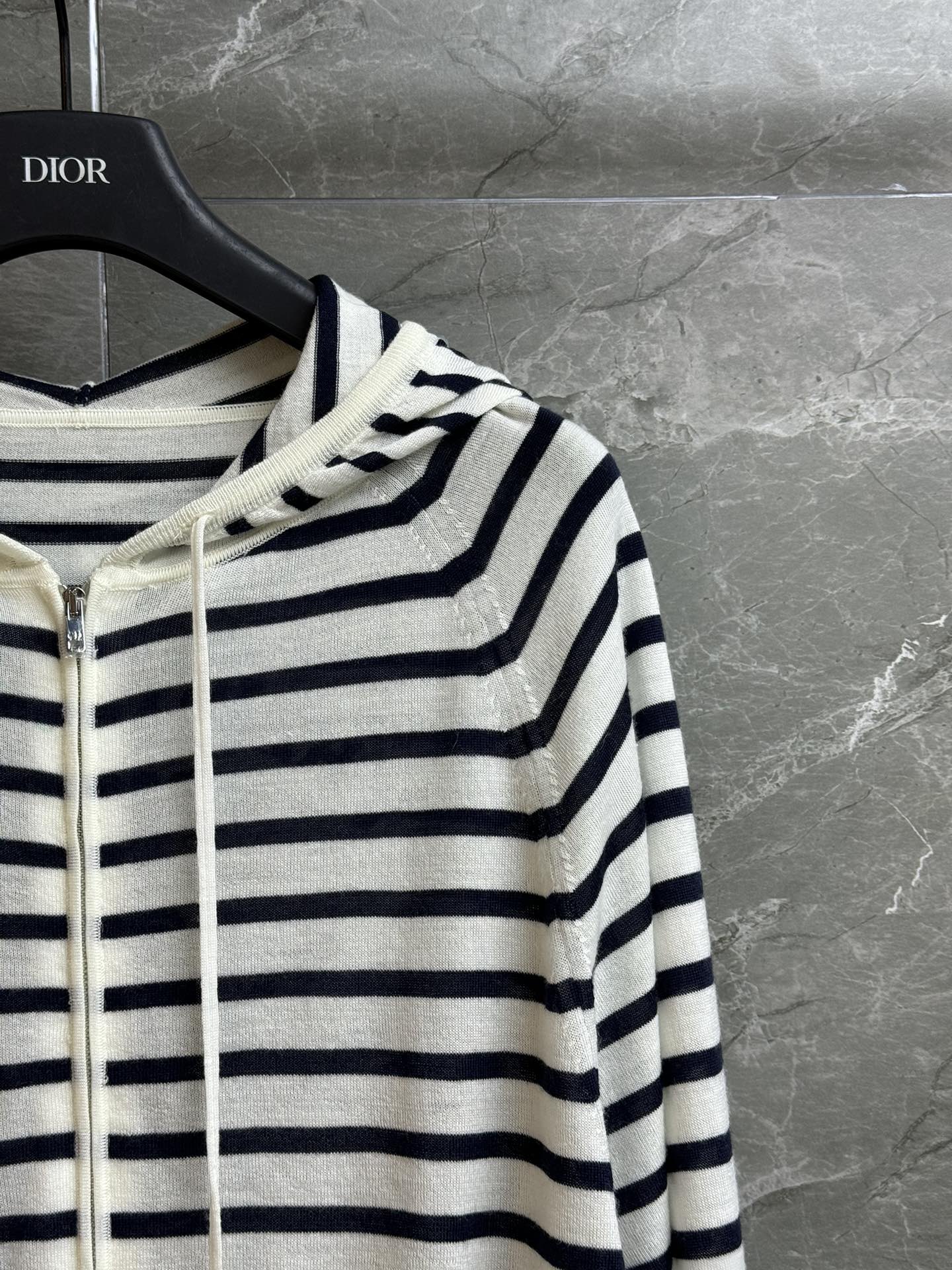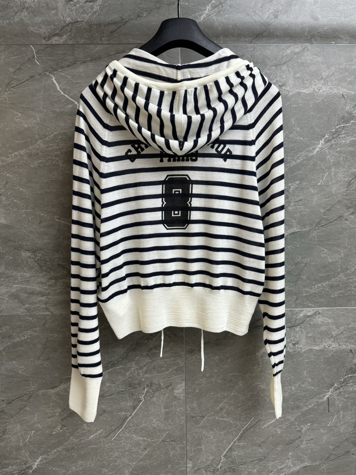 Details: New spring arrivals! Striped zipper cardigan with back 8 - pattern, cashmere - silk blend, loose fit, high - end customization