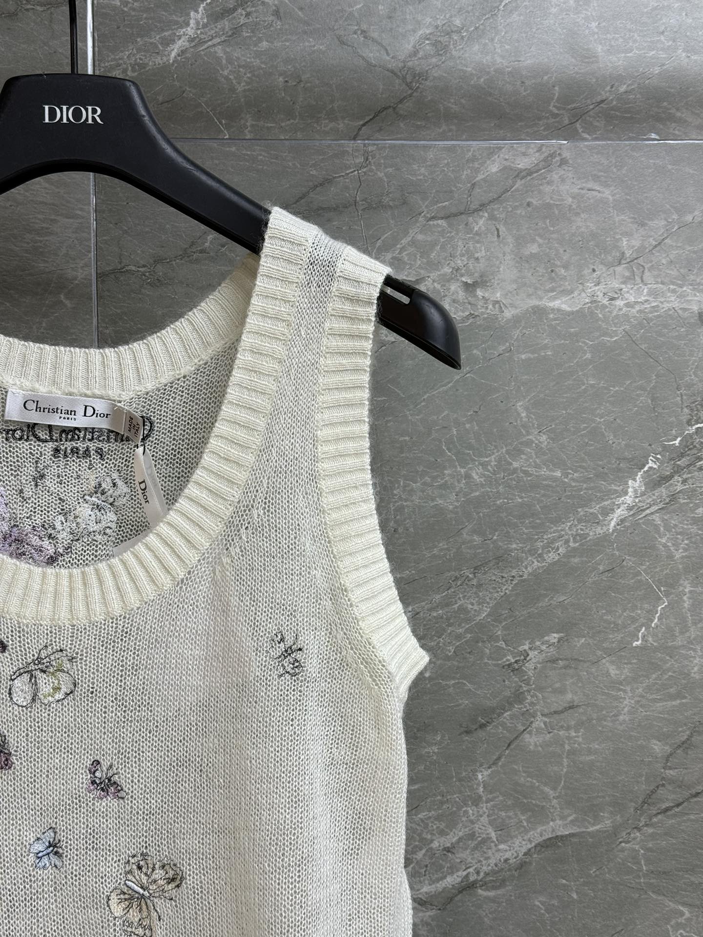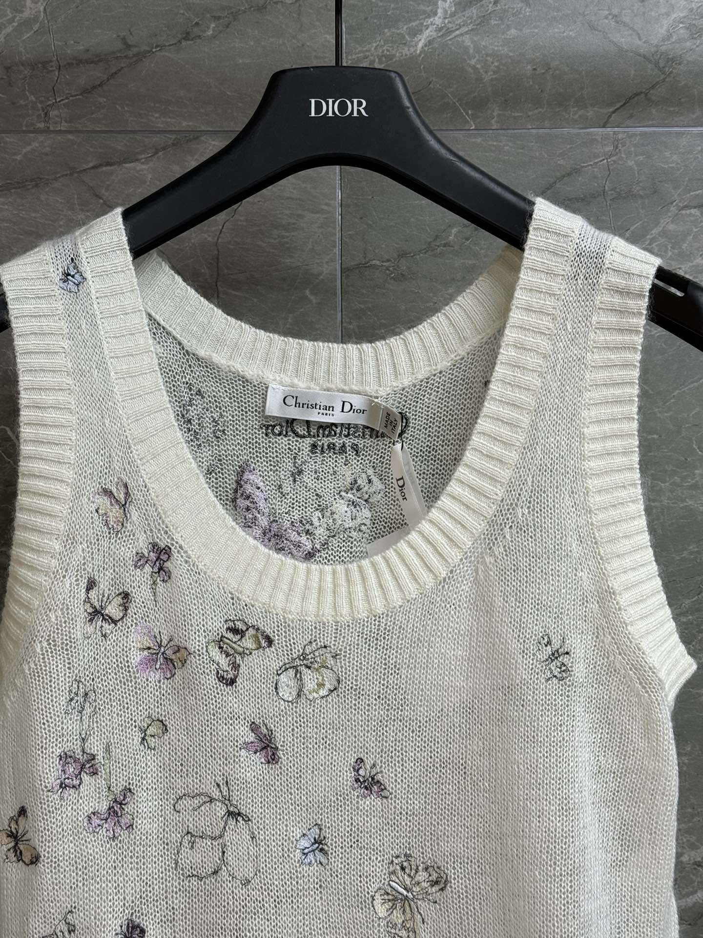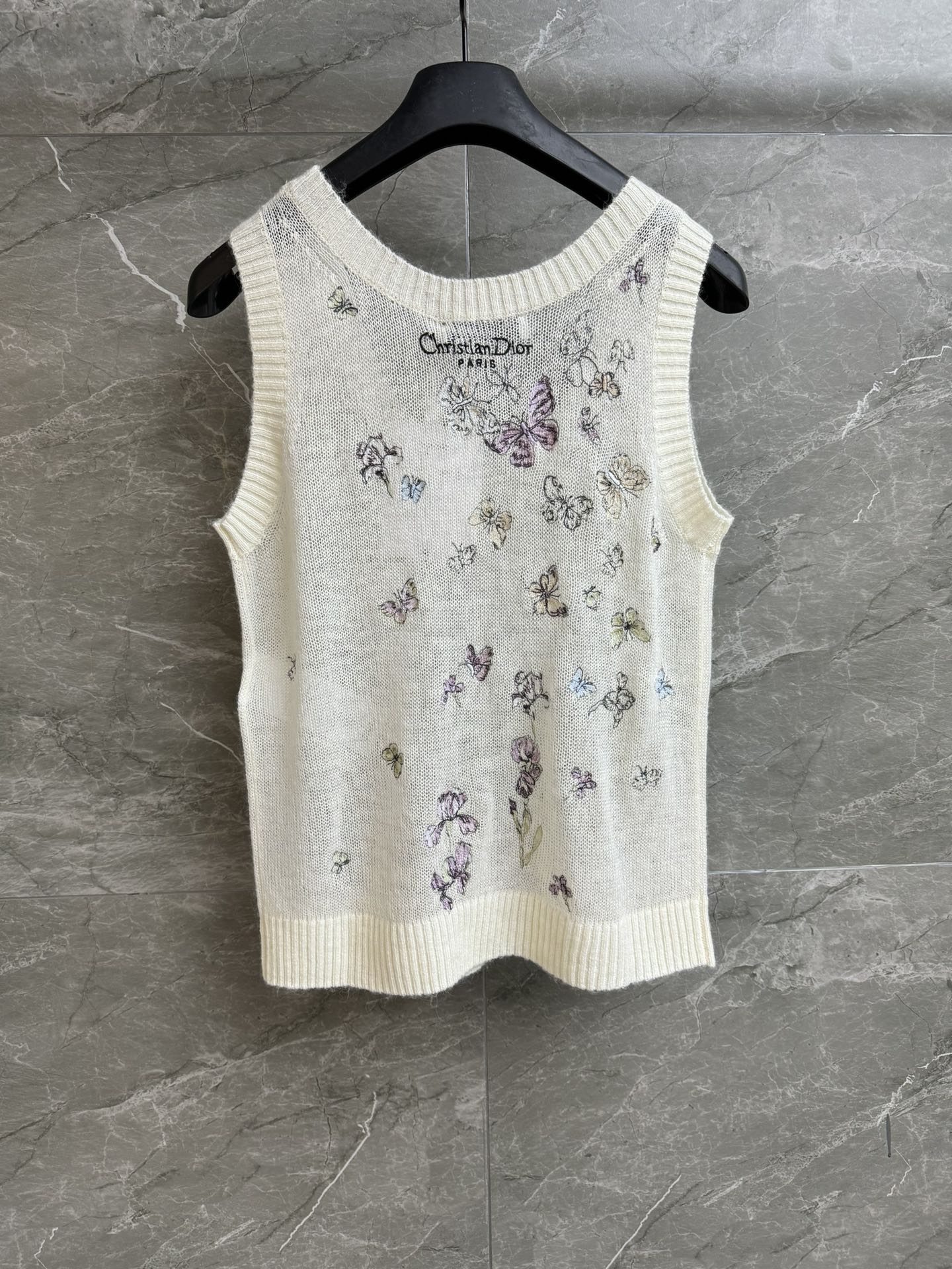 Details: Spring - summer butterfly - embroidered vest with U - neck, made of light cashmere blend, slimming and elegant. High - end customization, fine workmanship