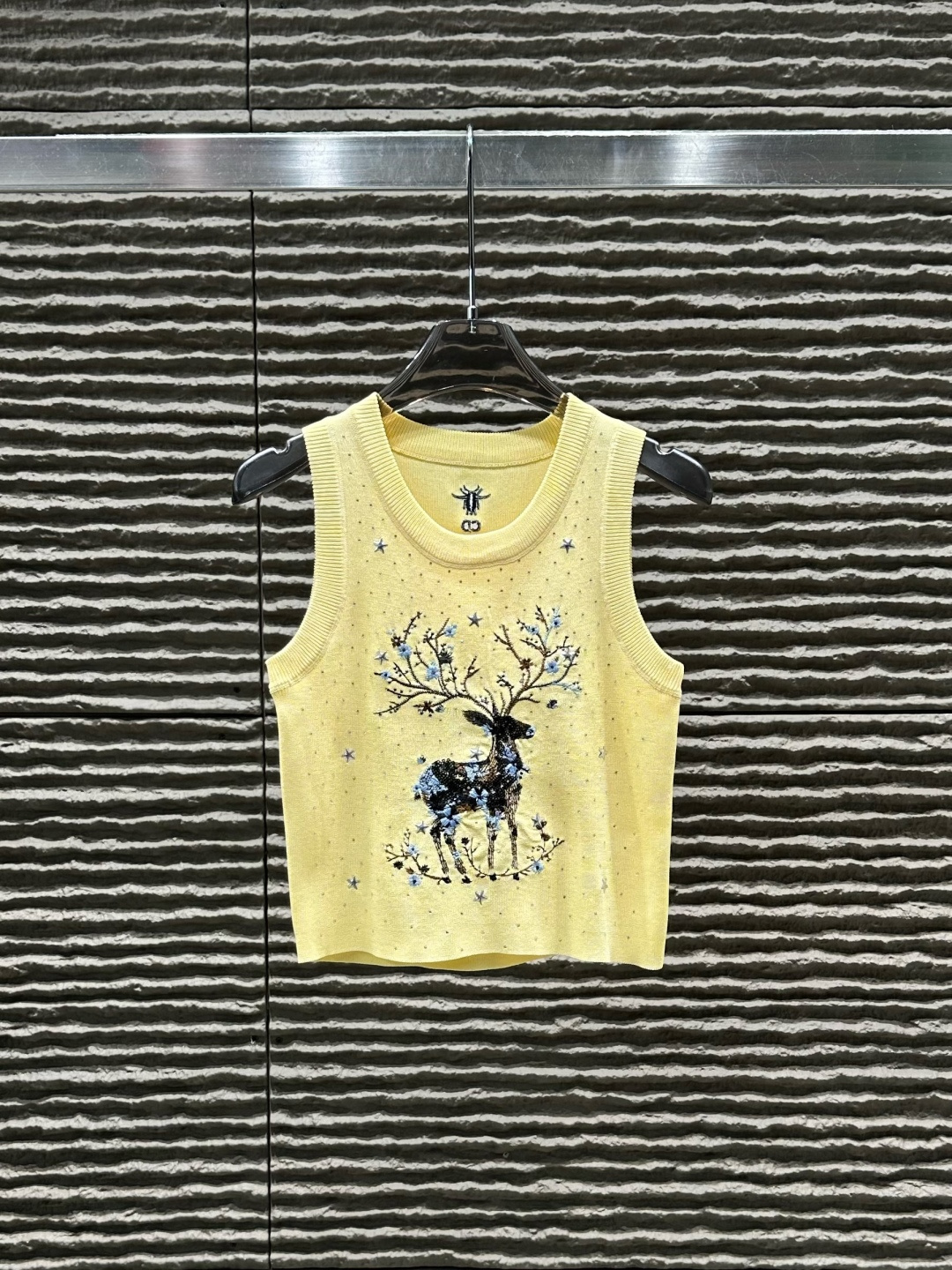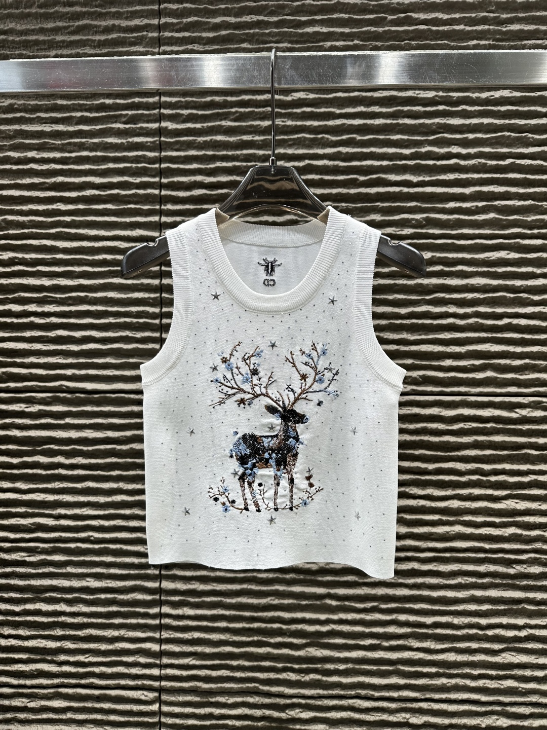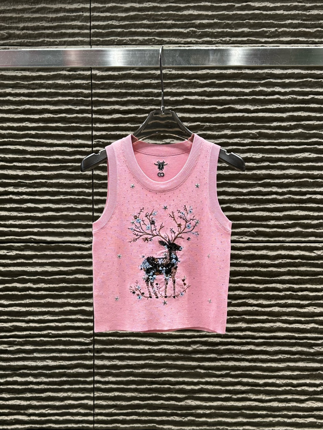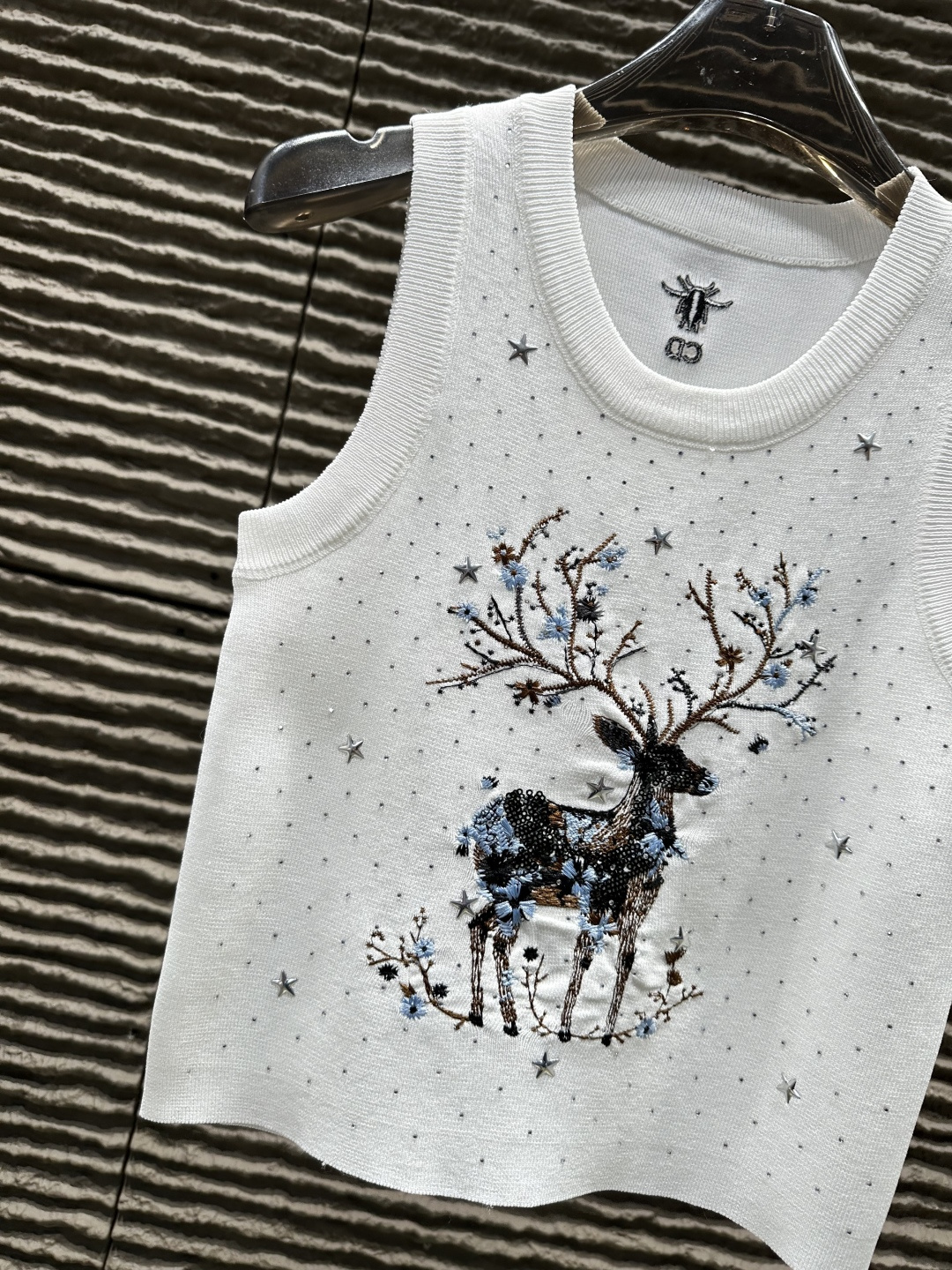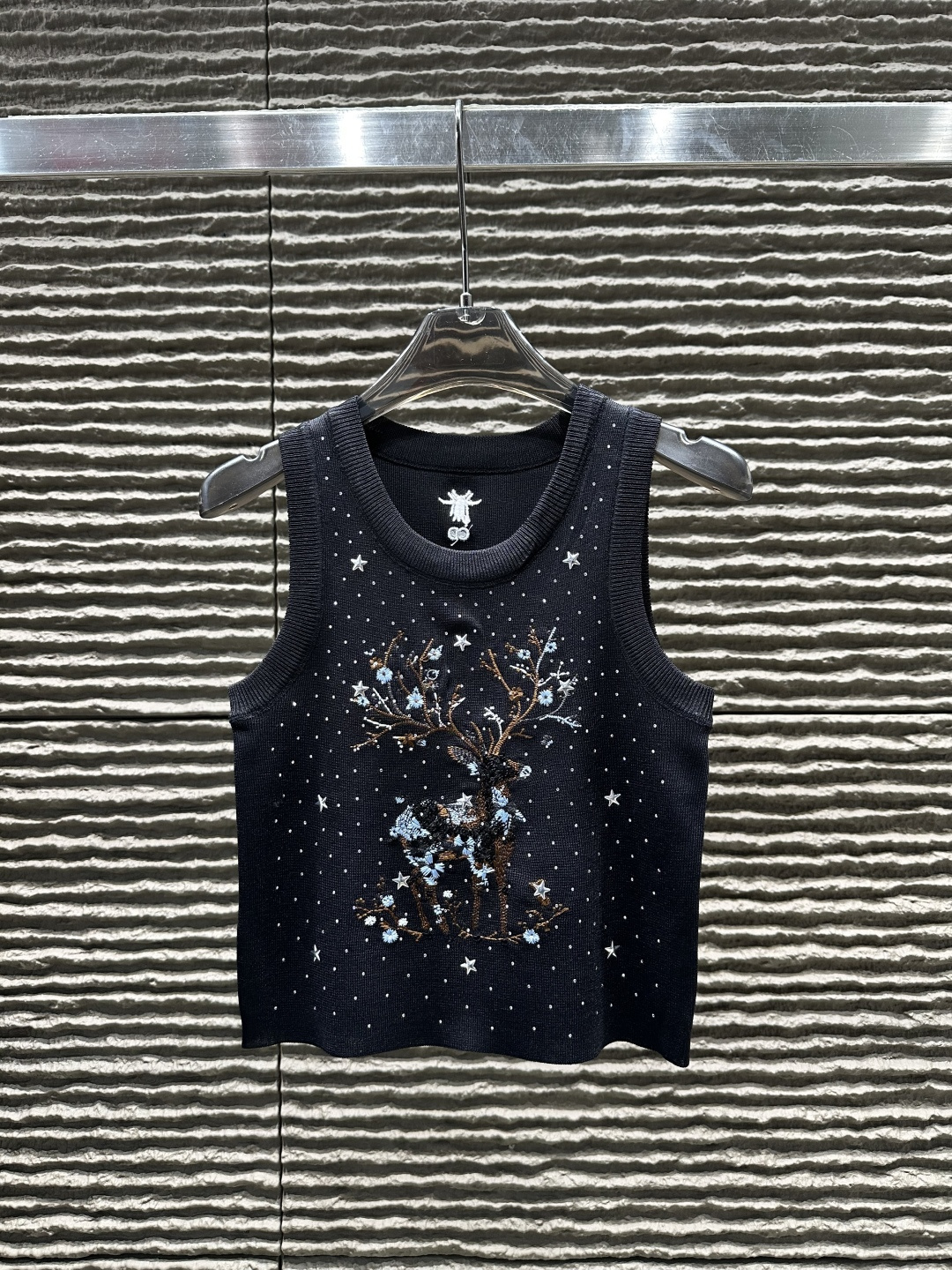 Details: Heavy - duty deer embroidered and rhinestone - studded knitted vest, High - end customization, Fine workmanship