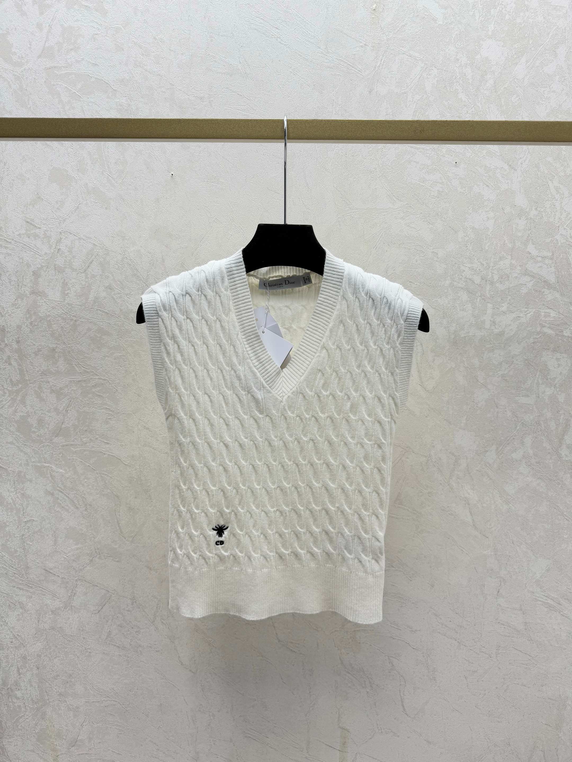Details: Spring new knitted vest with V - collar, available in white, khaki and blue, sizes ranging from 36 to 40. High - end custom - made with fine workmanship