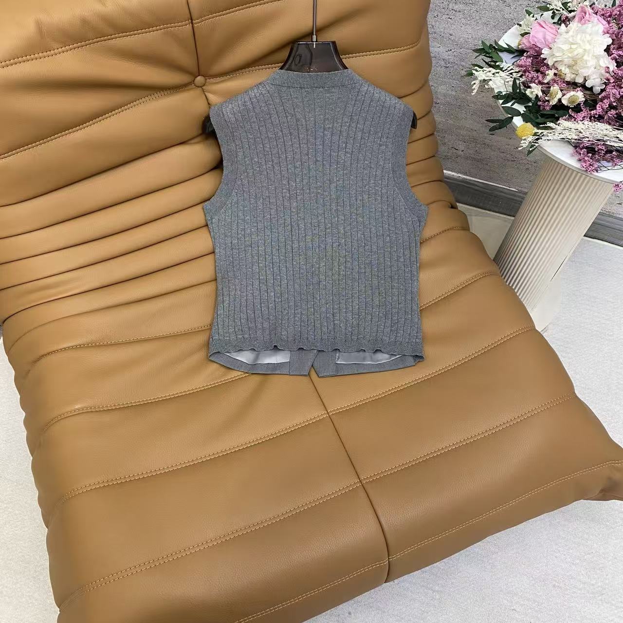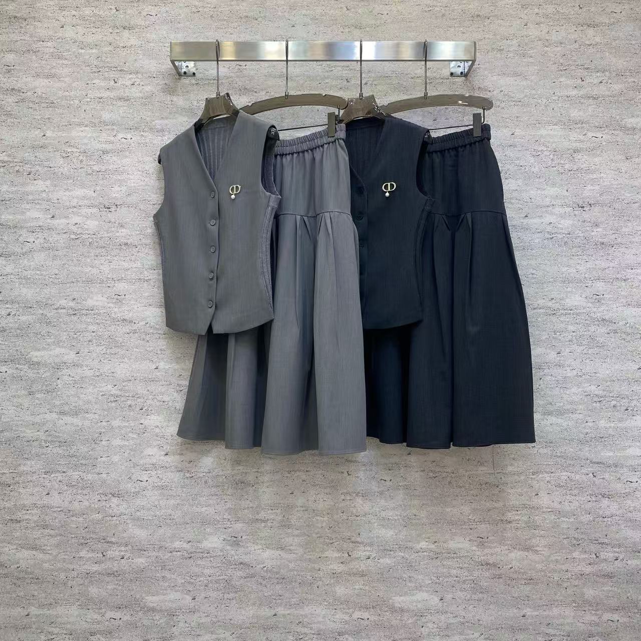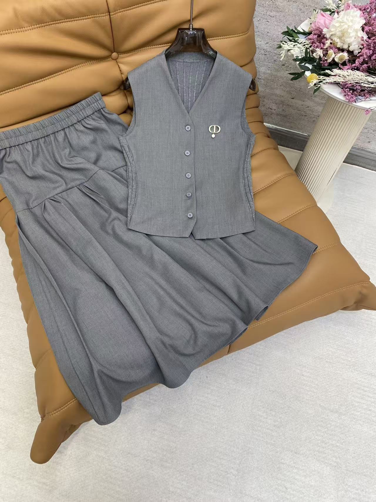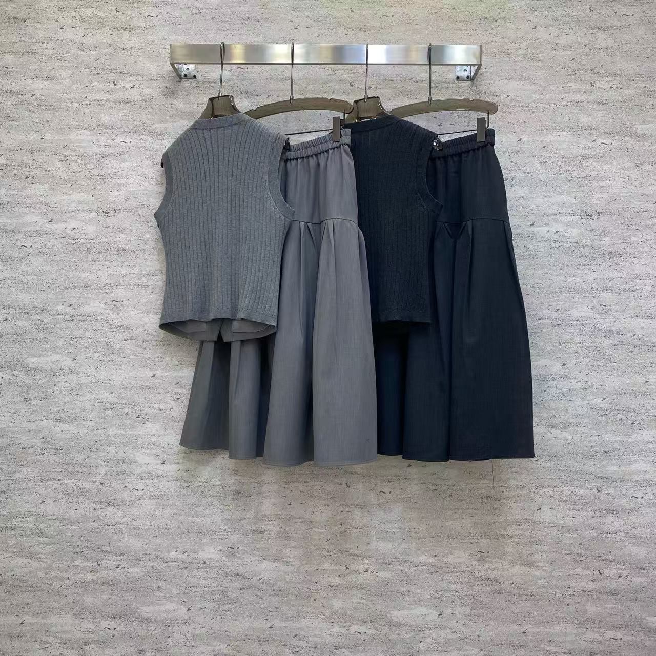 Details: Chic TR suit with vest and high-waisted skirt, gray for office wear, black for an elegant look, with metal accents, tailored fit.