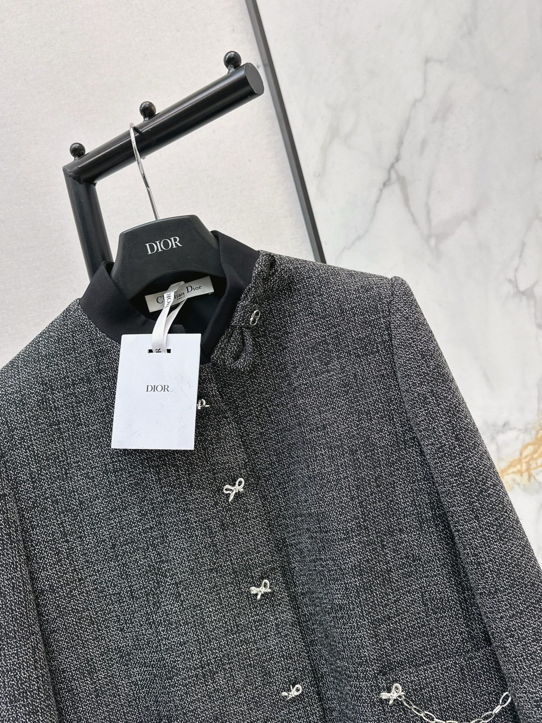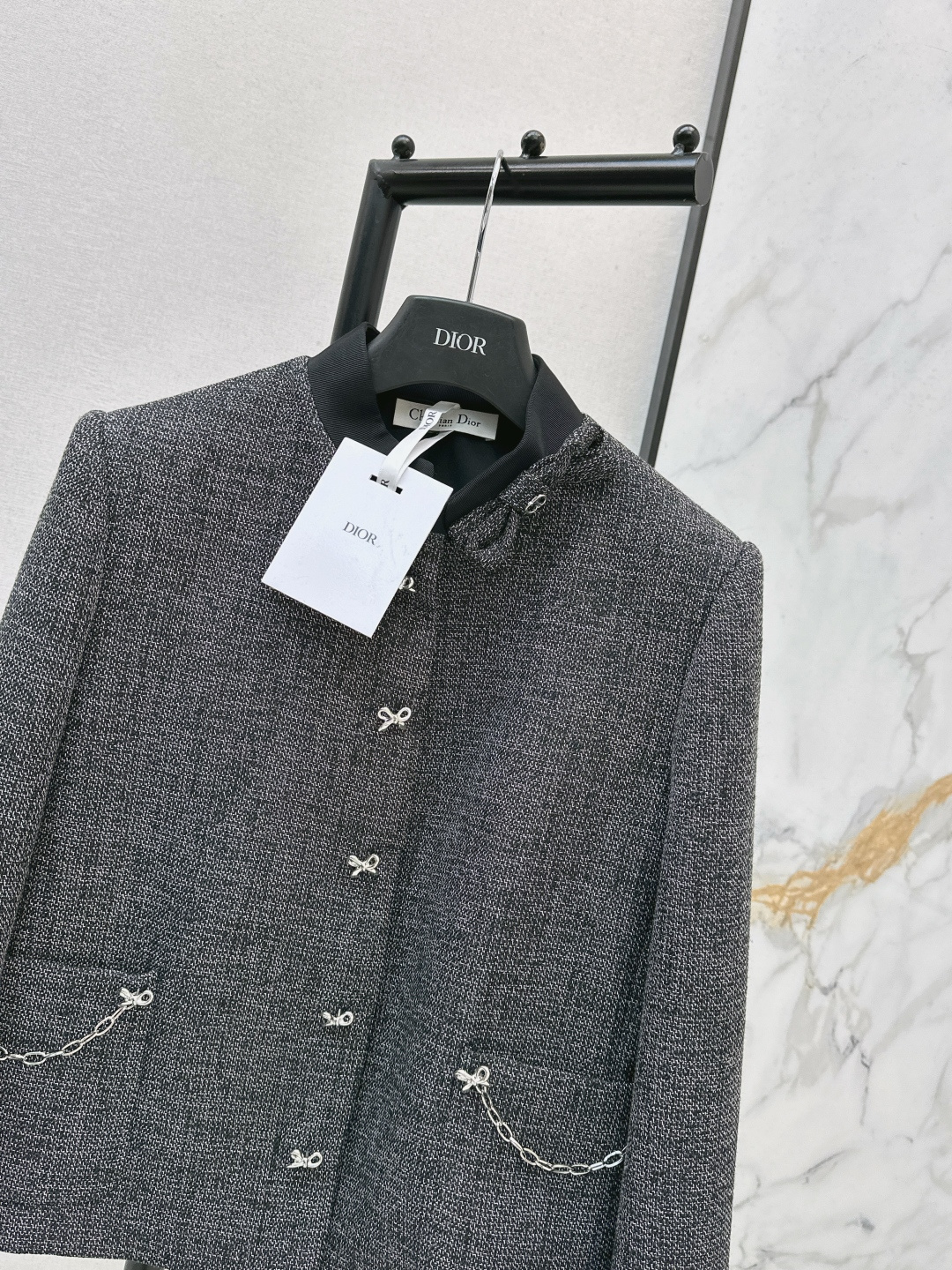 Details: Early spring high-end gray chain-decorated collar jacket, elegant and versatile, one color available, high-end customization, fine workmanship