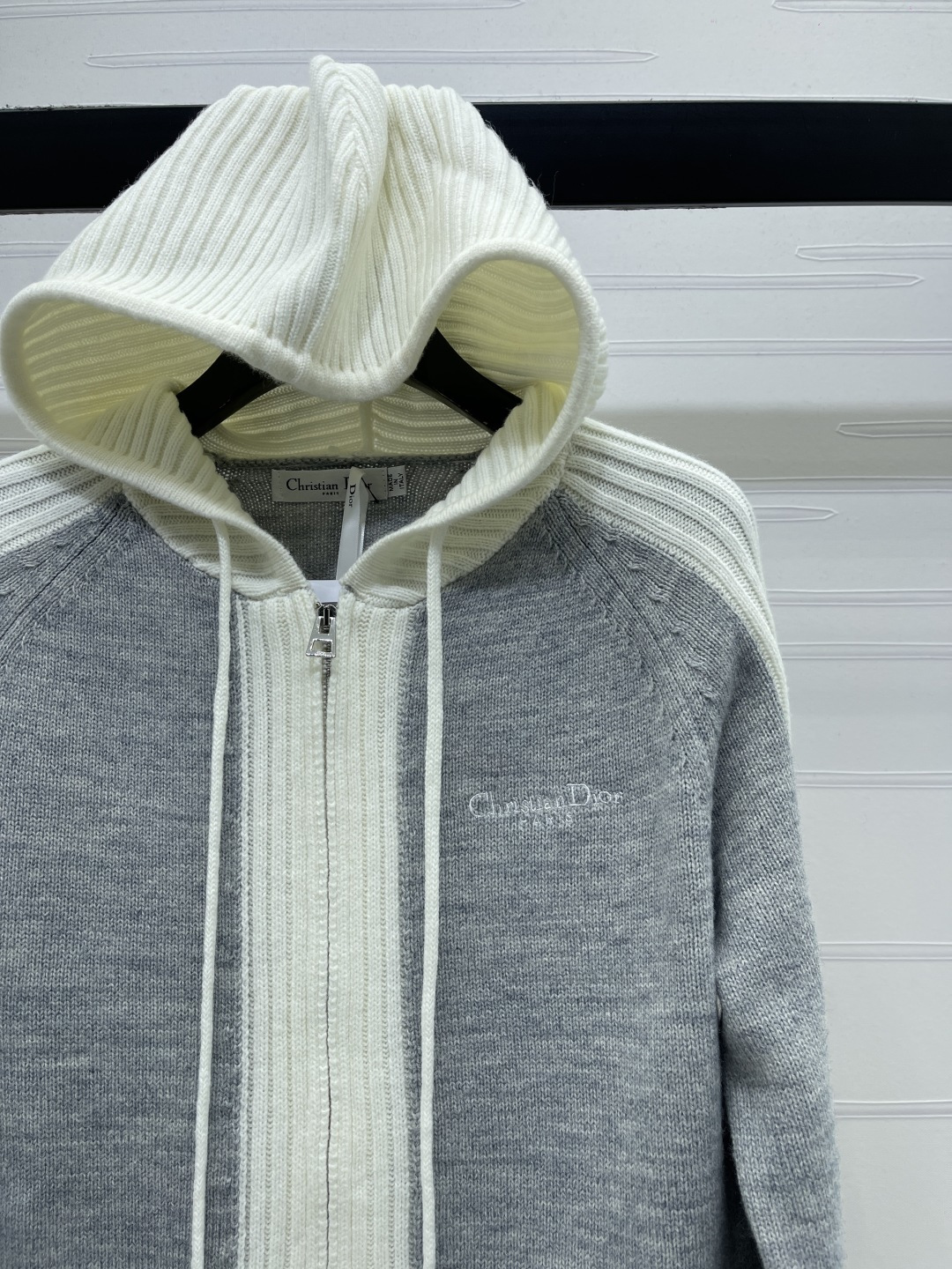 here:home > WOMENS > Christian Dior > Outerwear Dior (W) > Dior Hooded Zip-up Sweater with Contrast Trim