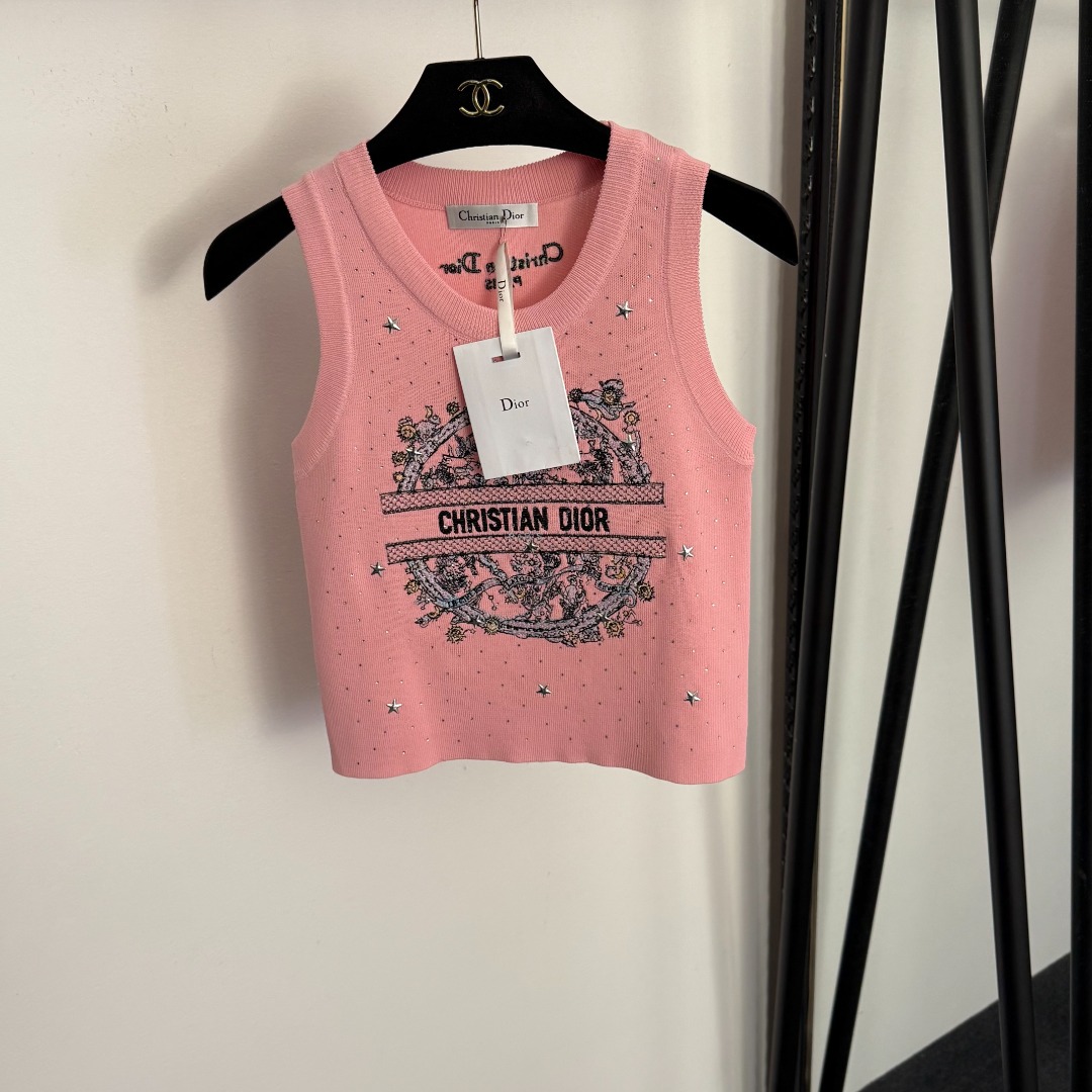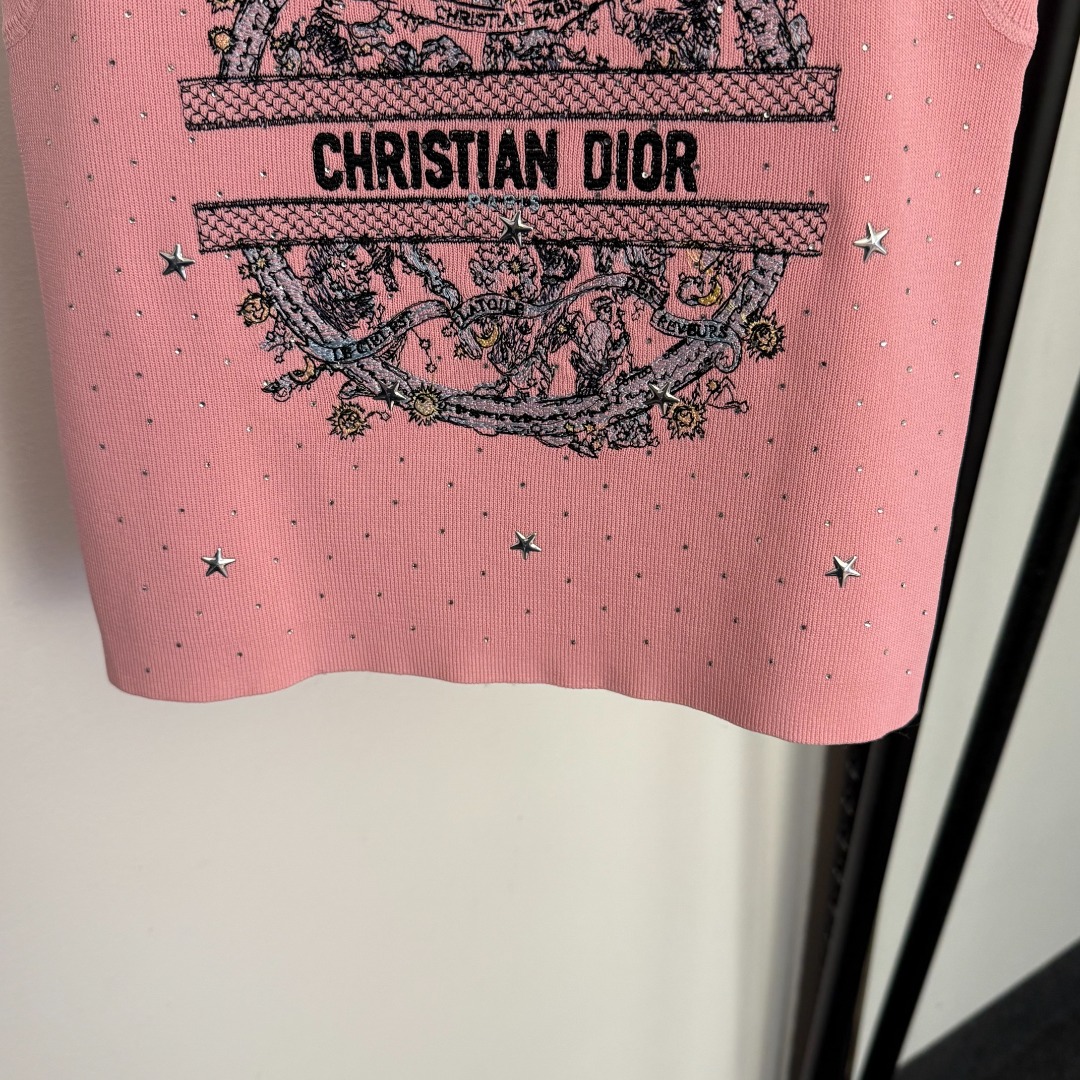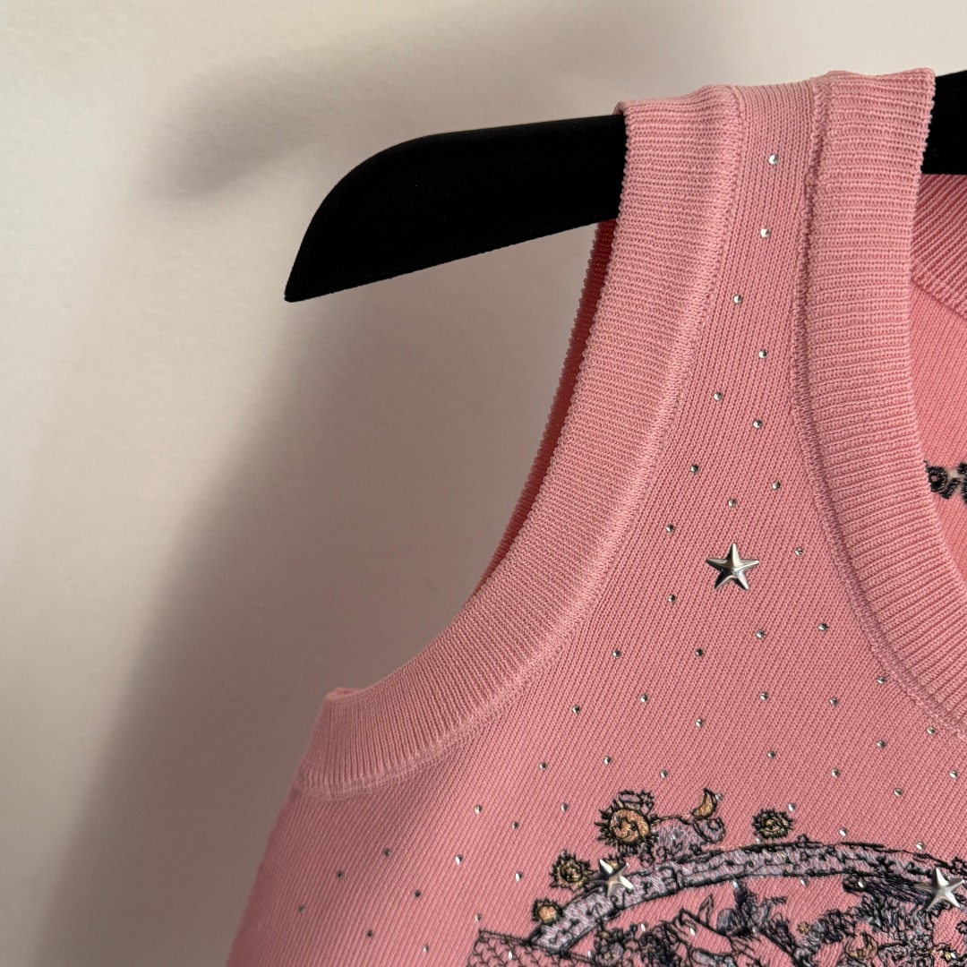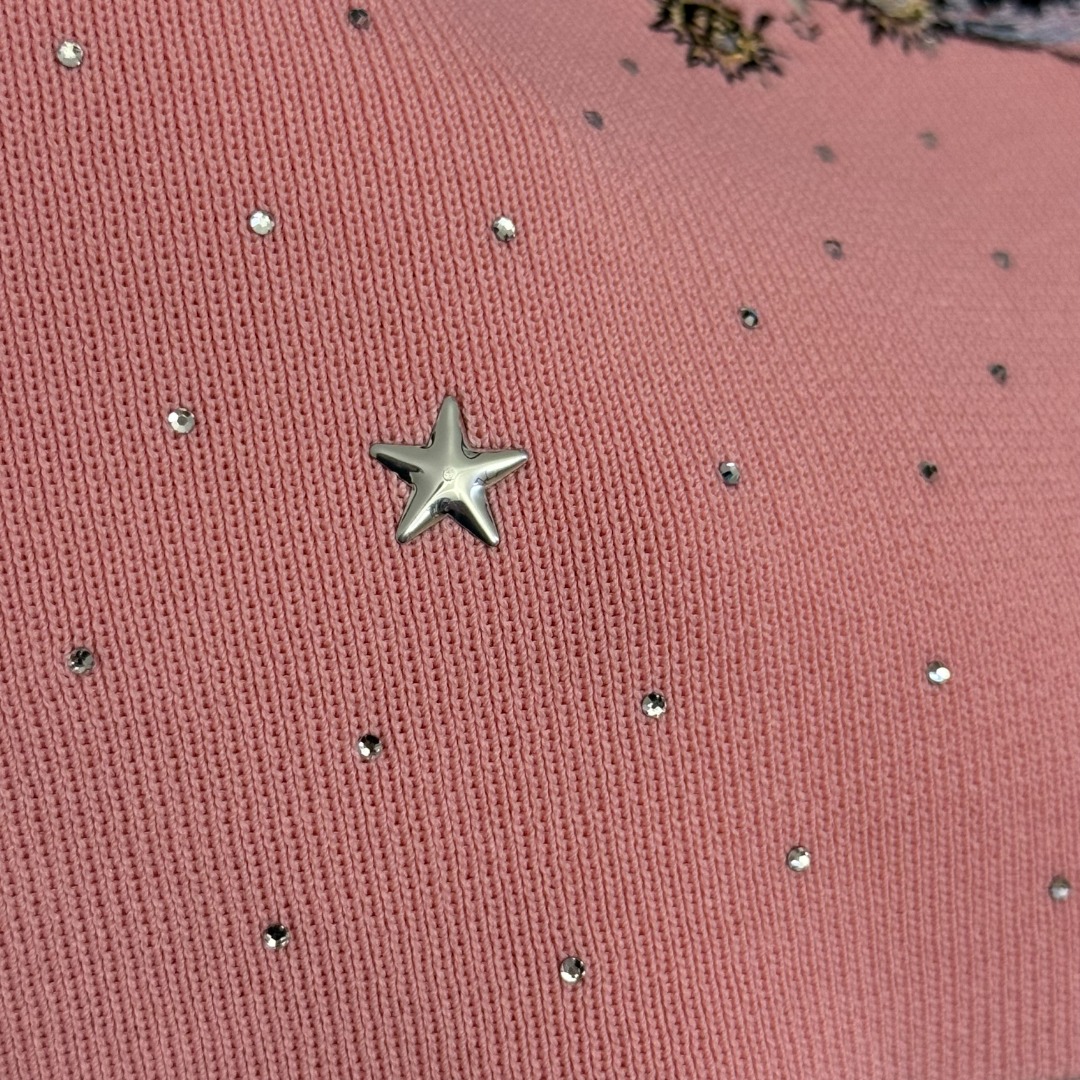 Details: New Pink Star-studded Embroidered Letter Knit Halter Top. High-end Custom, Fine Craftsmanship