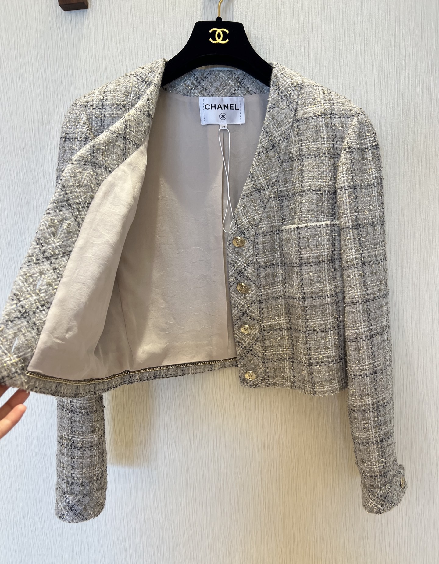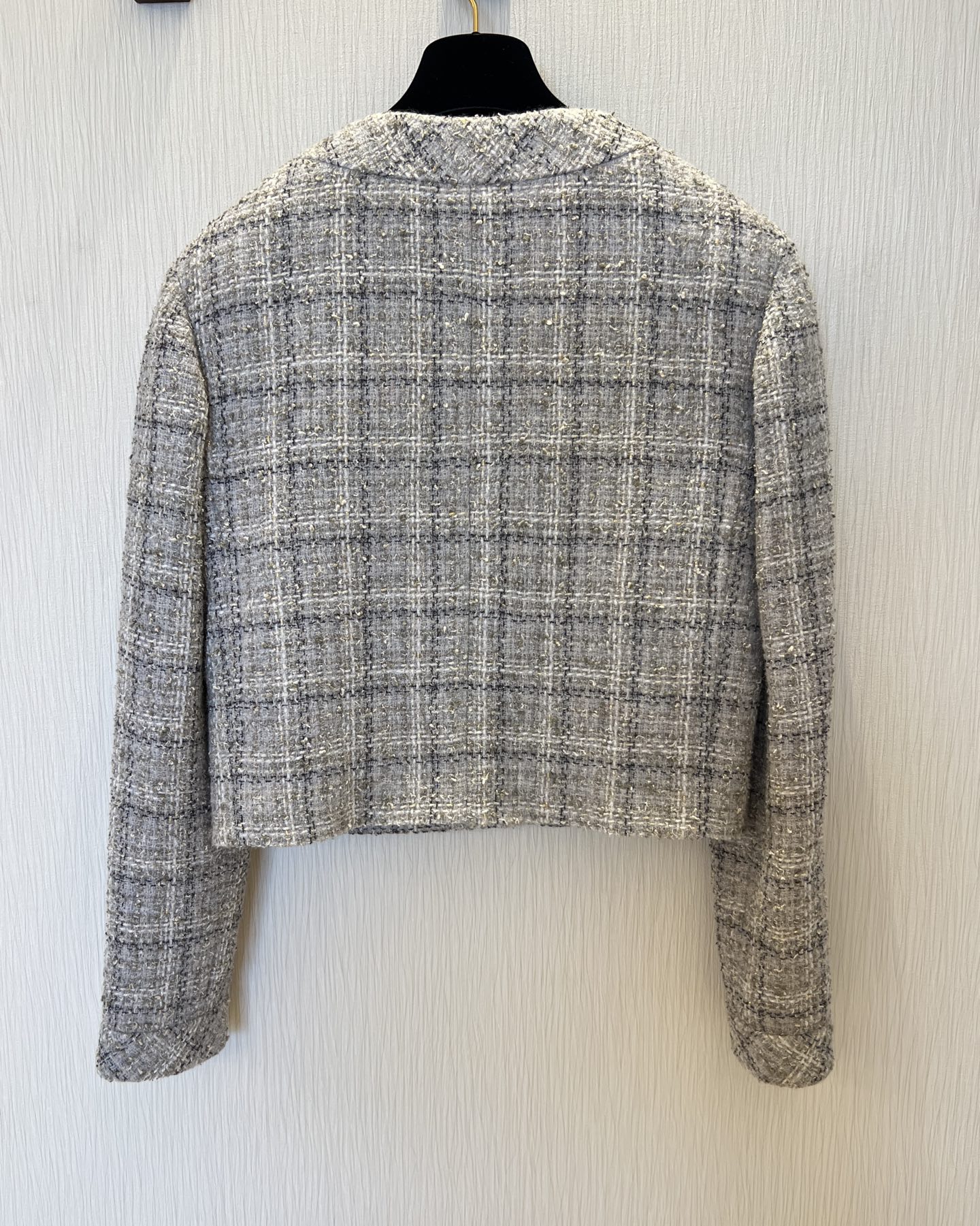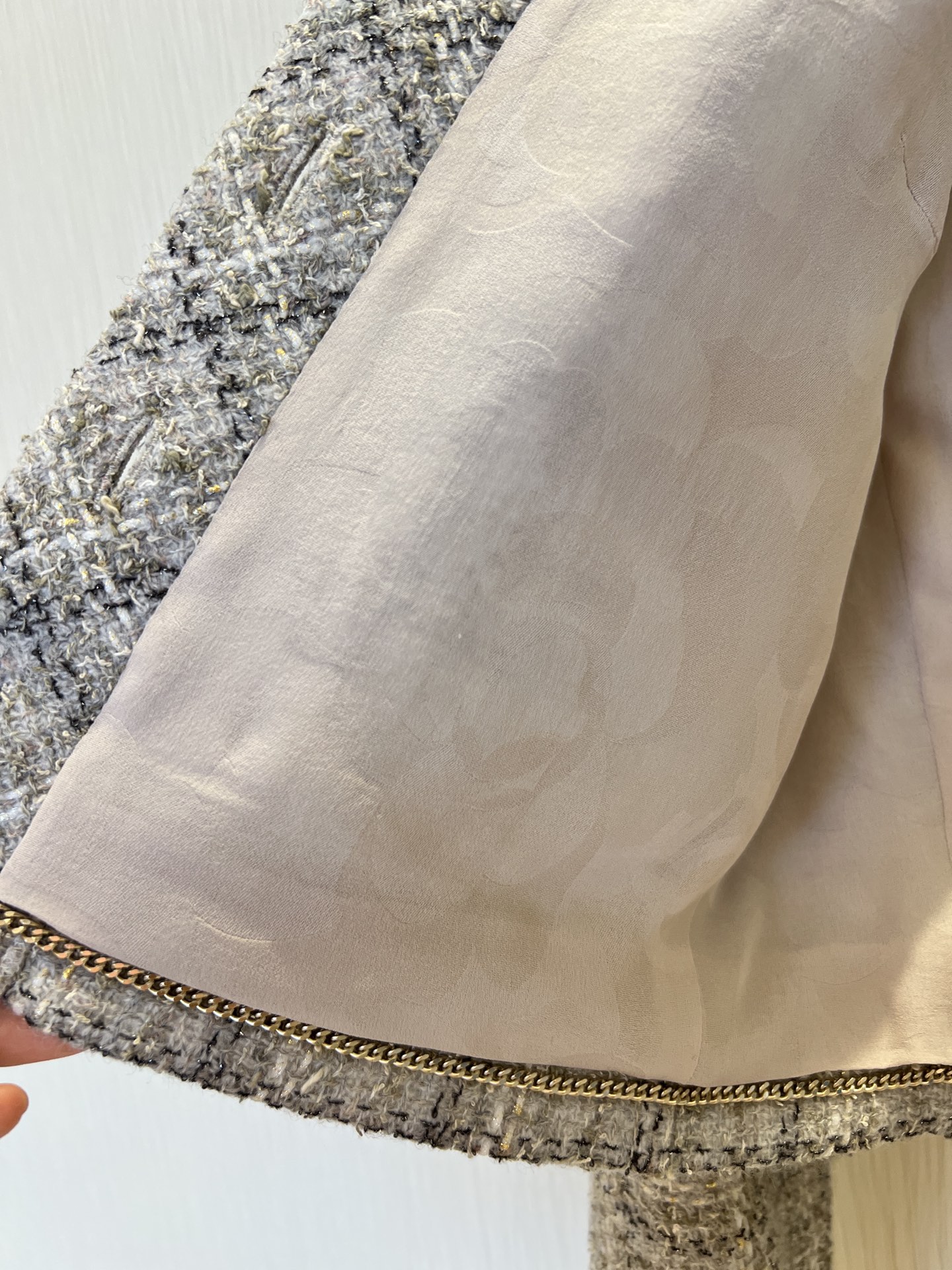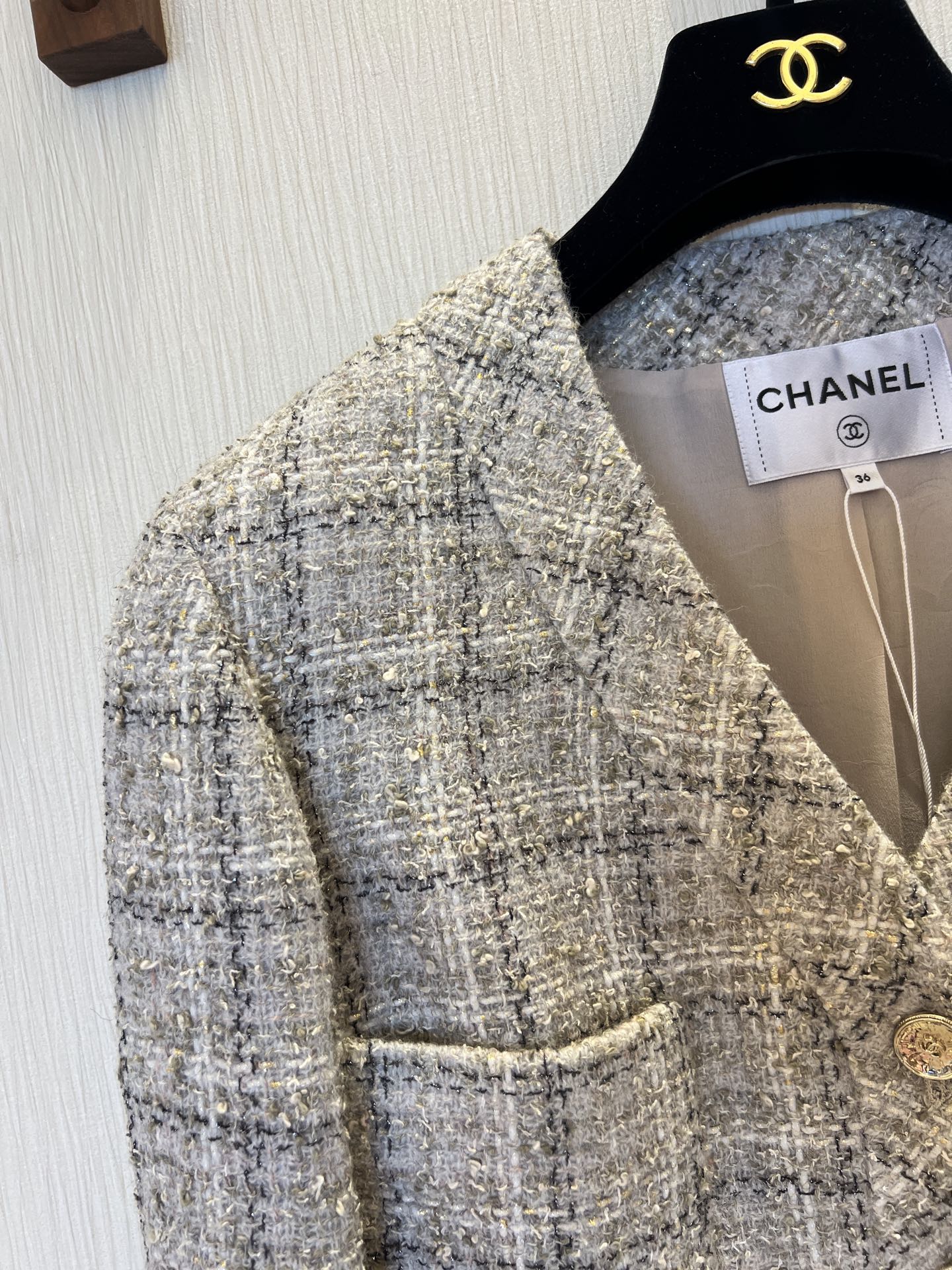 Details: V-neck tweed coat crafted from classic soft wool fabric in low-saturation colors, exuding a gentle and fashionable vibe suitable for both work and daily wear.