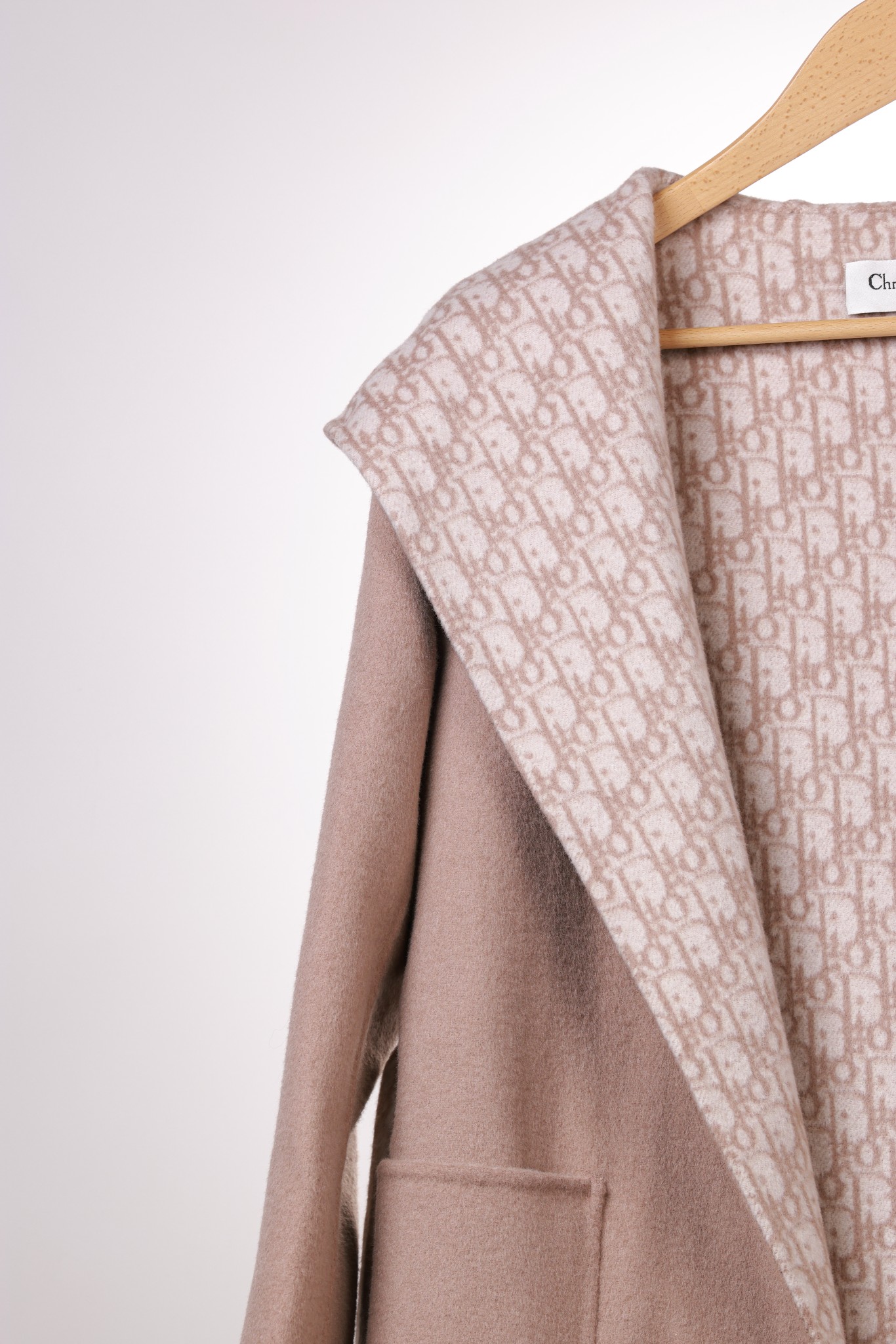 Details: Pink, blue, or brown hooded wool coat, mid - length, high - quality material, exquisite tailoring, classic design