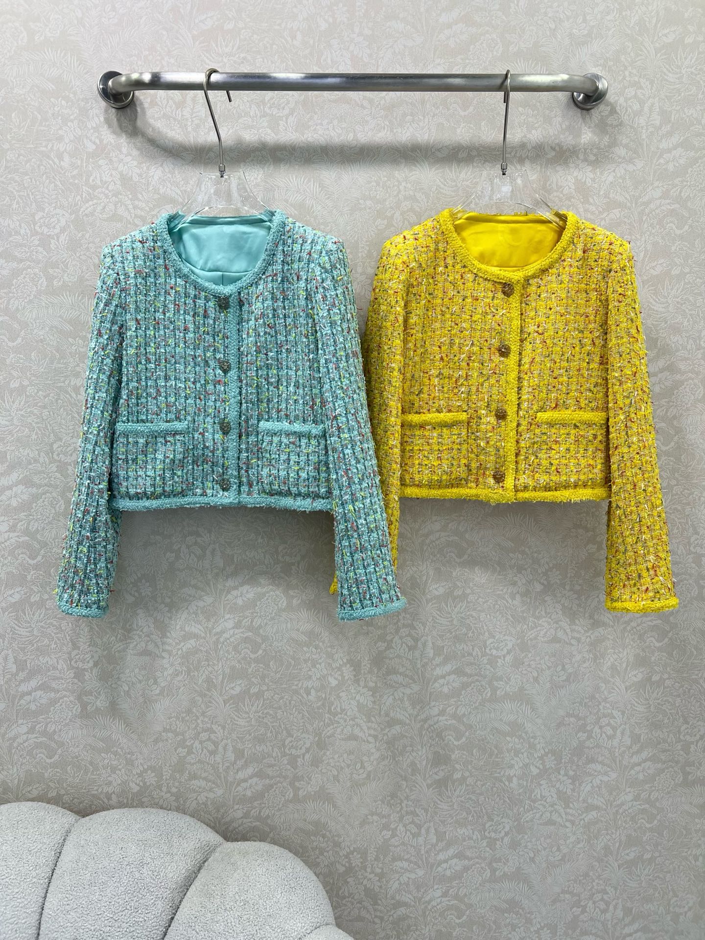 Details: New 25-style woolen coat with camellia lining, candy color, single-row round buttons. Two colors, three sizes. High-end customization, exquisite workmanship