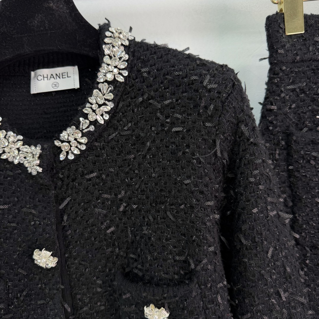 Chanel Stylish Tweed Knit Suit with Diamond Details