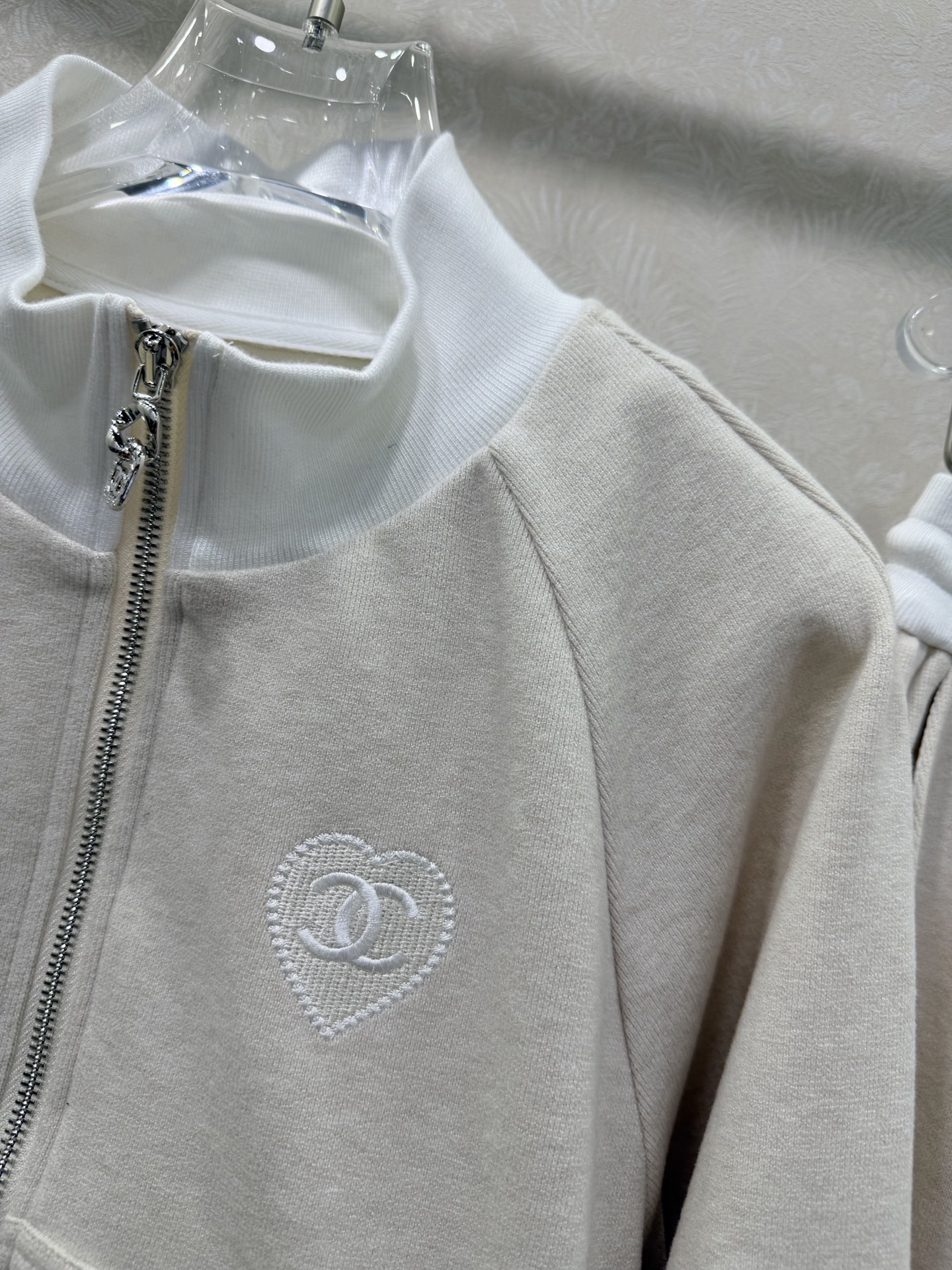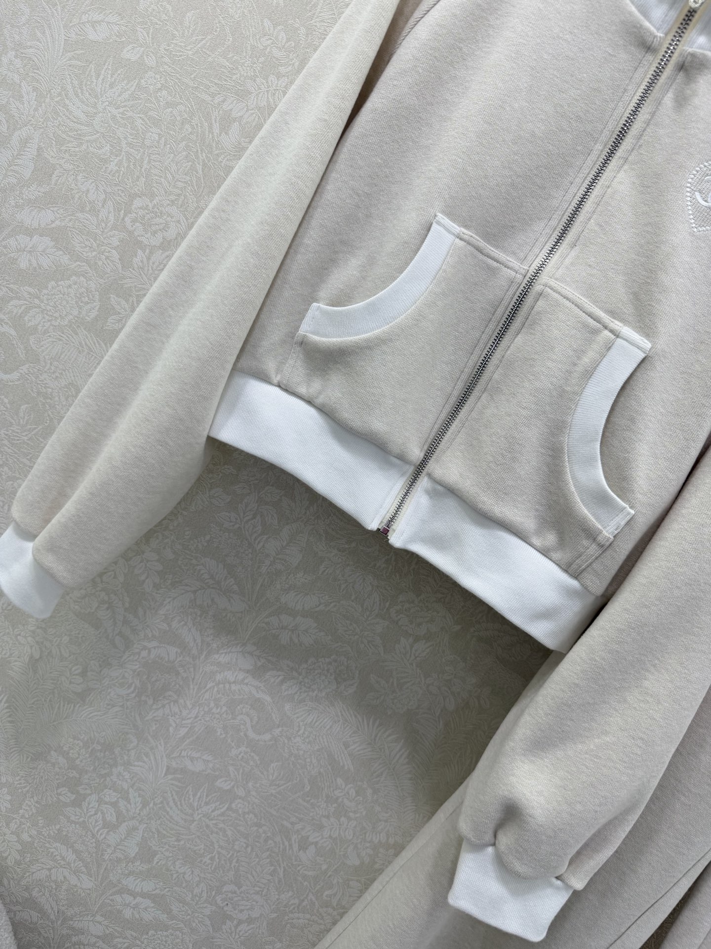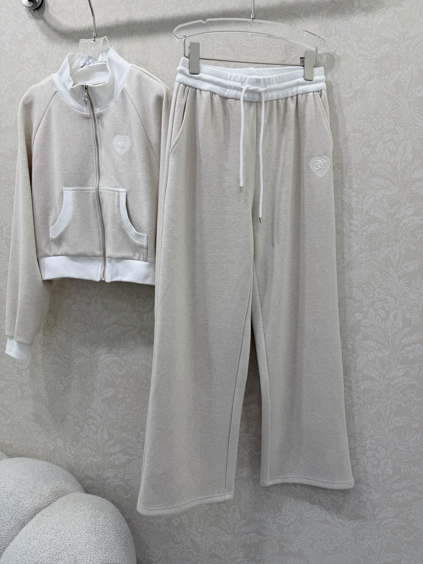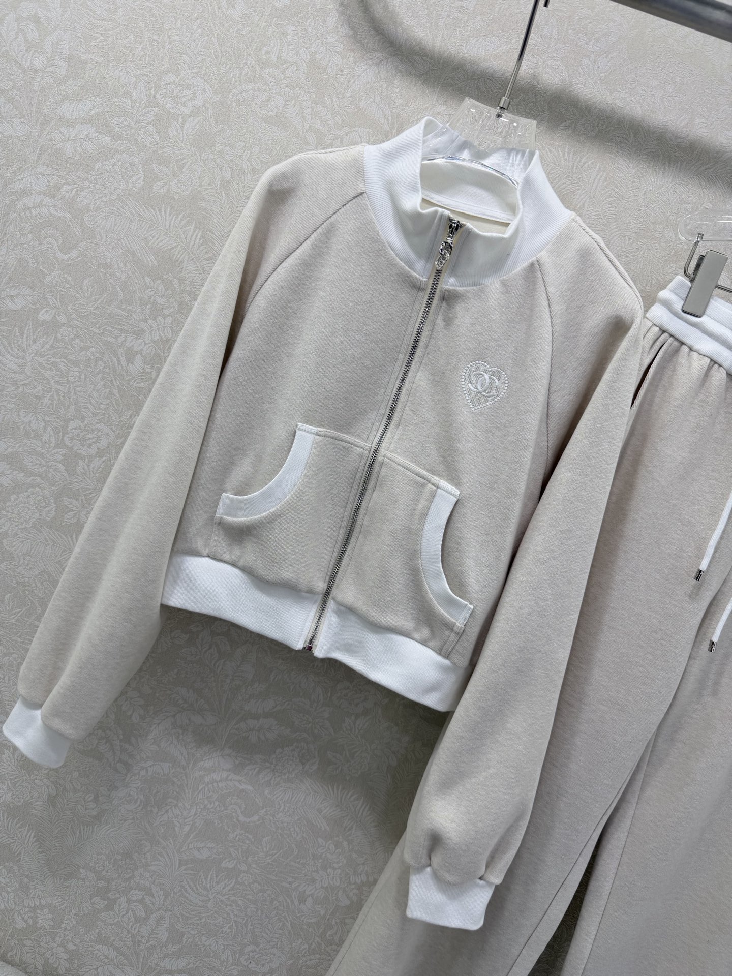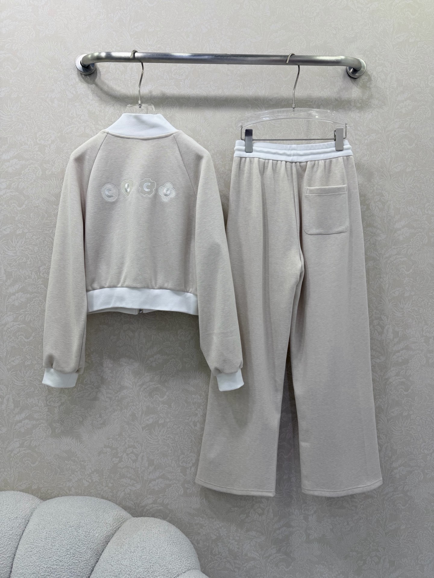 Details: Early spring collar suit, a duplicate of the previous design, featuring a jacket and trousers with high-end design elements for a fashionable and comfortable ensemble.