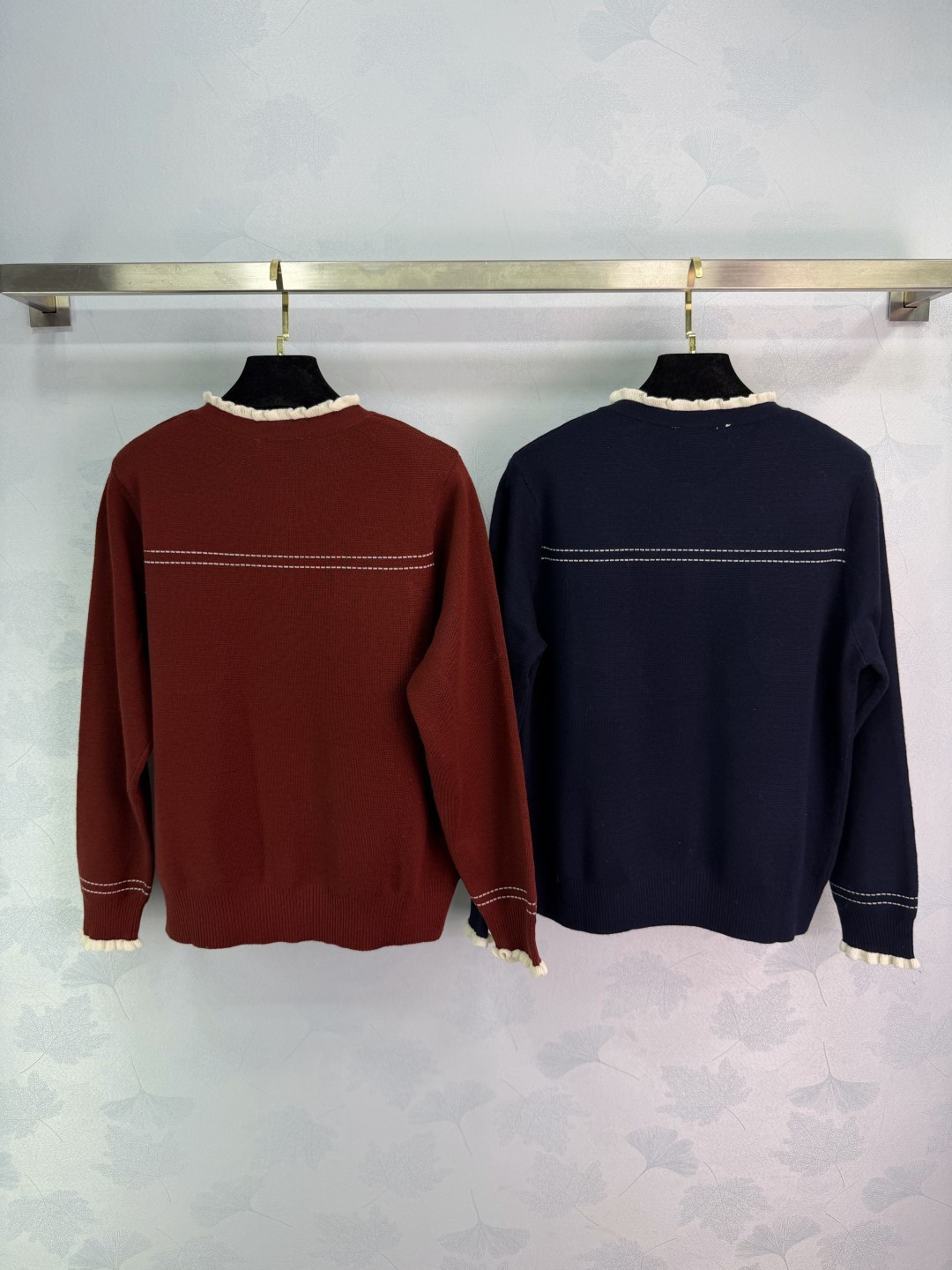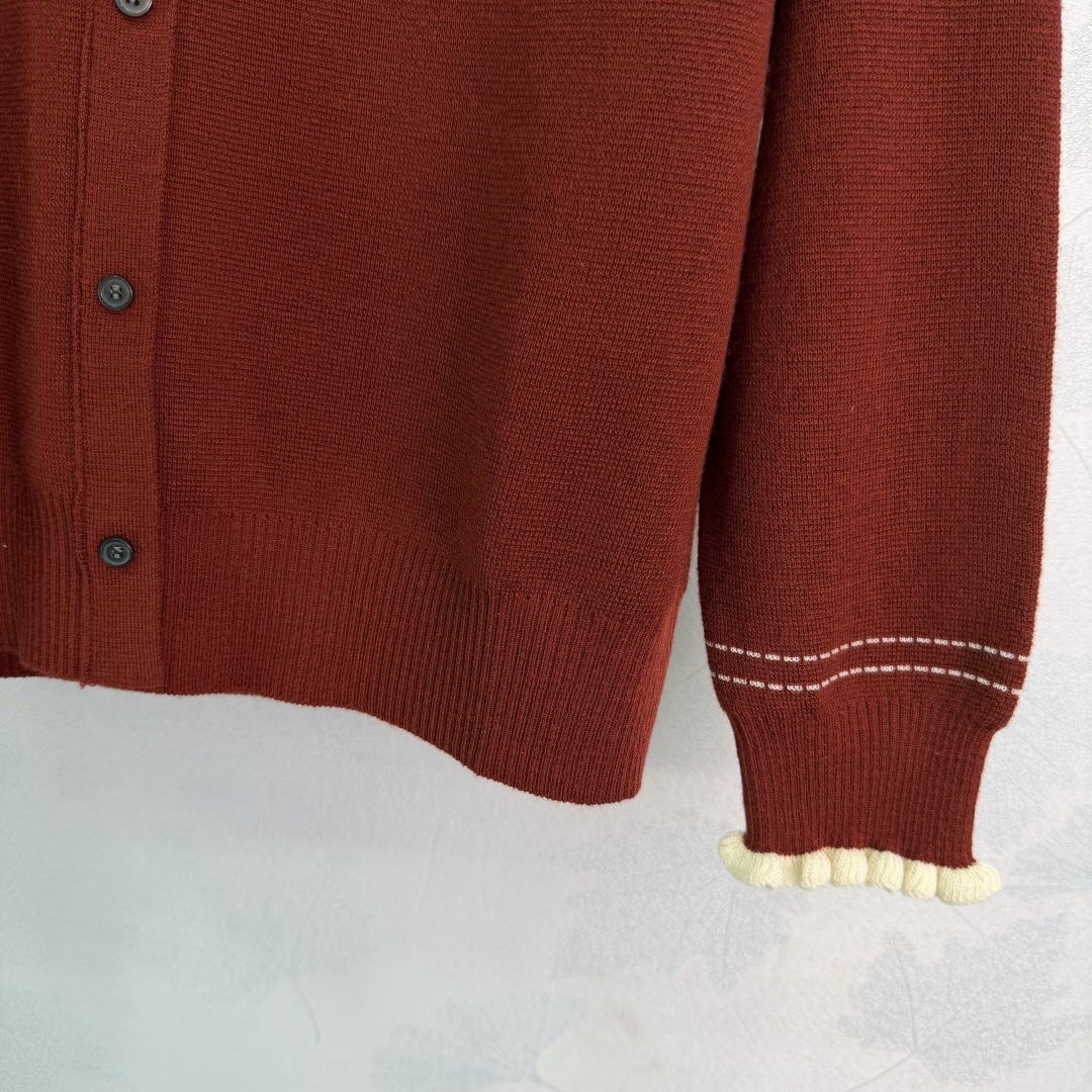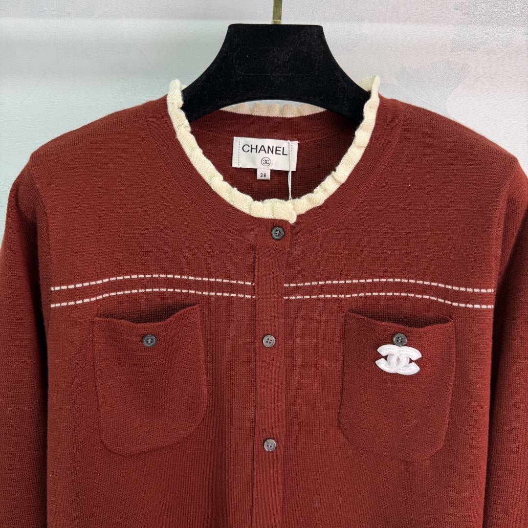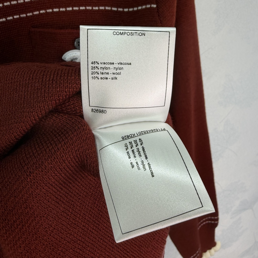 Details: Early Spring Color - blocked Round - neck Knitted Cardigan, High - quality Wool, with Double C Logo Embroidery, Elegant